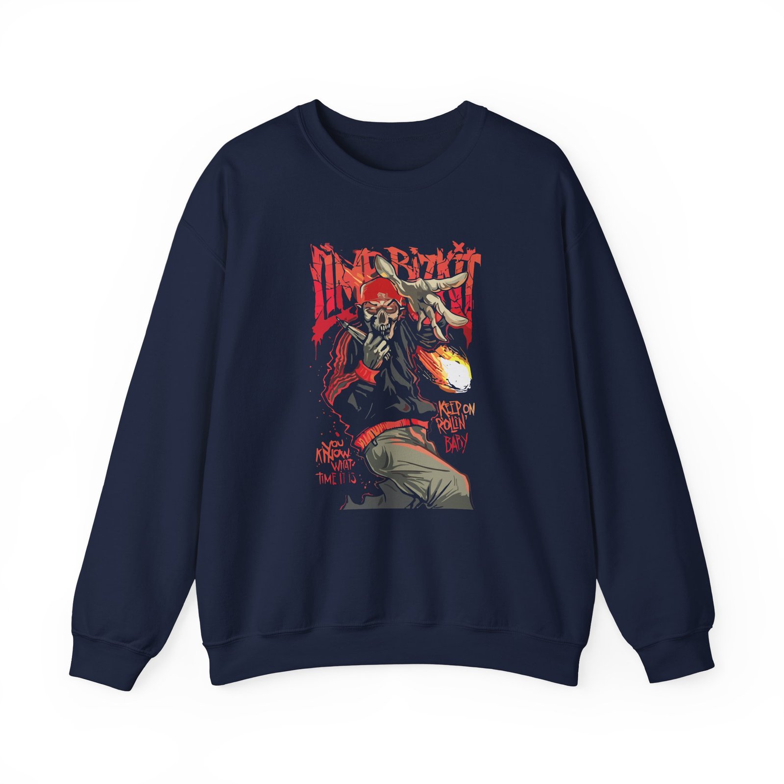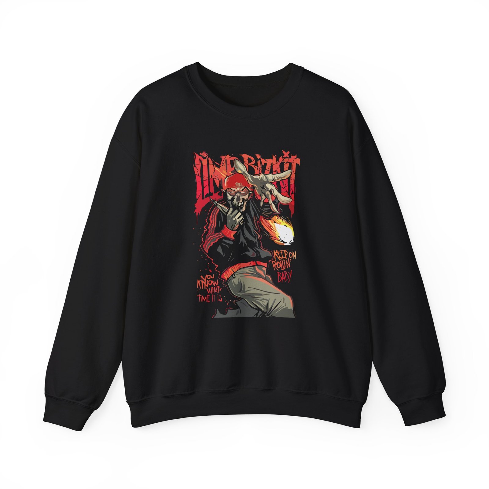 Ideal for any situation, a Limp Bizkit Keep on Rollin unisex heavy blend crewneck sweatshirt is pure comfort. These garments are made from polyester and cotton. This combination helps designs come out looking fresh and beautiful. The collar is ribbed knit, so it retains its shape even after washing. There are no itchy side seams on these sweaters.