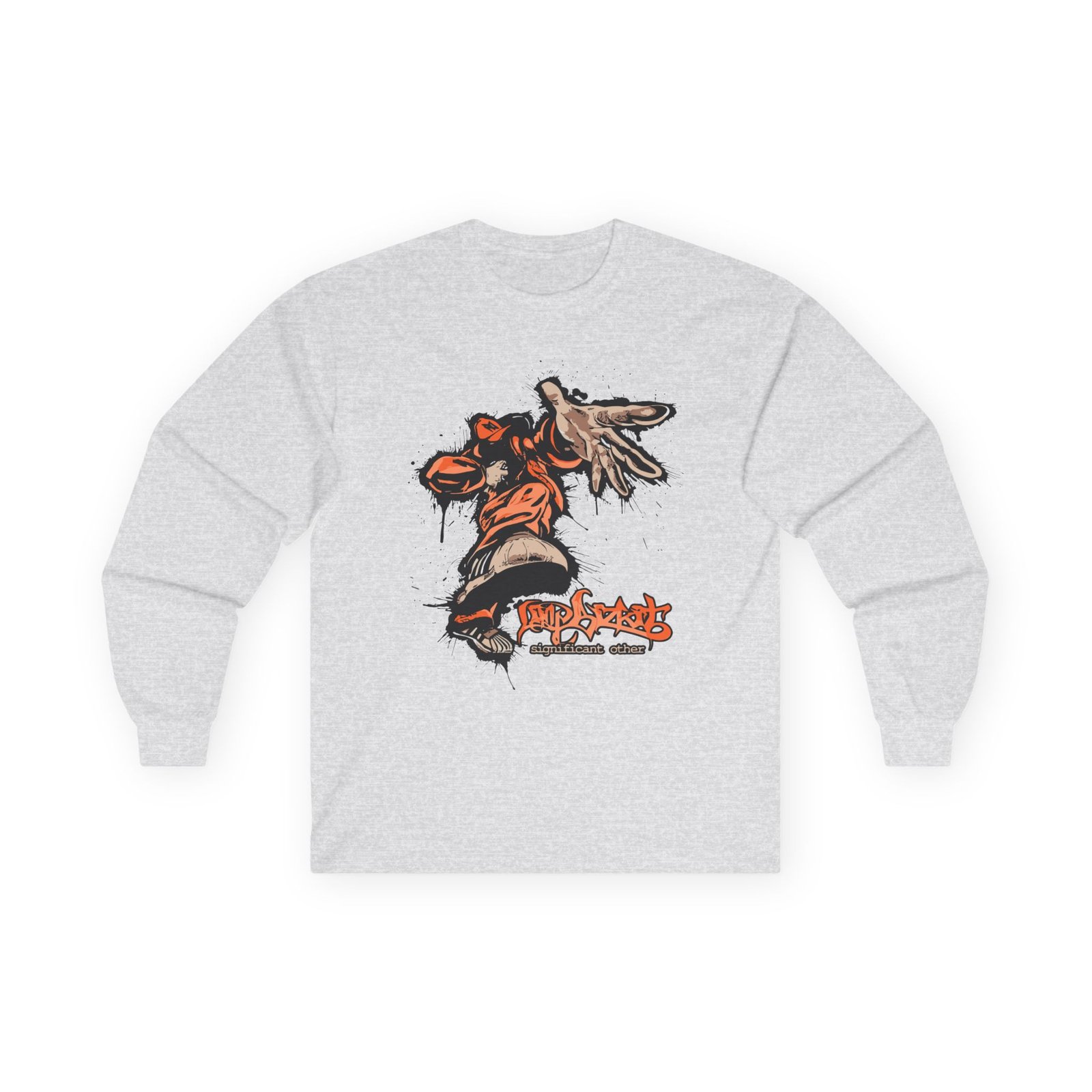 A bit more formal than a standard-issue t-shirt, the Limp Bizkit Significant Other ultra cotton long sleeve tee is a clear comfort winner. The sleeves also act as a nice frame. There are no side seams. The shoulders are taped for improved durability. This makes for a good fitting around the shoulders and neck. The cotton used for these shirts is environmentally friendly.