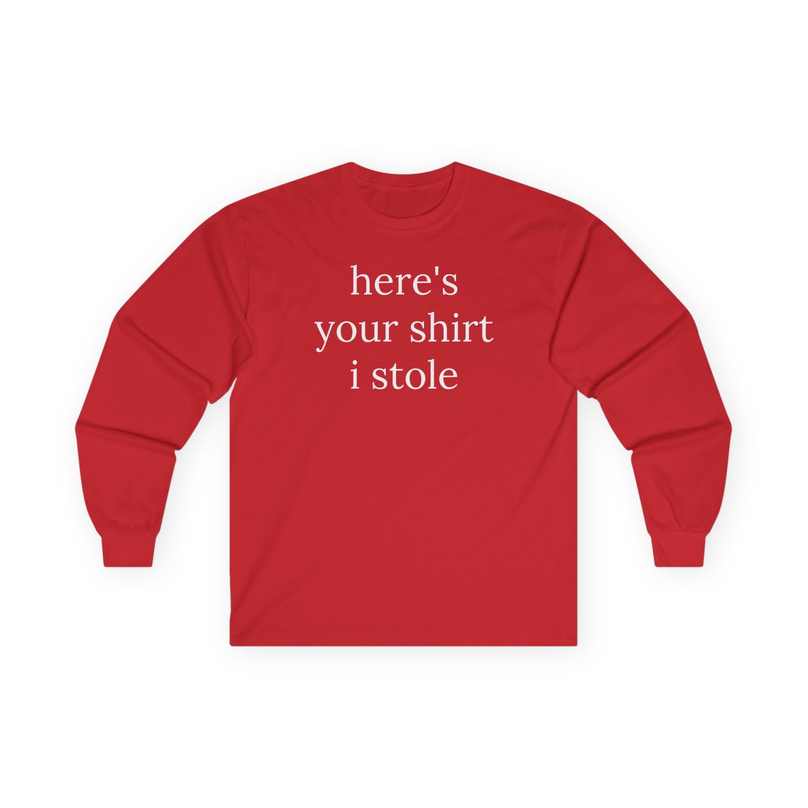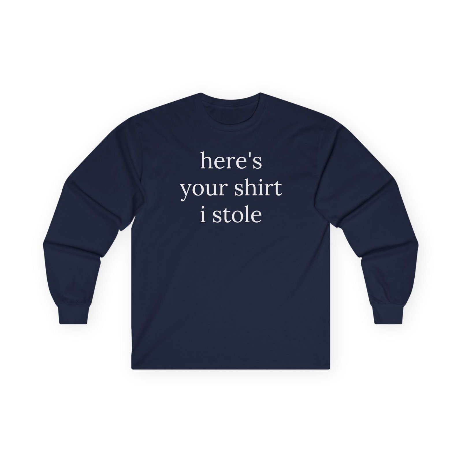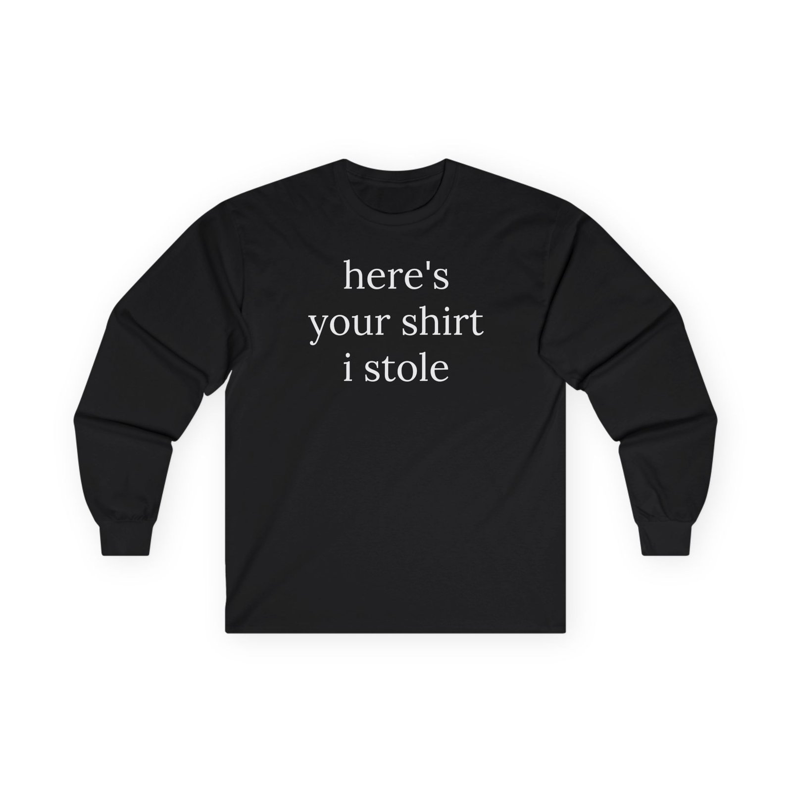 A bit more formal than a standard-issue t-shirt, the Lizzy Mcalpine Here's Your Shirt I Stole ultra cotton long sleeve tee is a clear comfort winner. The sleeves also act as a nice frame. There are no side seams. The shoulders are taped for improved durability. This makes for a good fitting around the shoulders and neck. The cotton used for these shirts is environmentally friendly.