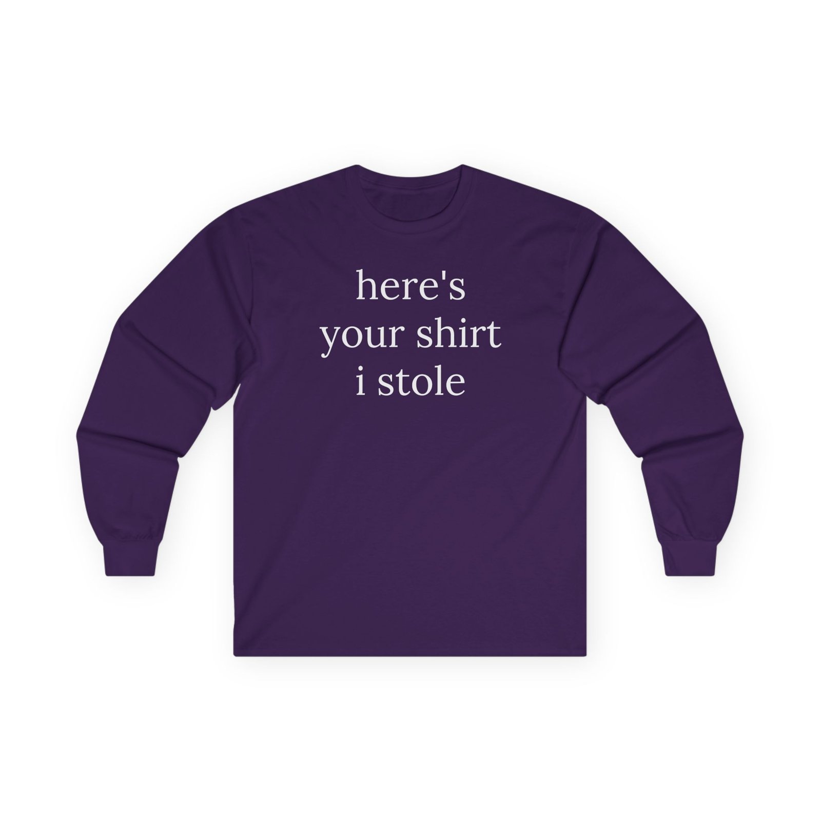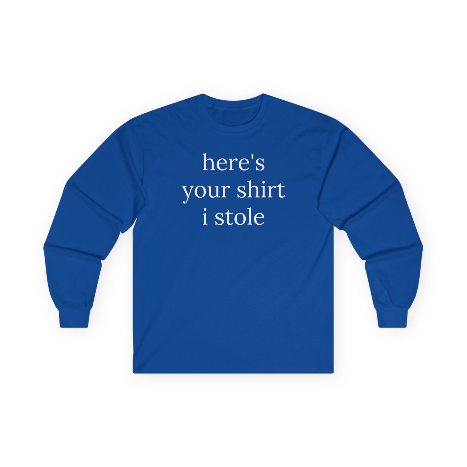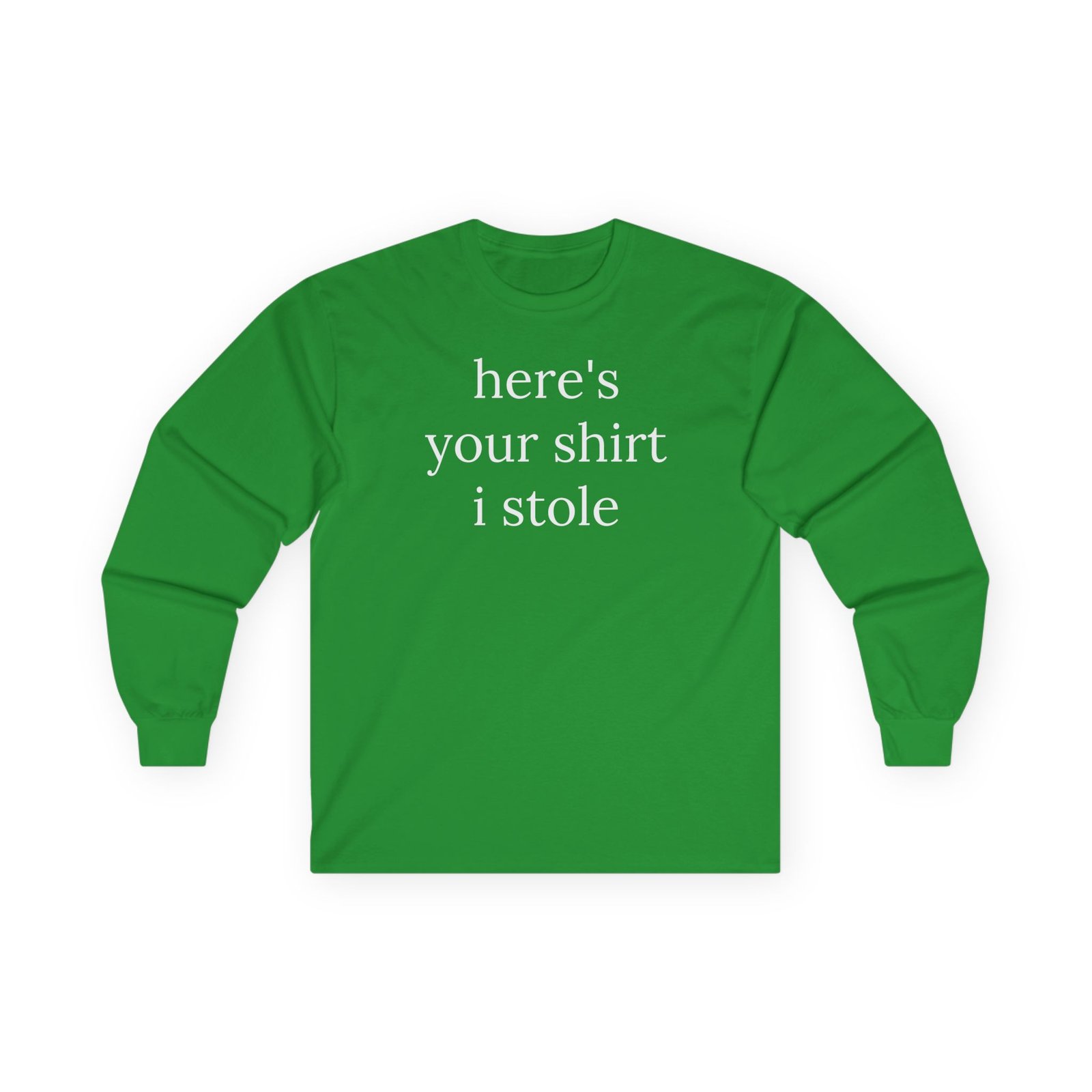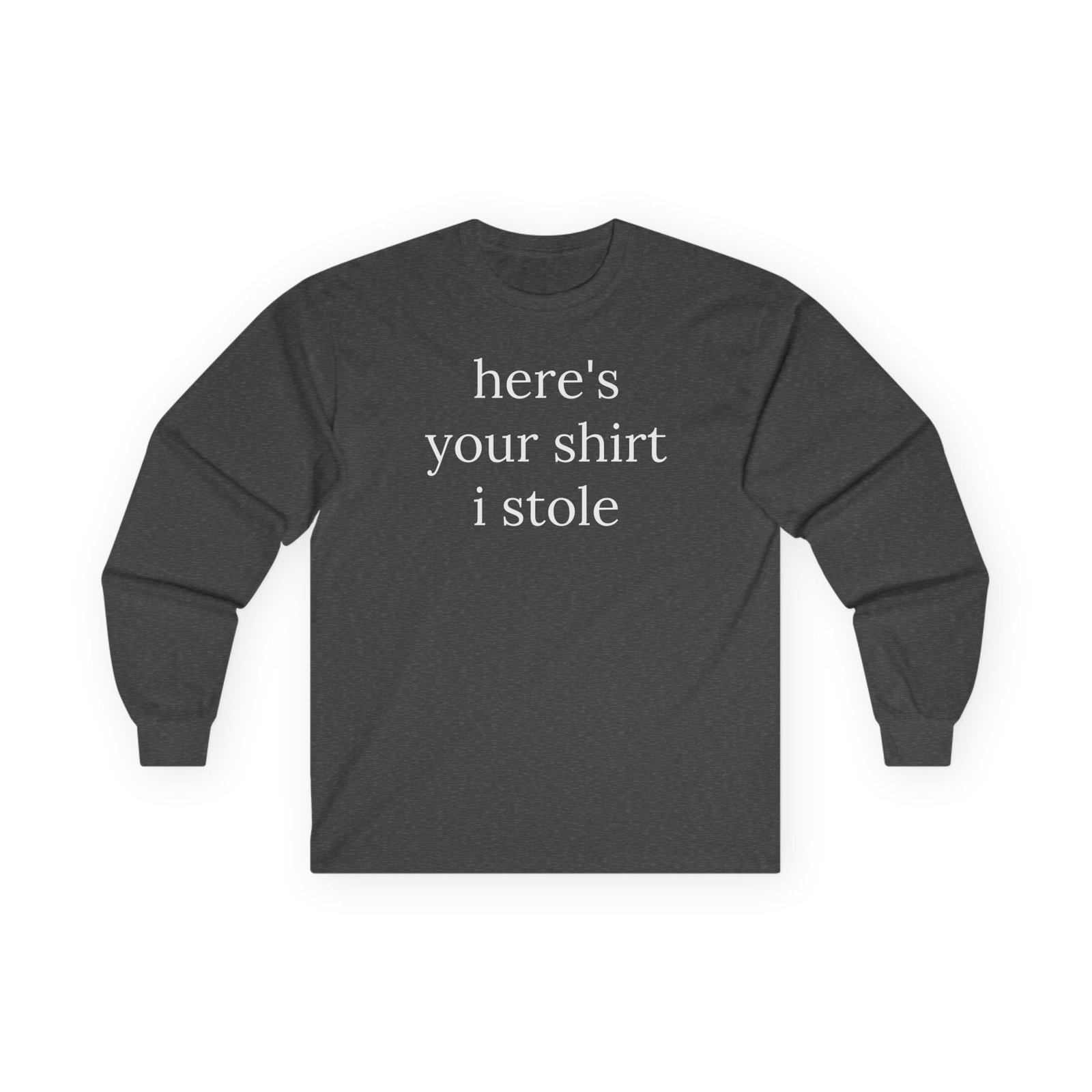 A bit more formal than a standard-issue t-shirt, the Lizzy Mcalpine Here's Your Shirt I Stole ultra cotton long sleeve tee is a clear comfort winner. The sleeves also act as a nice frame. There are no side seams. The shoulders are taped for improved durability. This makes for a good fitting around the shoulders and neck. The cotton used for these shirts is environmentally friendly.