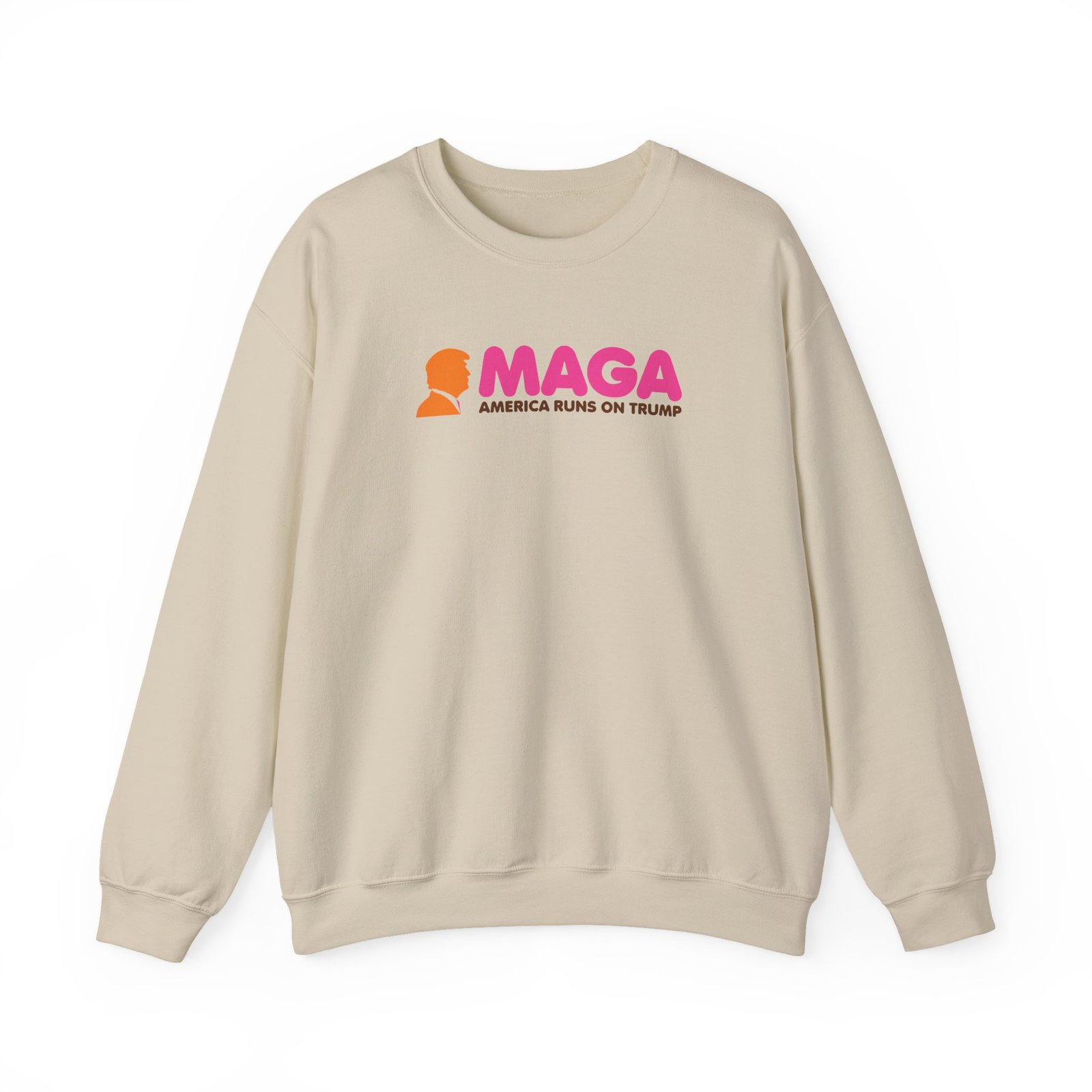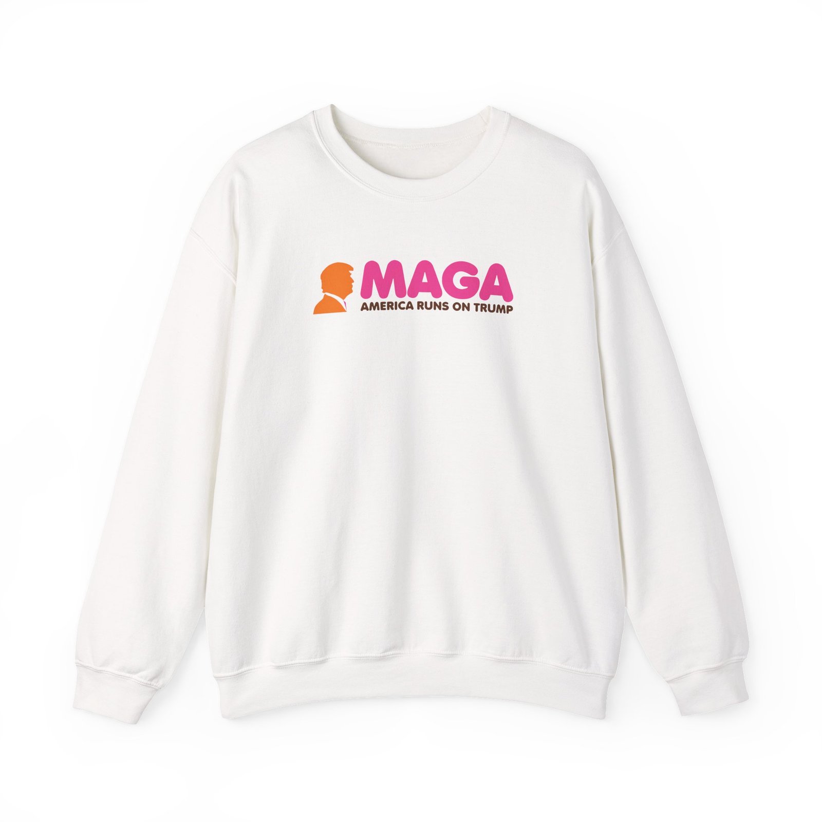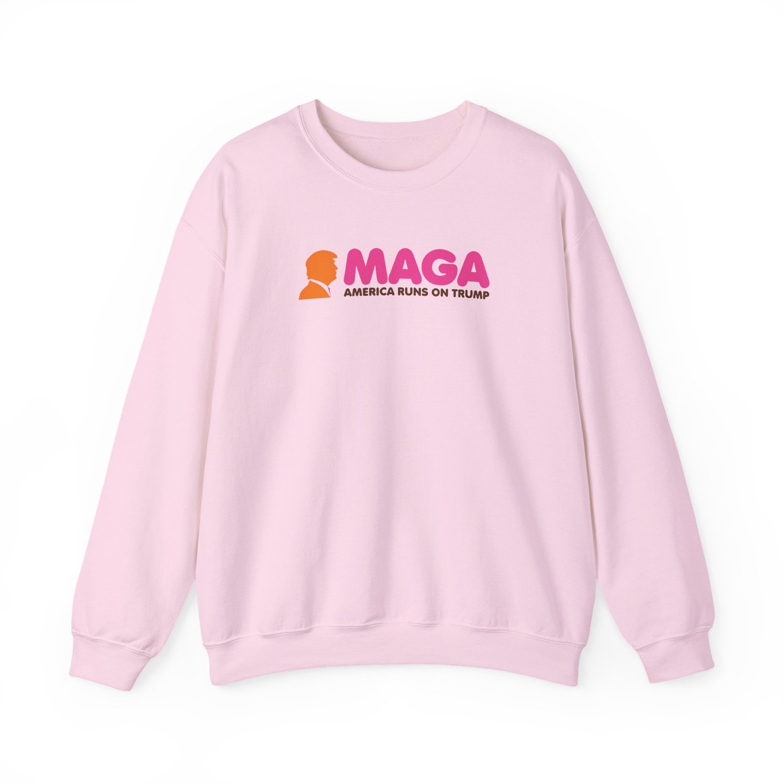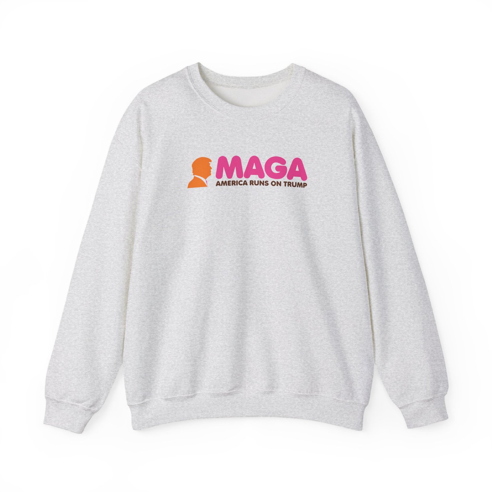 Ideal for any situation, a Louder With Crowder America Runs on Trump unisex heavy blend crewneck sweatshirt is pure comfort. These garments are made from polyester and cotton. This combination helps designs come out looking fresh and beautiful. The collar is ribbed knit, so it retains its shape even after washing. There are no itchy side seams on these sweaters.