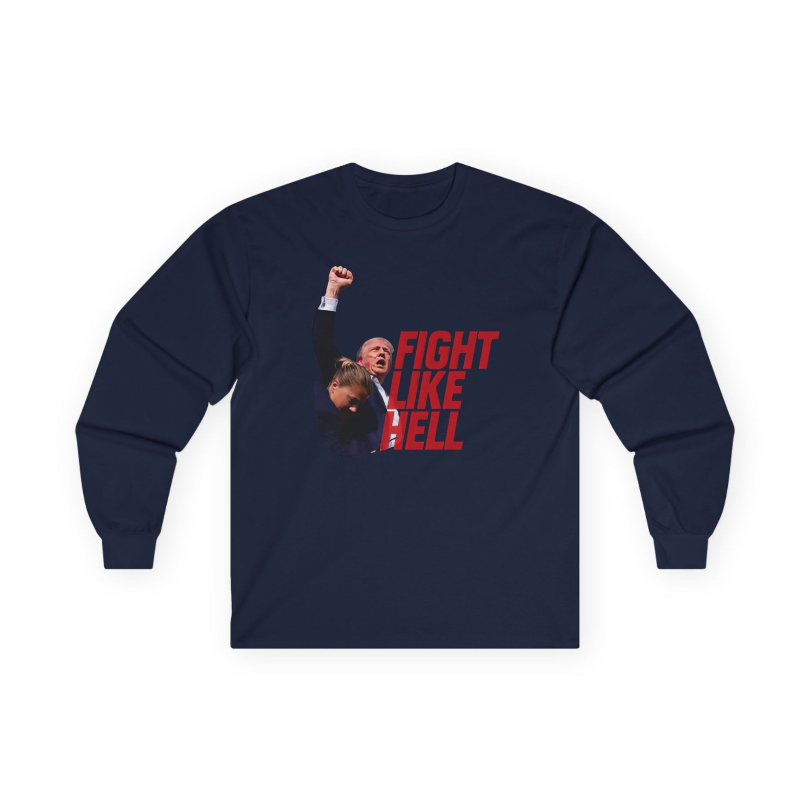 A bit more formal than a standard-issue t-shirt, the Louder With Crowder Trump Fight Like Hel ultra cotton long sleeve tee is a clear comfort winner. The sleeves also act as a nice frame. There are no side seams. The shoulders are taped for improved durability. This makes for a good fitting around the shoulders and neck. The cotton used for these shirts is environmentally friendly.