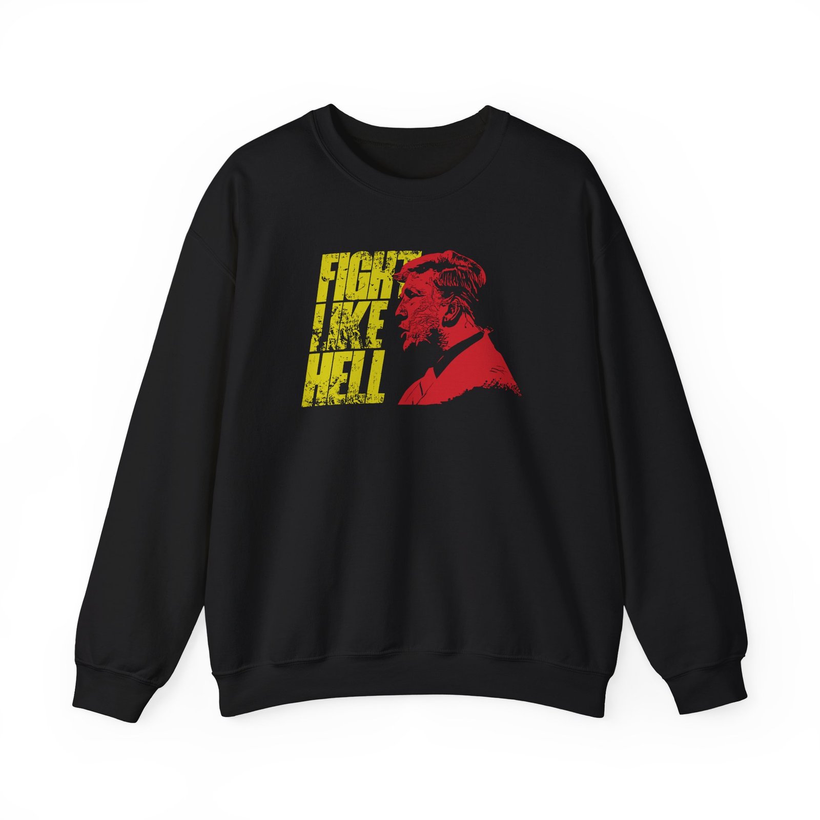 Ideal for any situation, a Louder With Crowder Trump Fight Like Hell unisex heavy blend crewneck sweatshirt is pure comfort. These garments are made from polyester and cotton. This combination helps designs come out looking fresh and beautiful. The collar is ribbed knit, so it retains its shape even after washing. There are no itchy side seams on these sweaters.
