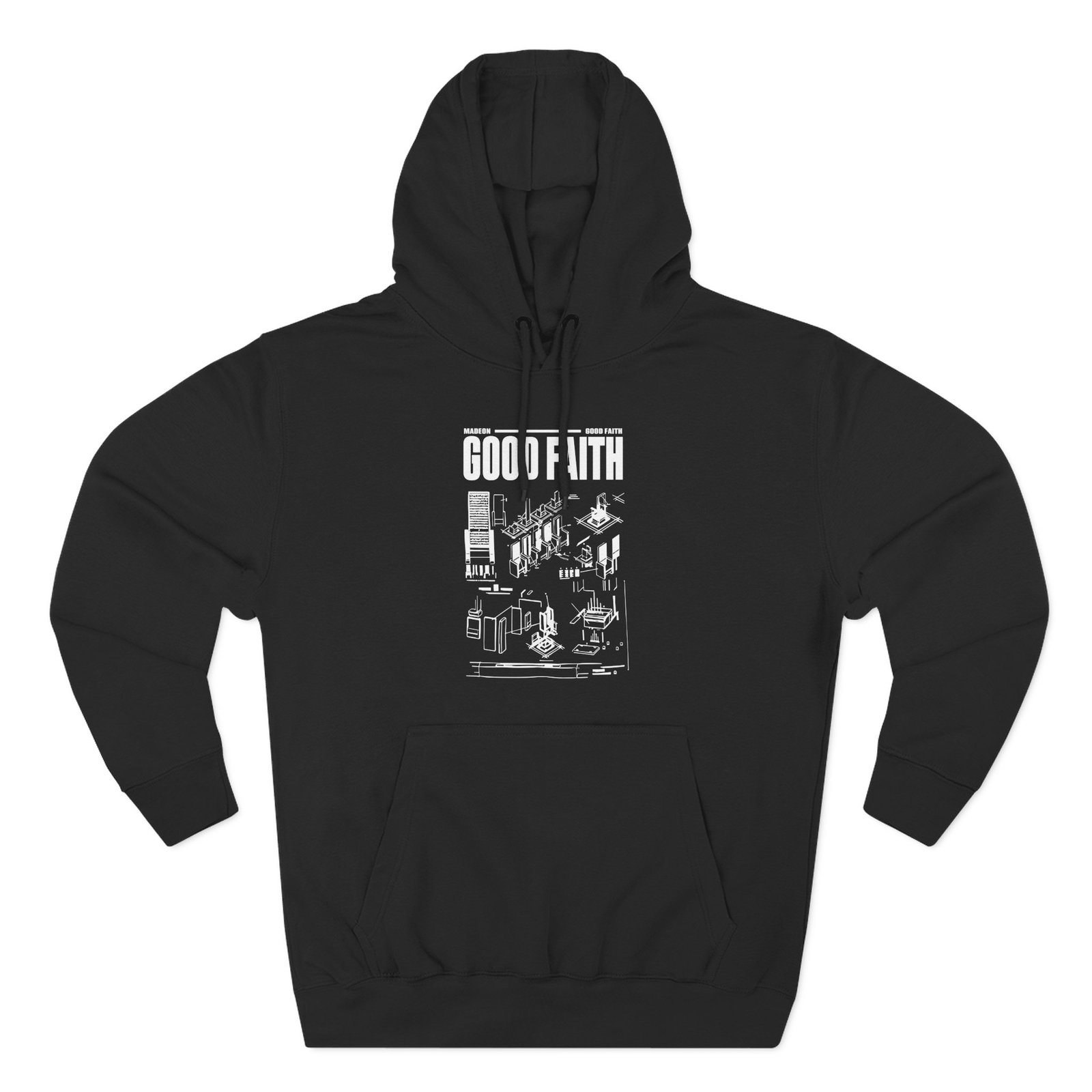 Beat the cold with this Madeon Reverse Schematics premium pullover hoodie that’s just the right layer of warm and cozy. Made with three-panel fleece lining, this pullover is double stitched for durability and roomy. Pick one in your favorite color to match your style.