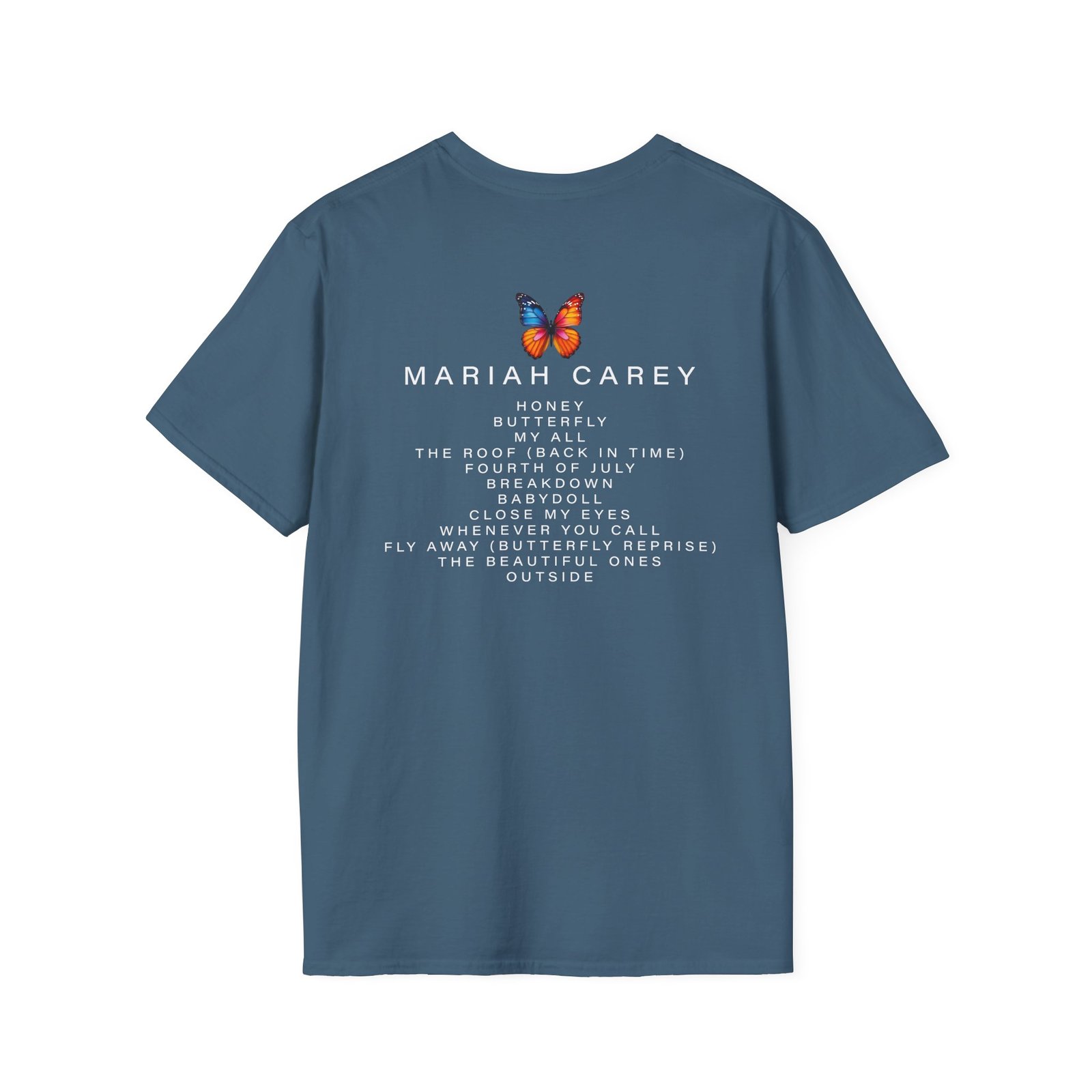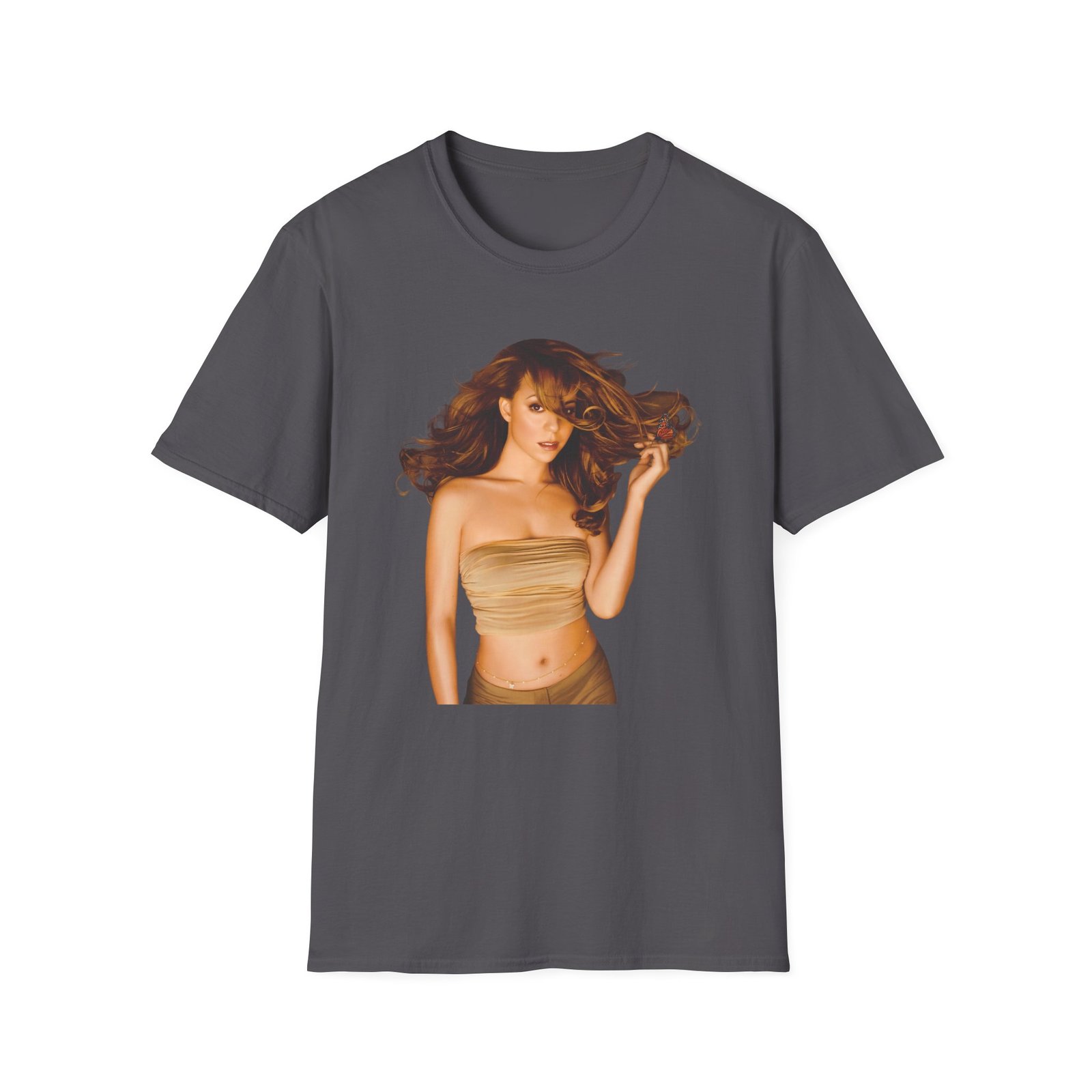 The Mariah Carey Butterfly unisex soft-style t-shirt puts a new spin on casual comfort. Made from very soft materials, this tee is 100% cotton for solid colors. Heather colors and sports grey include polyester. The shoulders have twill tape for improved durability. There are no side seams. The collar is made with ribbed knitting to prevent curling damage.