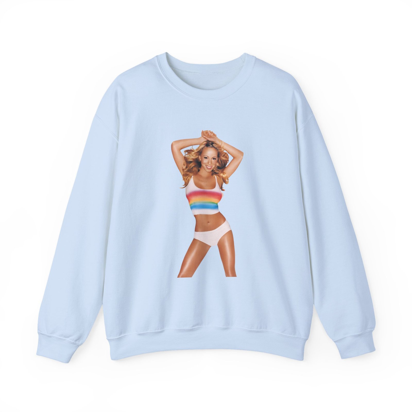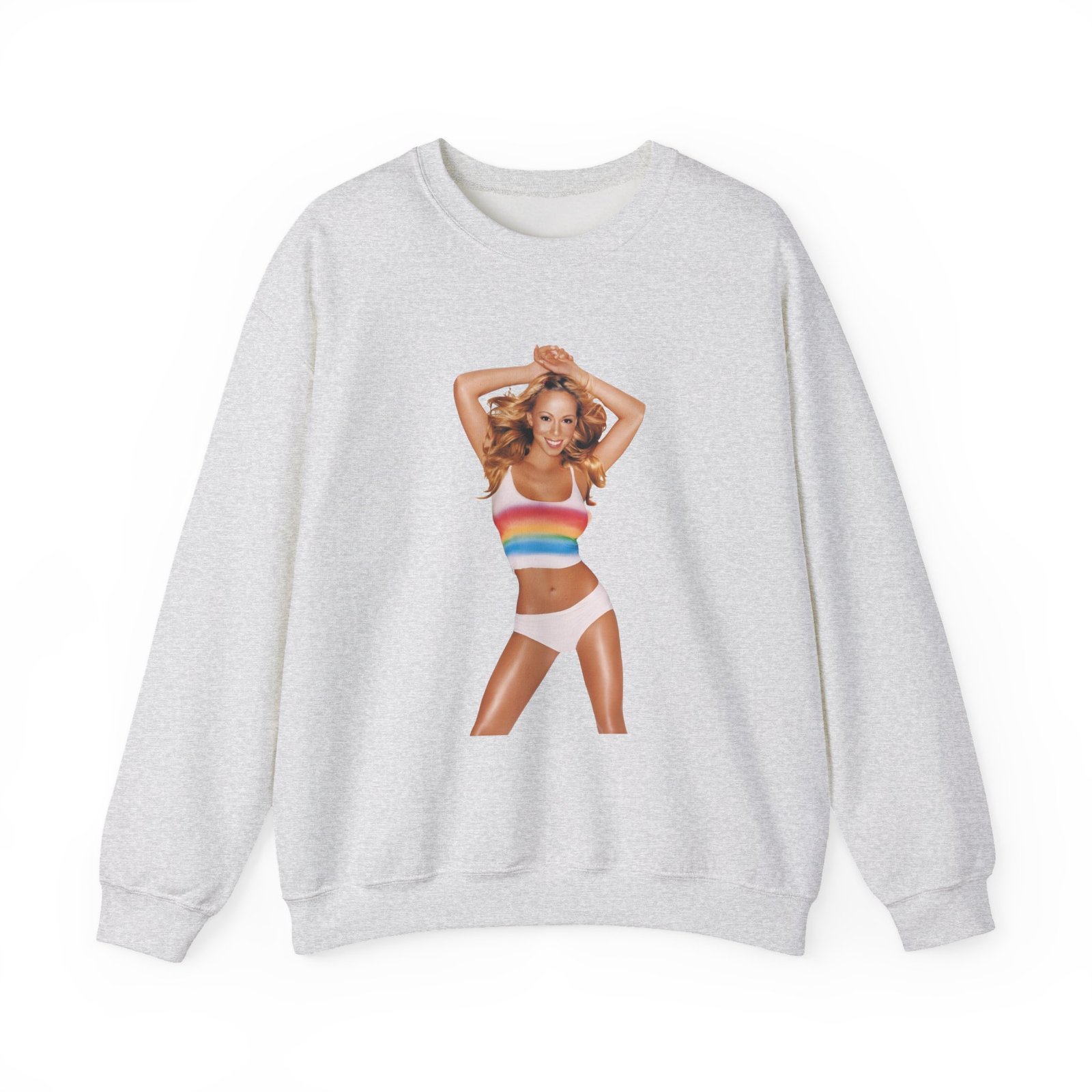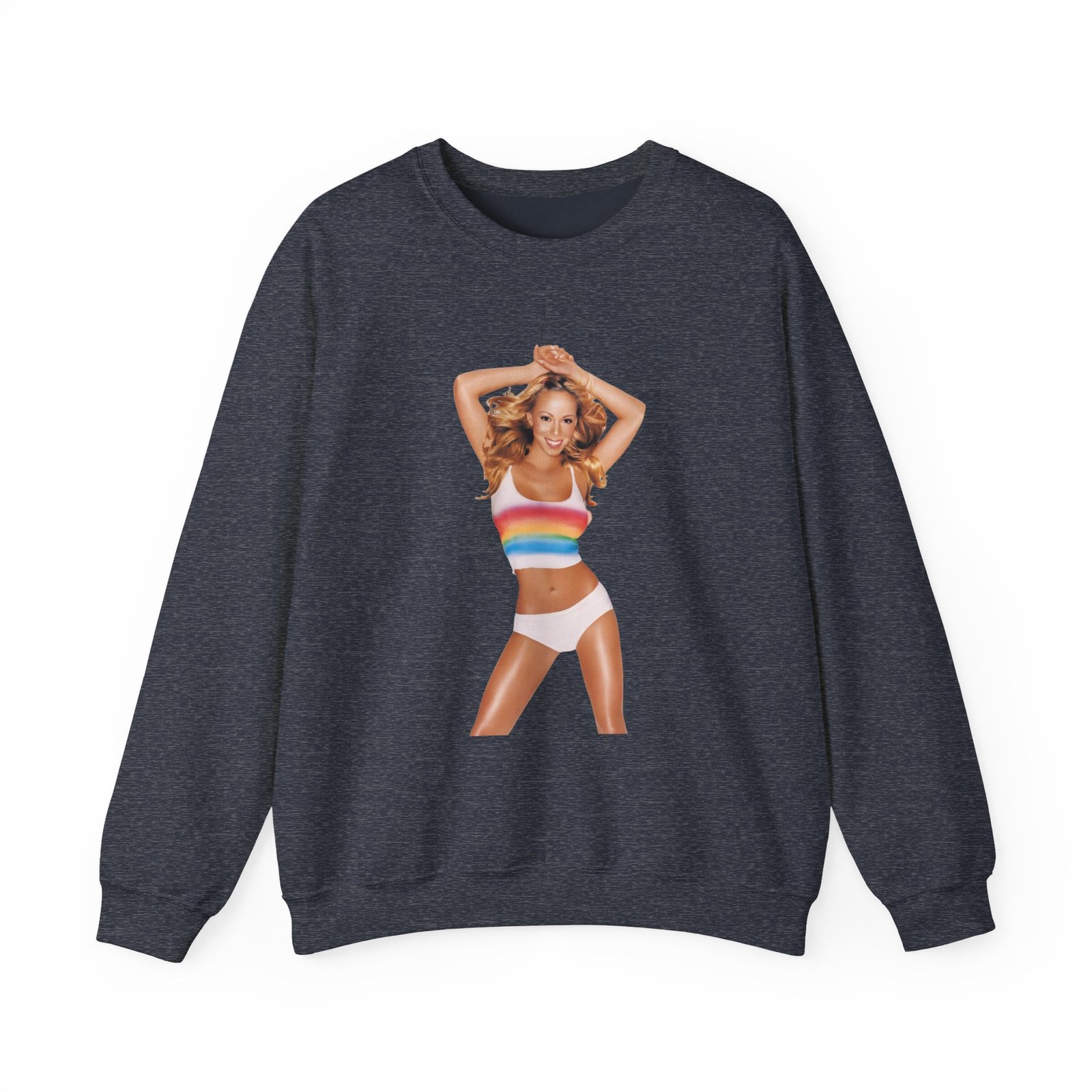 Ideal for any situation, a Mariah Carey Rainbow unisex heavy blend crewneck sweatshirt is pure comfort. These garments are made from polyester and cotton. This combination helps designs come out looking fresh and beautiful. The collar is ribbed knit, so it retains its shape even after washing. There are no itchy side seams on these sweaters.
