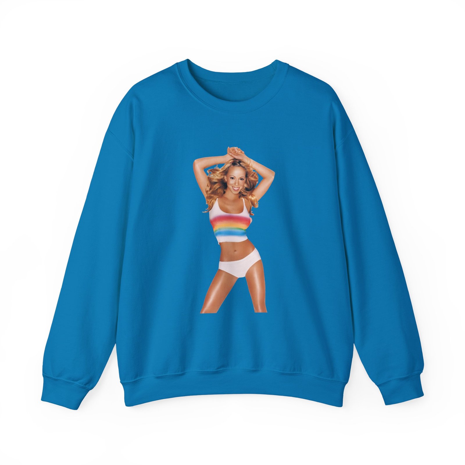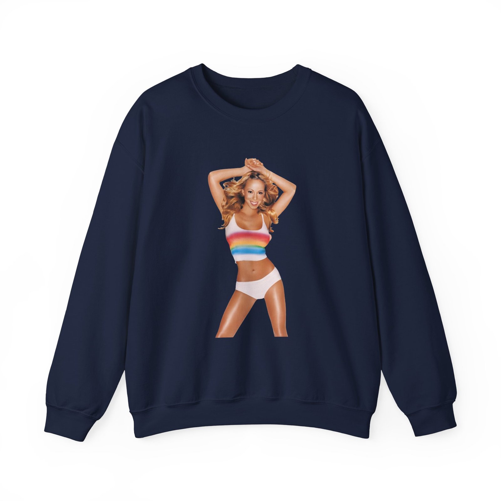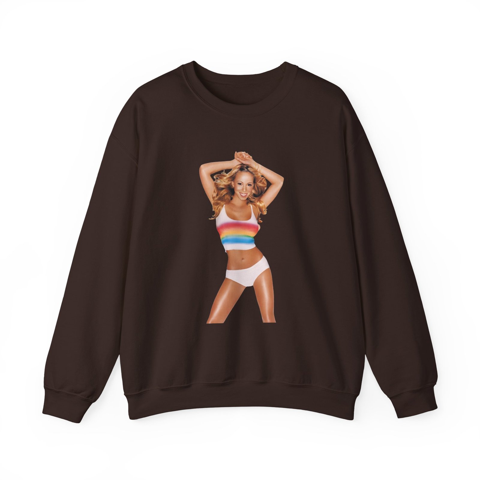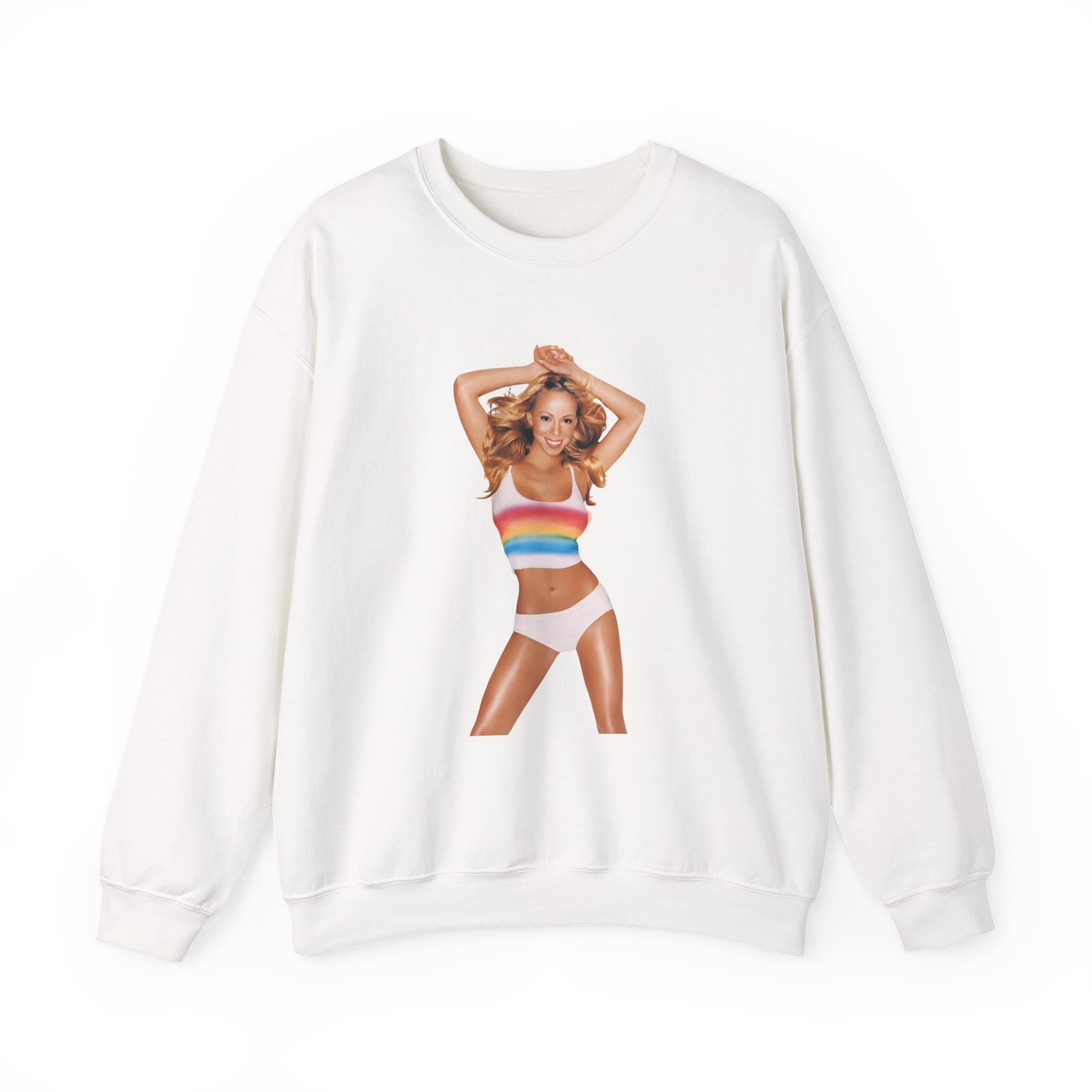 Ideal for any situation, a Mariah Carey Rainbow unisex heavy blend crewneck sweatshirt is pure comfort. These garments are made from polyester and cotton. This combination helps designs come out looking fresh and beautiful. The collar is ribbed knit, so it retains its shape even after washing. There are no itchy side seams on these sweaters.