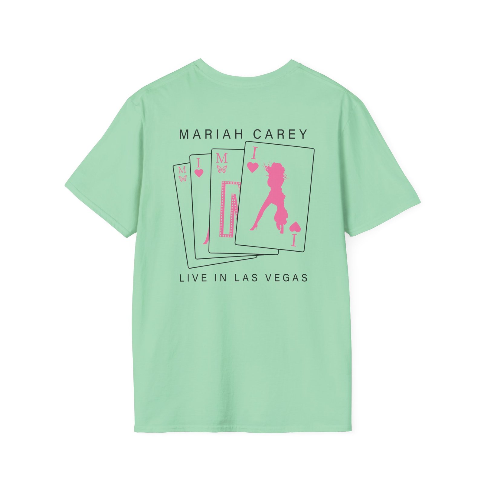 The Mariah Carey Vegas unisex soft-style t-shirt puts a new spin on casual comfort. Made from very soft materials, this tee is 100% cotton for solid colors. Heather colors and sports grey include polyester. The shoulders have twill tape for improved durability. There are no side seams. The collar is made with ribbed knitting to prevent curling damage.