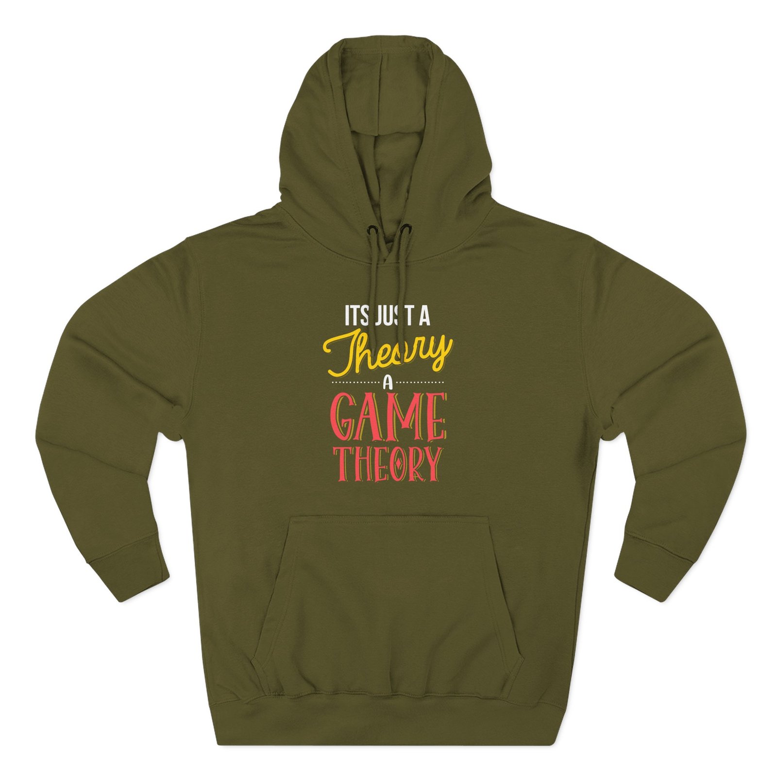 Beat the cold with this Matpat It's Just a Theory. A Game Theory premium pullover hoodie that’s just the right layer of warm and cozy. Made with three-panel fleece lining, this pullover is double stitched for durability and roomy. Pick one in your favorite color to match your style.
