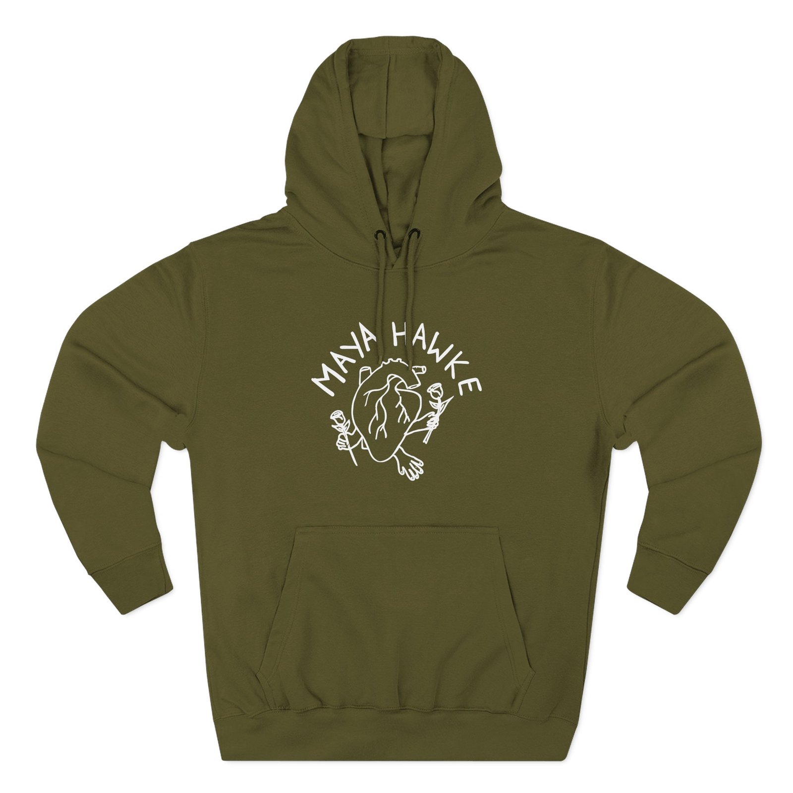 Beat the cold with this Maya Hawke Generous Heart premium pullover hoodie that’s just the right layer of warm and cozy. Made with three-panel fleece lining, this pullover is double stitched for durability and roomy. Pick one in your favorite color to match your style.