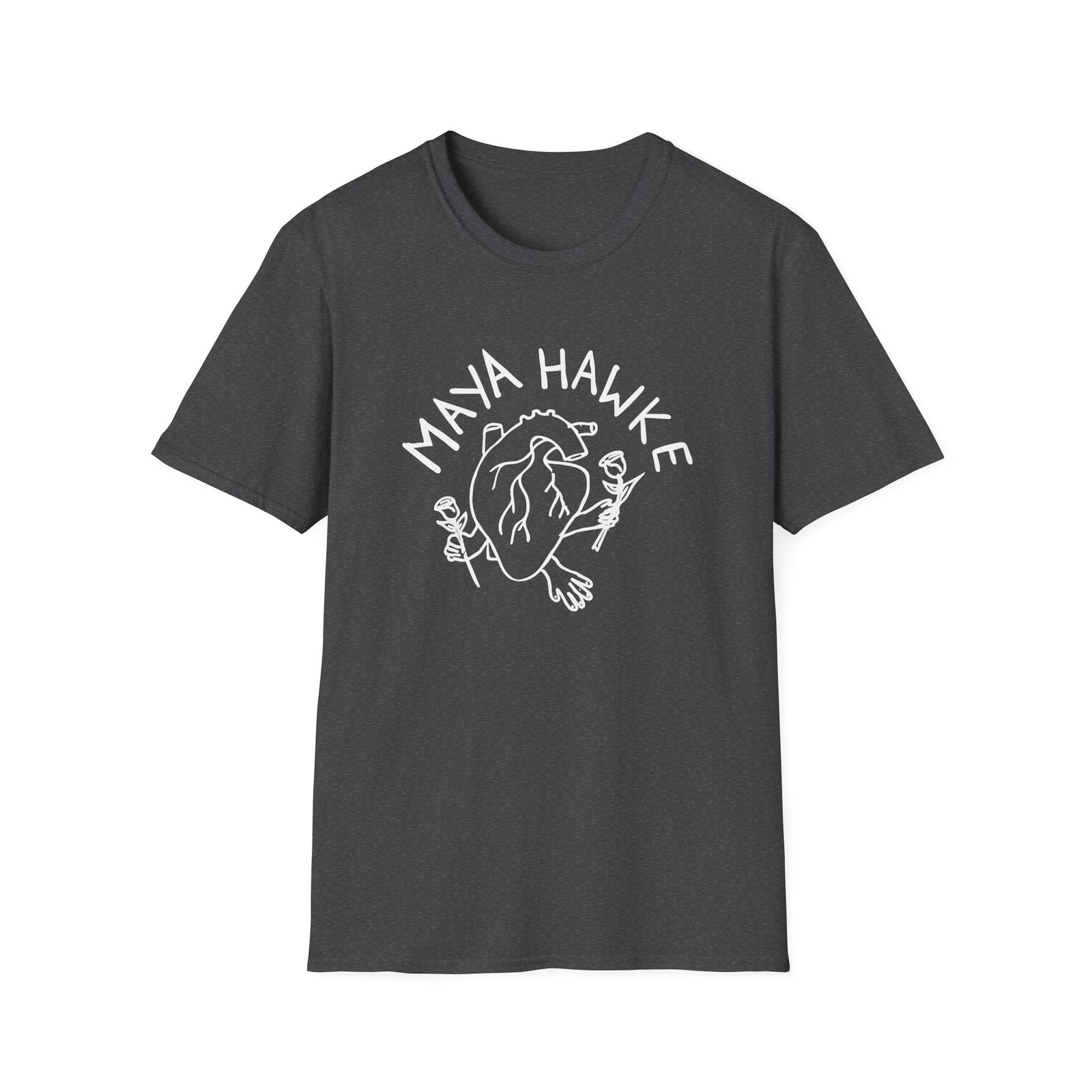 The Maya Hawke Generous Heart unisex soft-style t-shirt puts a new spin on casual comfort. Made from very soft materials, this tee is 100% cotton for solid colors. Heather colors and sports grey include polyester. The shoulders have twill tape for improved durability. There are no side seams. The collar is made with ribbed knitting to prevent curling damage.