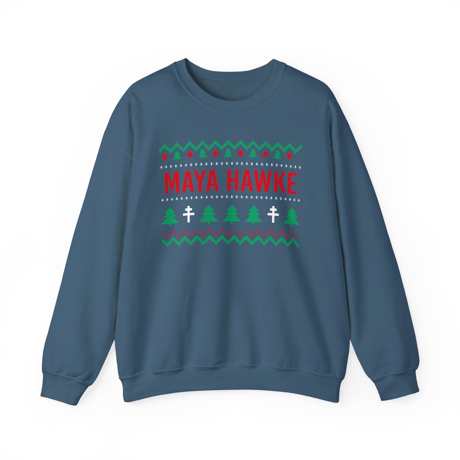 Ideal for any situation, a Maya Hawke unisex heavy blend crewneck sweatshirt is pure comfort. These garments are made from polyester and cotton. This combination helps designs come out looking fresh and beautiful. The collar is ribbed knit, so it retains its shape even after washing. There are no itchy side seams on these sweaters.