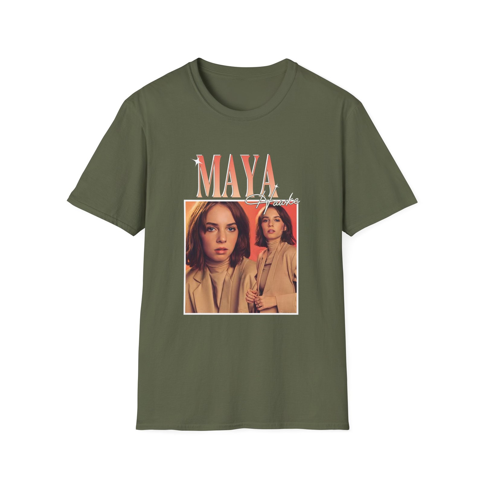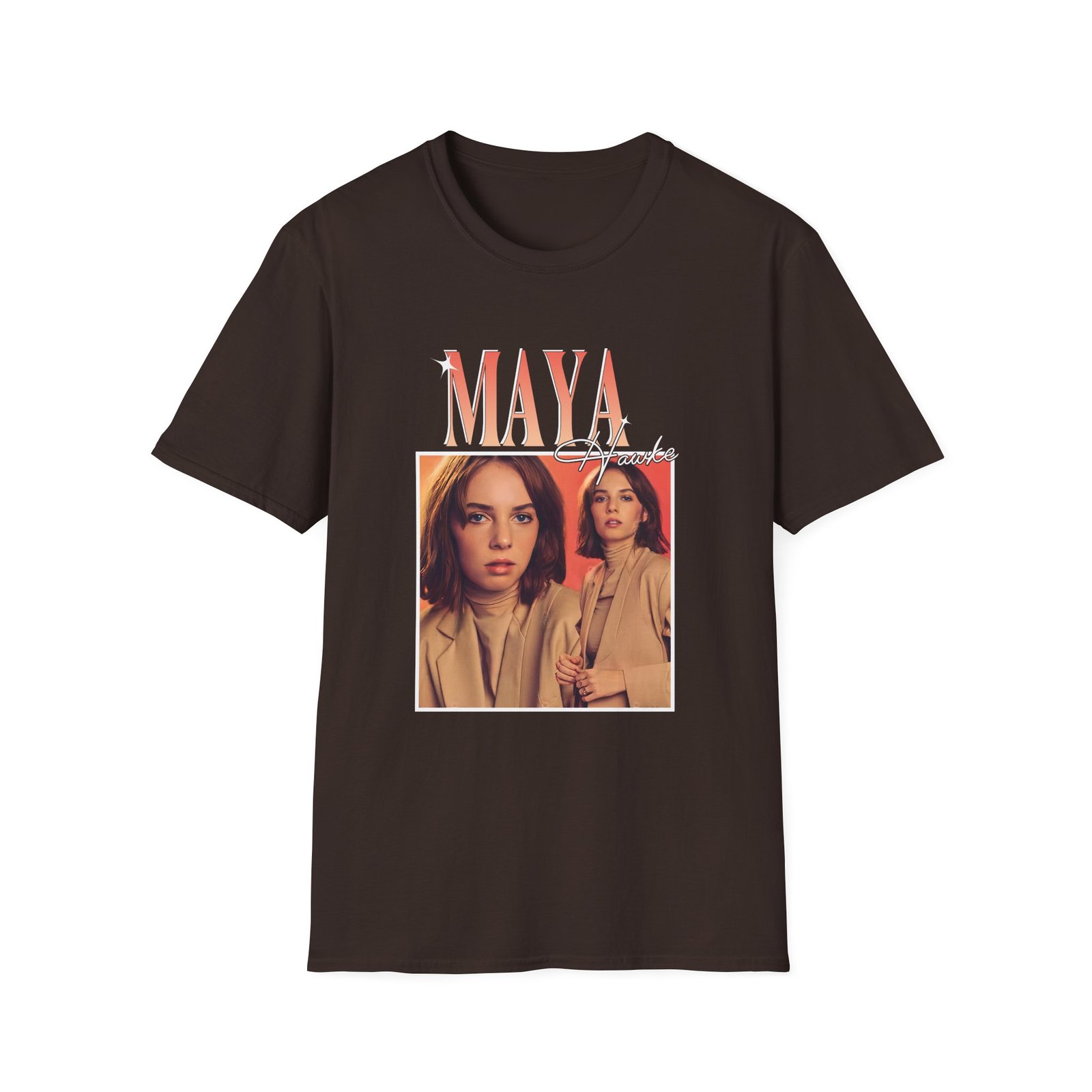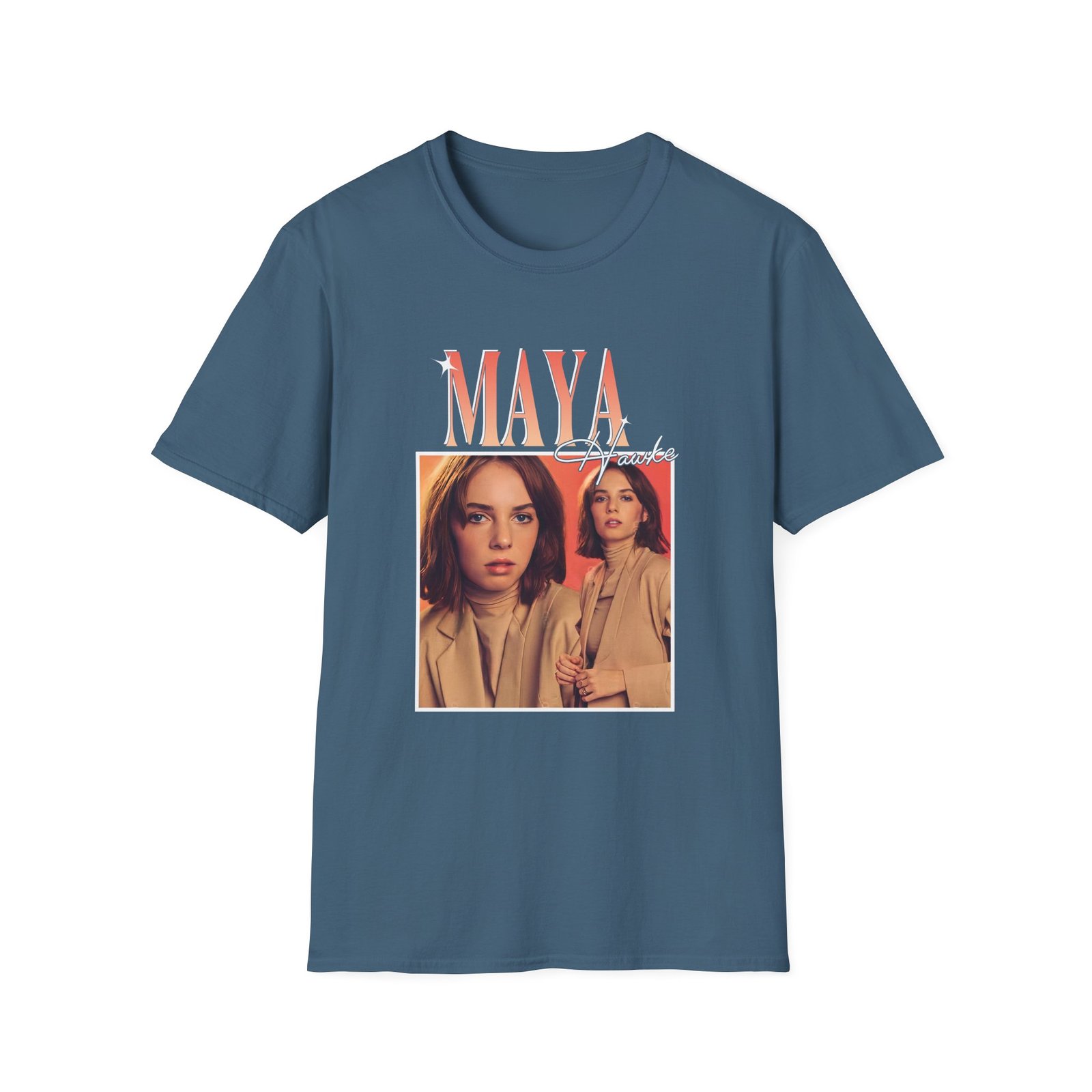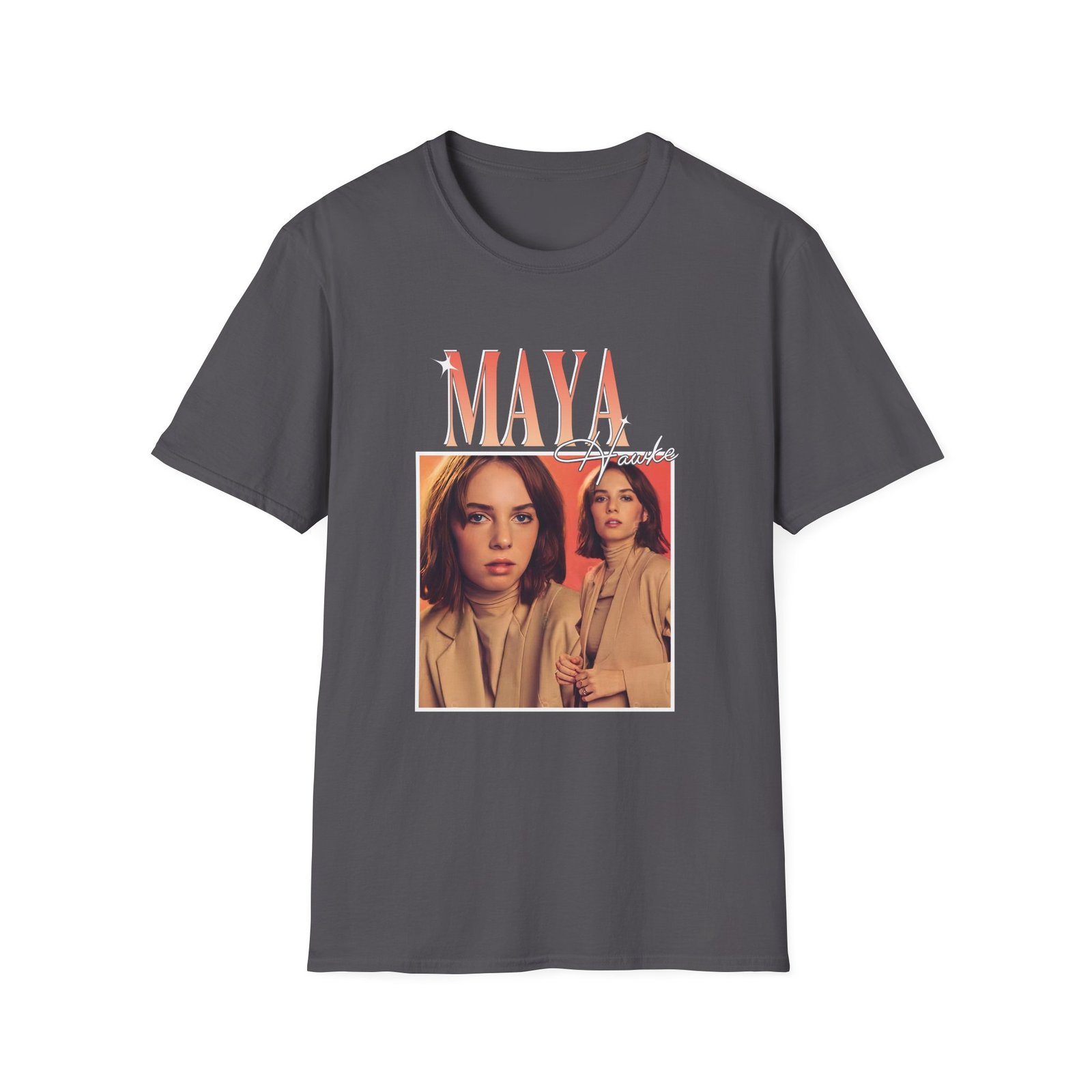 The Maya Hawke unisex soft-style t-shirt puts a new spin on casual comfort. Made from very soft materials, this tee is 100% cotton for solid colors. Heather colors and sports grey include polyester. The shoulders have twill tape for improved durability. There are no side seams. The collar is made with ribbed knitting to prevent curling damage.