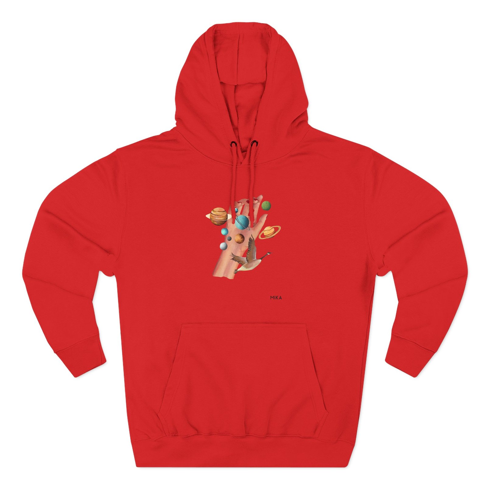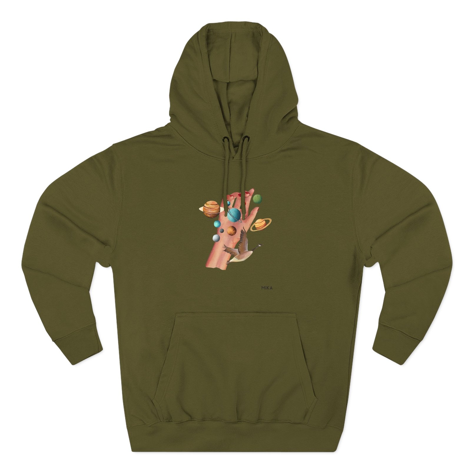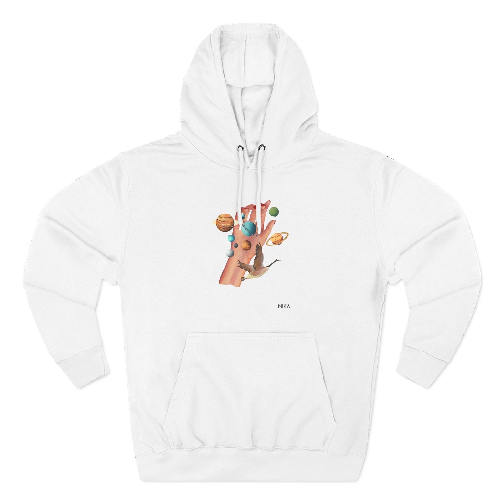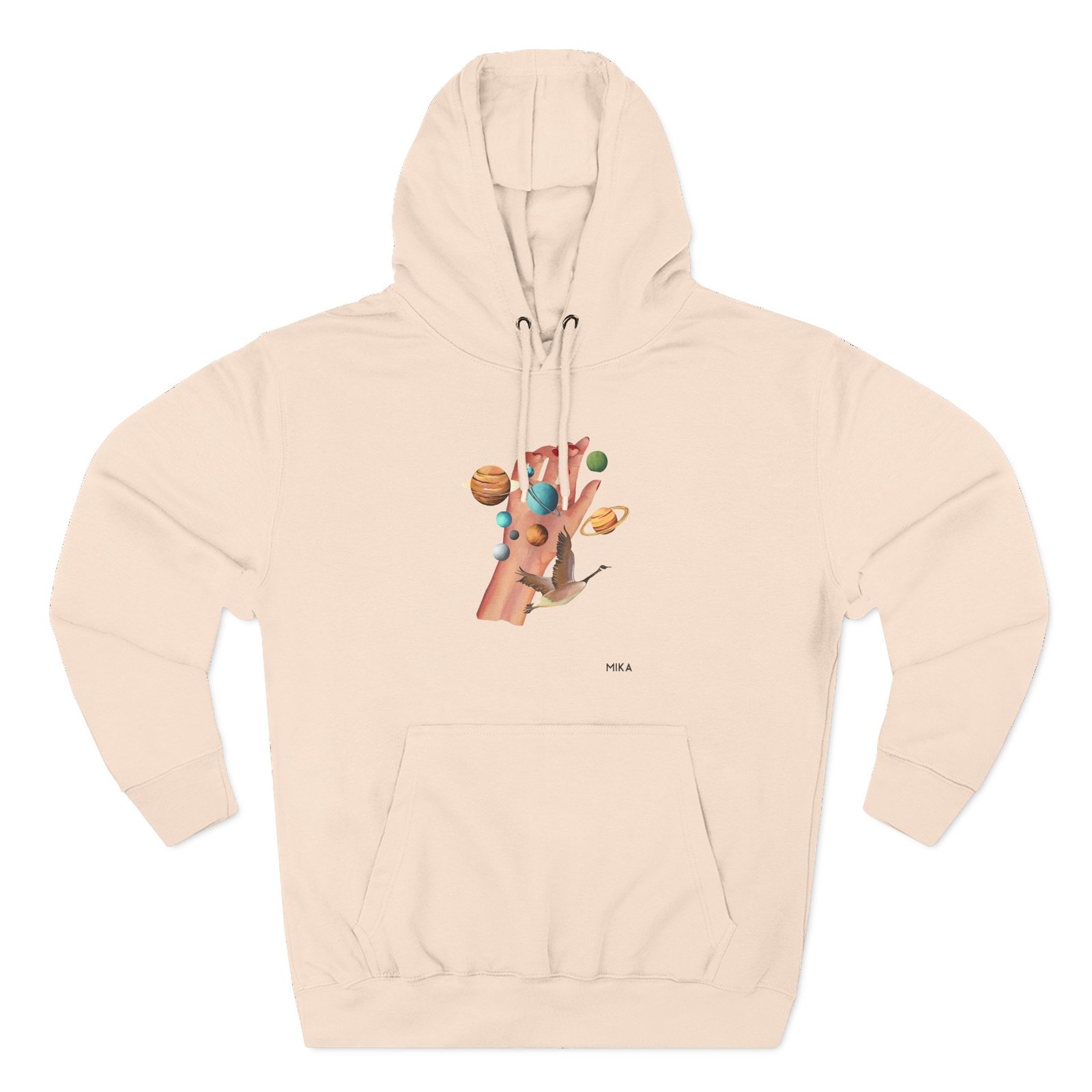 Beat the cold with this Mika Solar System premium pullover hoodie that’s just the right layer of warm and cozy. Made with three-panel fleece lining, this pullover is double stitched for durability and roomy. Pick one in your favorite color to match your style.