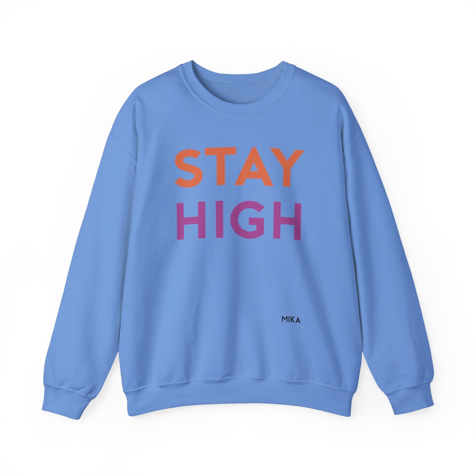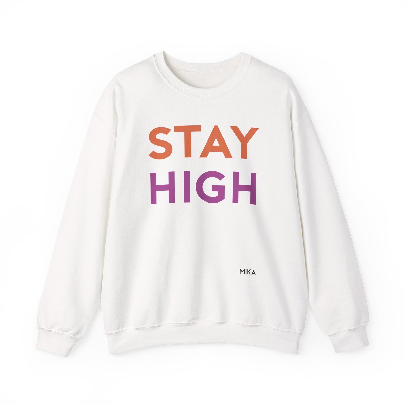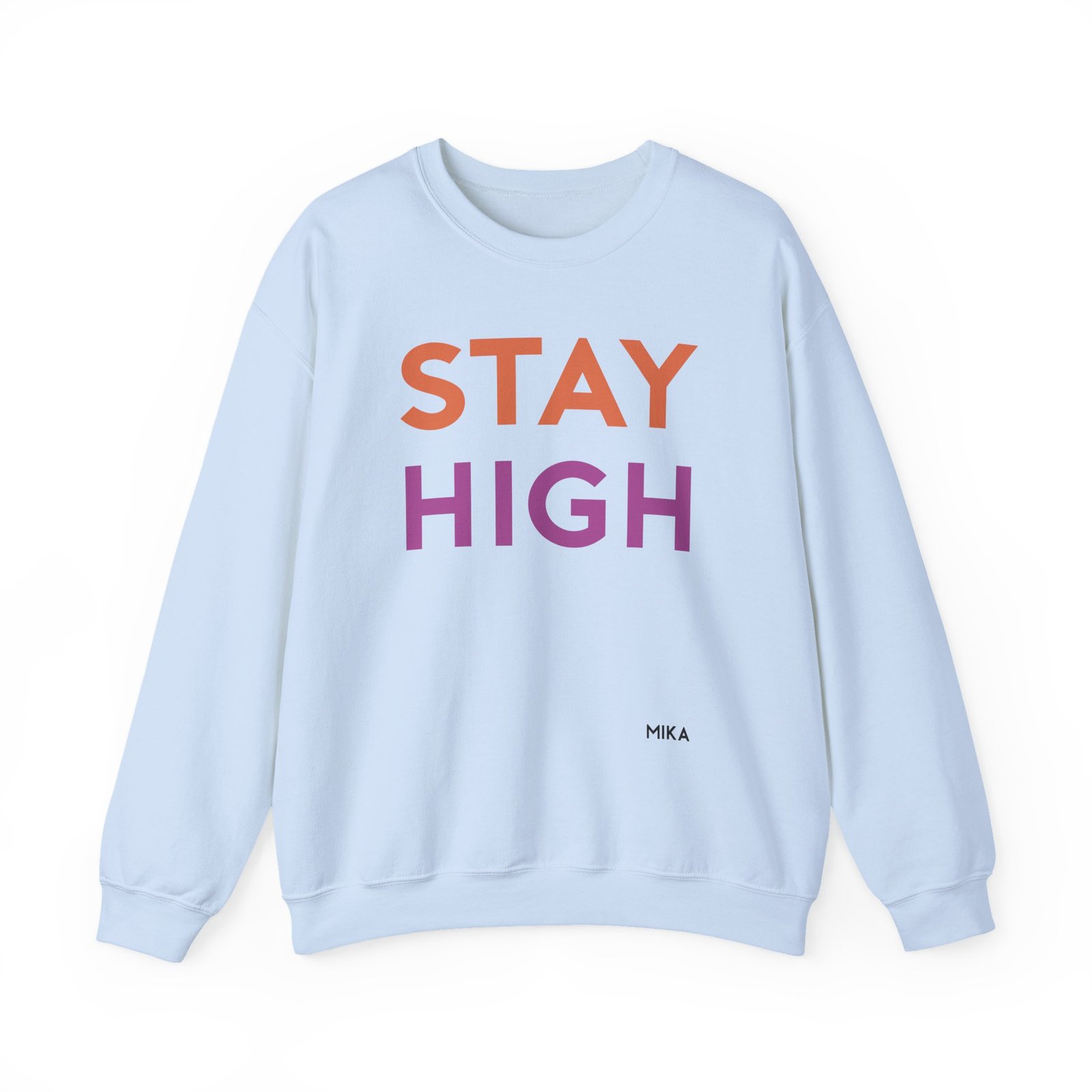 Ideal for any situation, a Mika Stay High unisex heavy blend crewneck sweatshirt is pure comfort. These garments are made from polyester and cotton. This combination helps designs come out looking fresh and beautiful. The collar is ribbed knit, so it retains its shape even after washing. There are no itchy side seams on these sweaters.