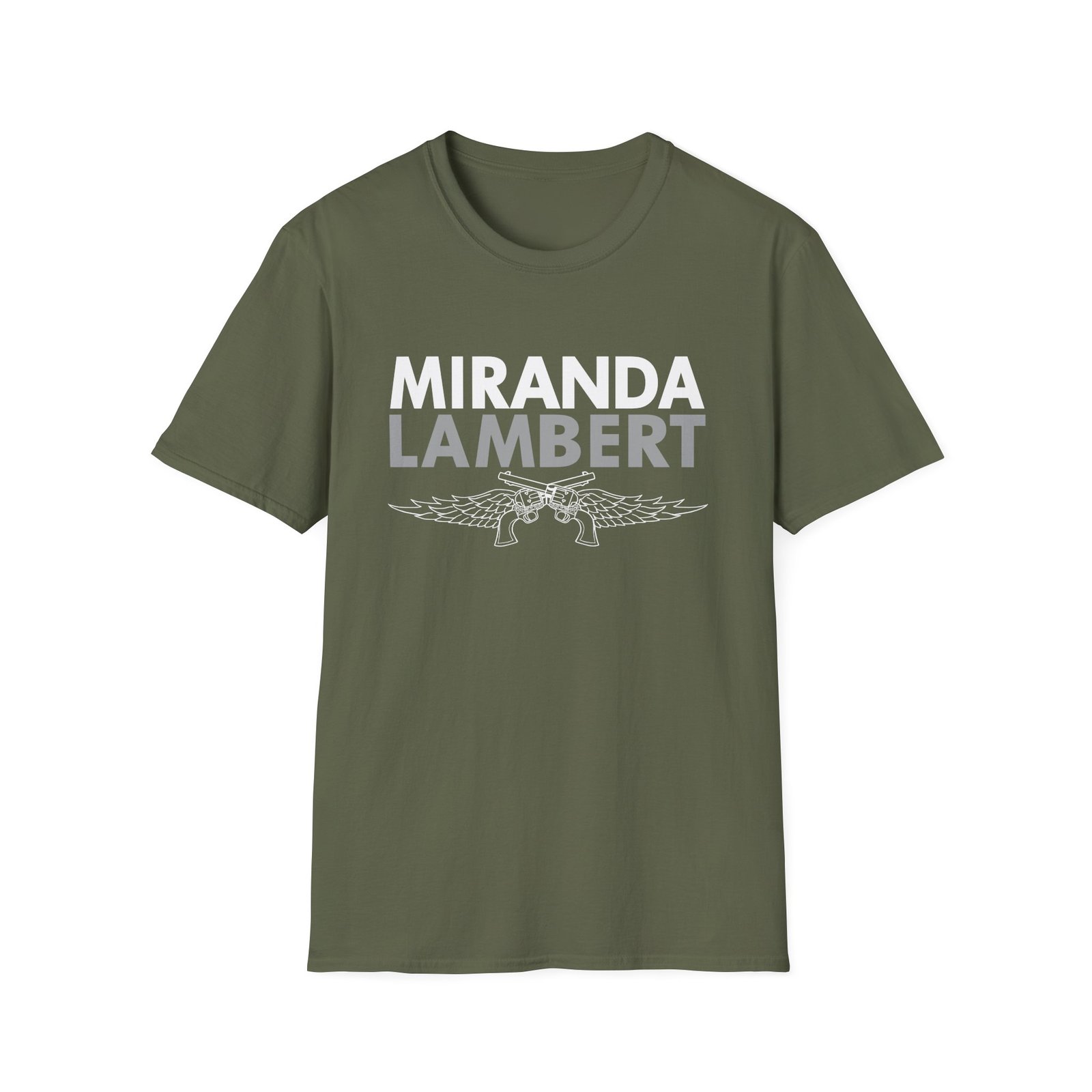 The Miranda Lambert Logo unisex soft-style t-shirt puts a new spin on casual comfort. Made from very soft materials, this tee is 100% cotton for solid colors. Heather colors and sports grey include polyester. The shoulders have twill tape for improved durability. There are no side seams. The collar is made with ribbed knitting to prevent curling damage.