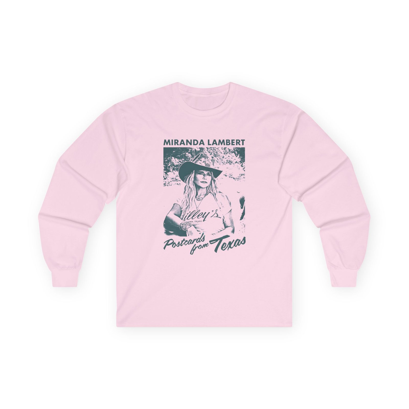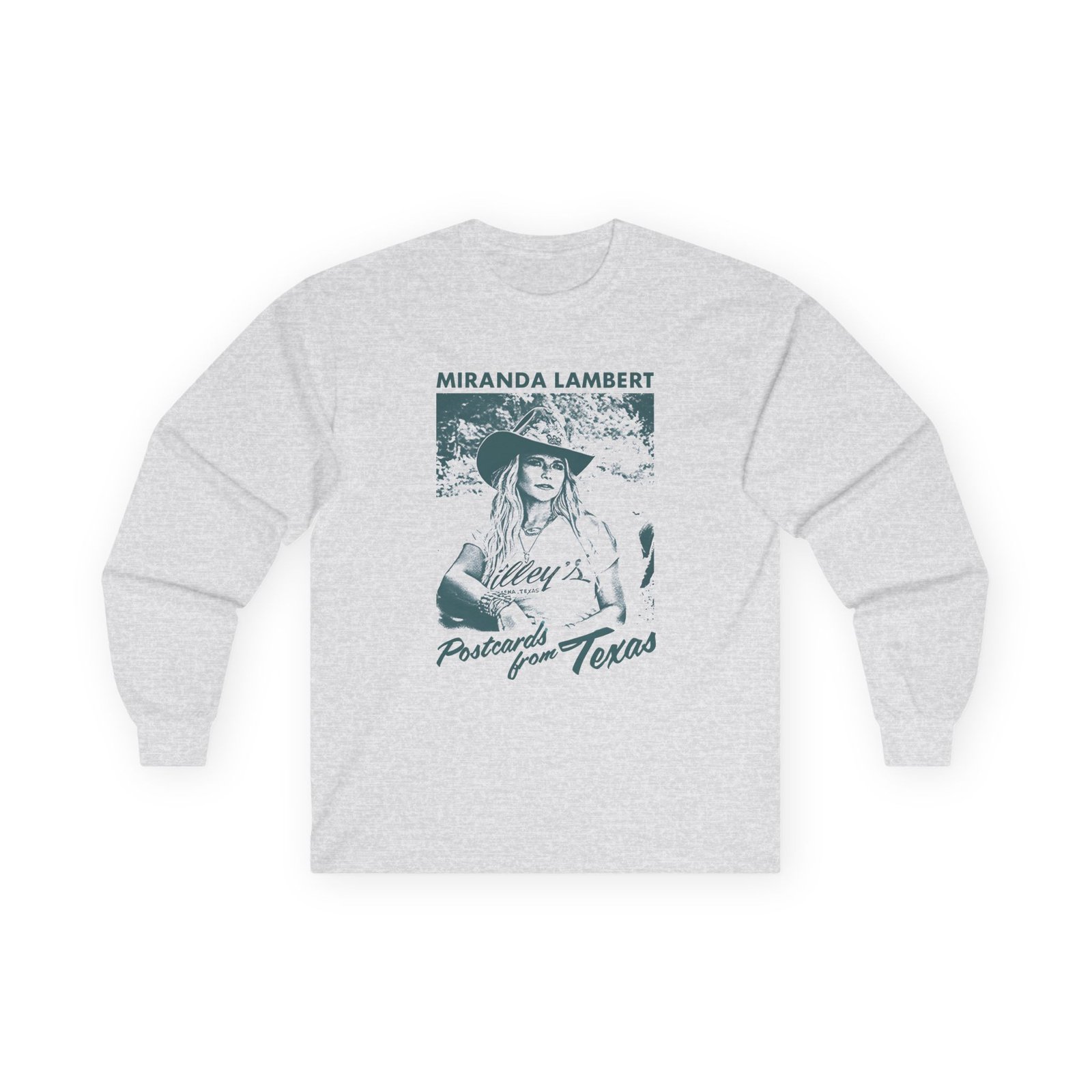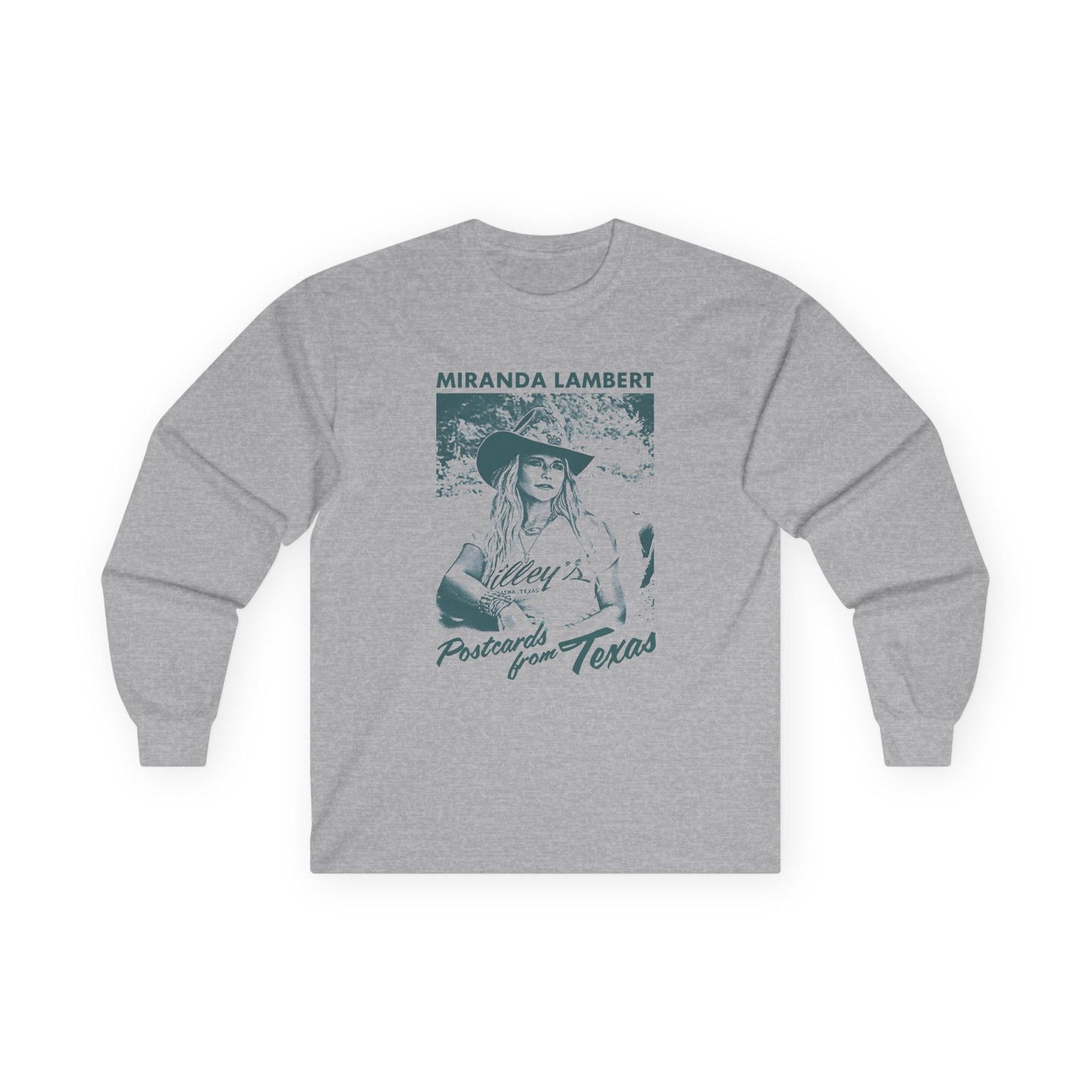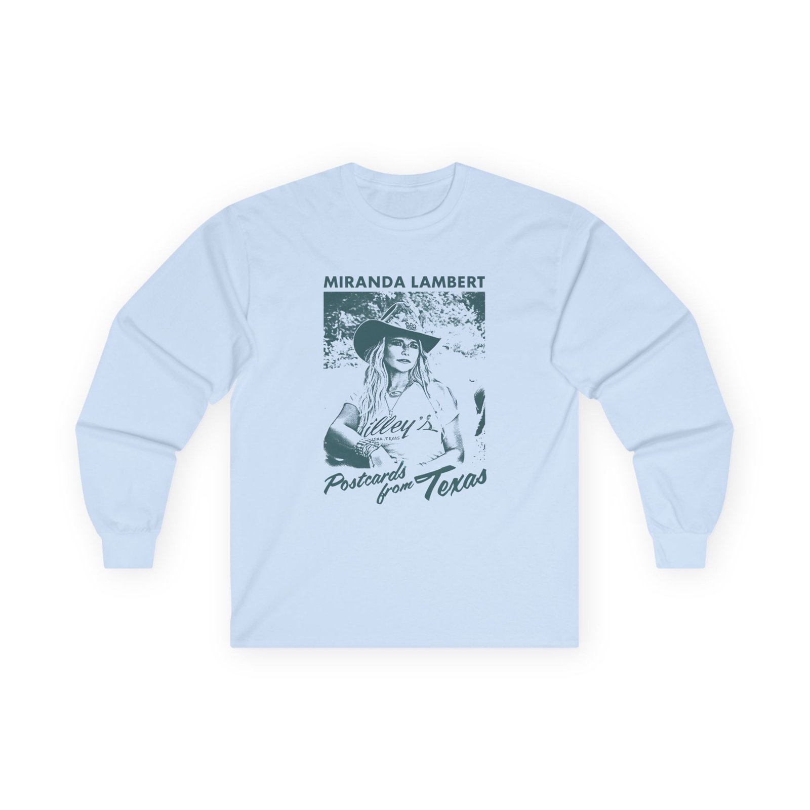 A bit more formal than a standard-issue t-shirt, the Miranda Lambert Photo ultra cotton long sleeve tee is a clear comfort winner. The sleeves also act as a nice frame. There are no side seams. The shoulders are taped for improved durability. This makes for a good fitting around the shoulders and neck. The cotton used for these shirts is environmentally friendly.