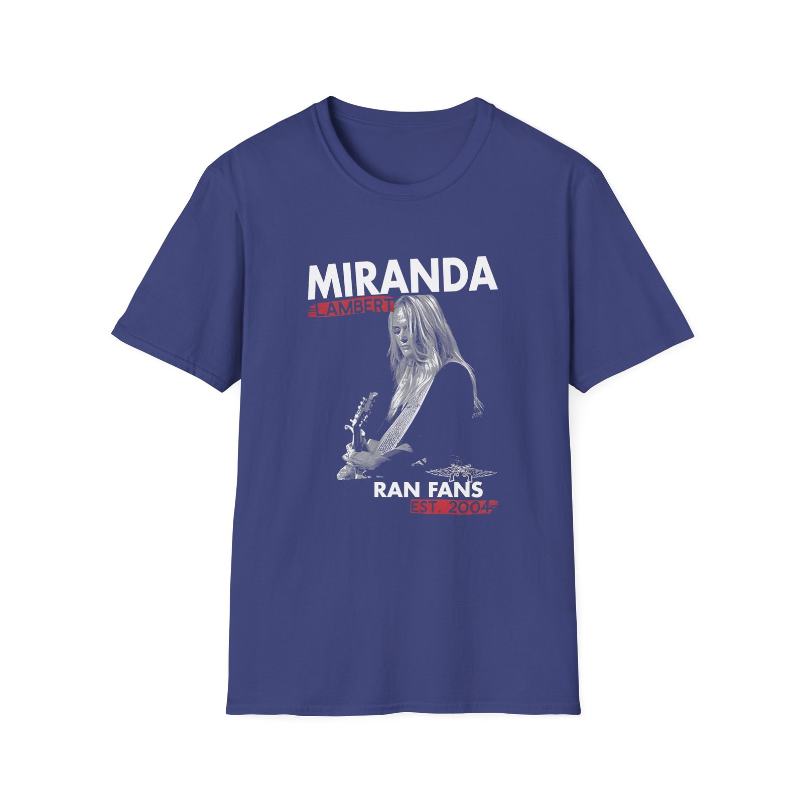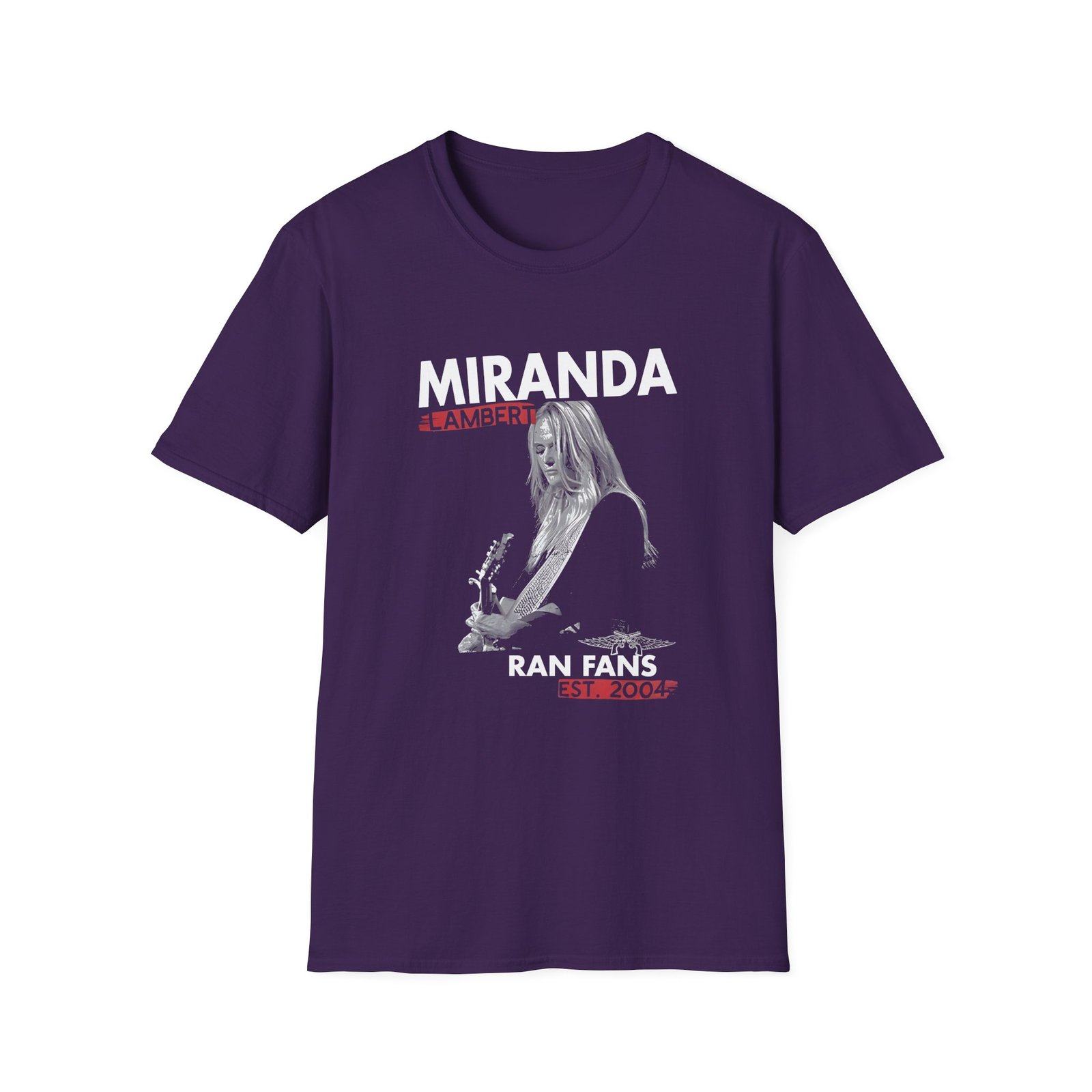 The Miranda Lambert Ran Fans Exclusive Est. 2004 unisex soft-style t-shirt puts a new spin on casual comfort. Made from very soft materials, this tee is 100% cotton for solid colors. Heather colors and sports grey include polyester. The shoulders have twill tape for improved durability. There are no side seams. The collar is made with ribbed knitting to prevent curling damage.