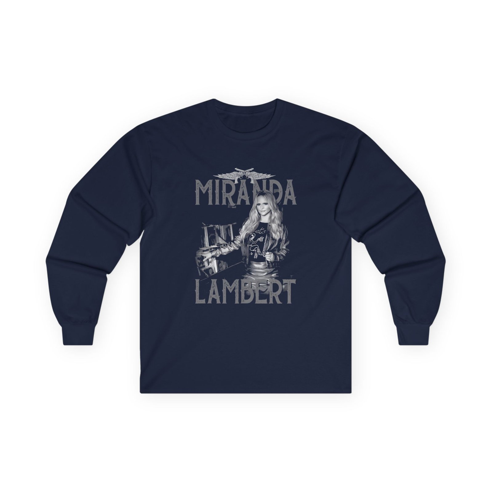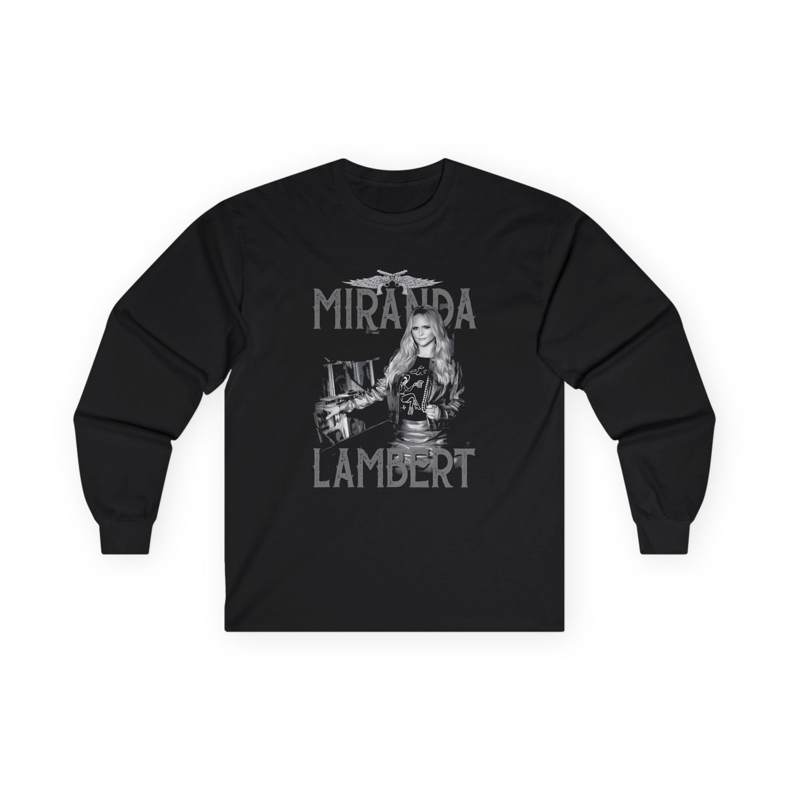A bit more formal than a standard-issue t-shirt, the Miranda Lambert Record Store ultra cotton long sleeve tee is a clear comfort winner. The sleeves also act as a nice frame. There are no side seams. The shoulders are taped for improved durability. This makes for a good fitting around the shoulders and neck. The cotton used for these shirts is environmentally friendly.