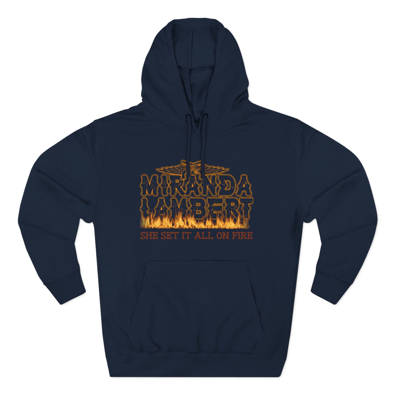 Beat the cold with this Miranda Lambert Set It All on Fire premium pullover hoodie that’s just the right layer of warm and cozy. Made with three-panel fleece lining, this pullover is double stitched for durability and roomy. Pick one in your favorite color to match your style.