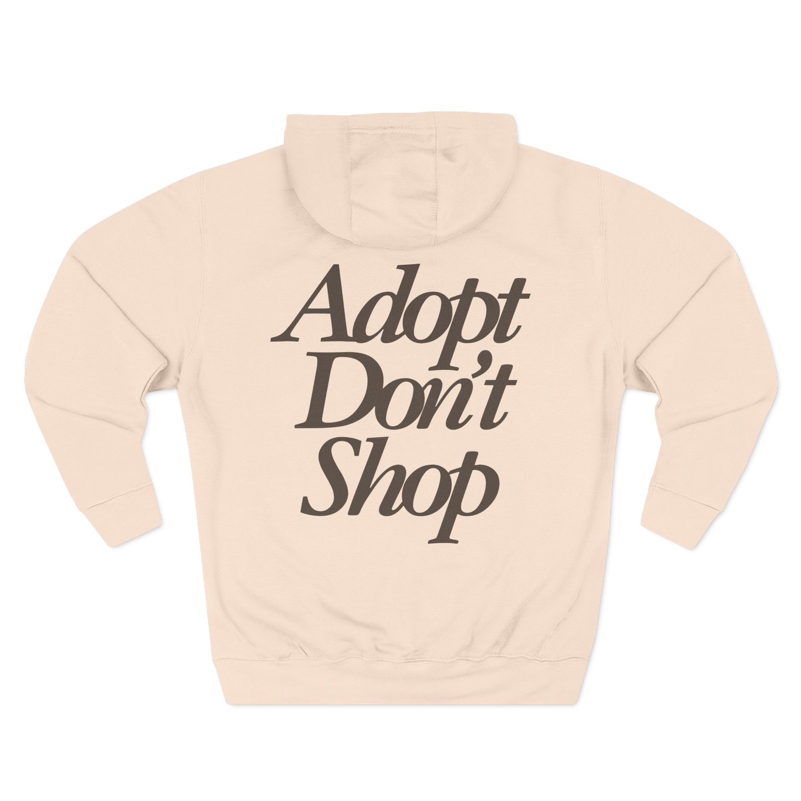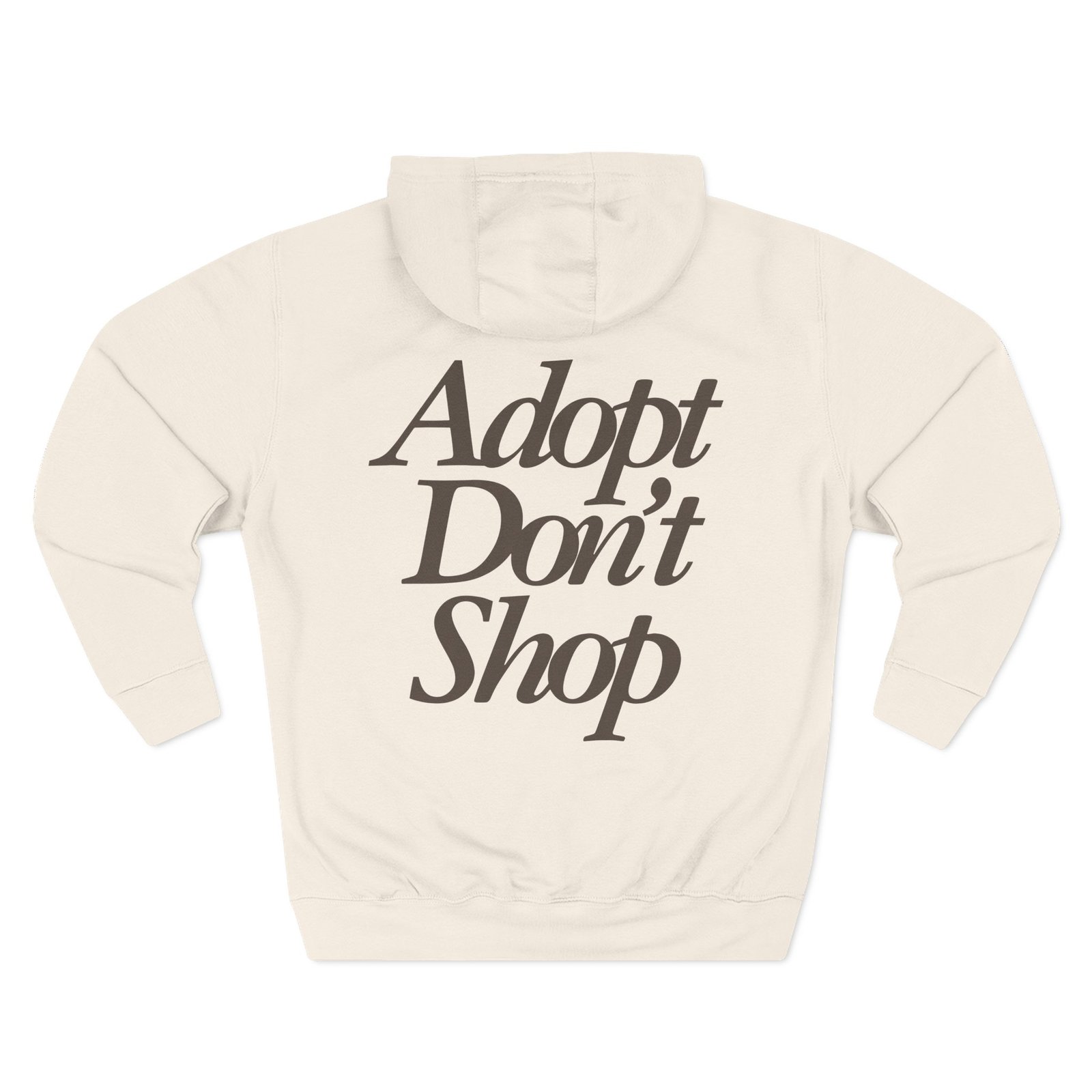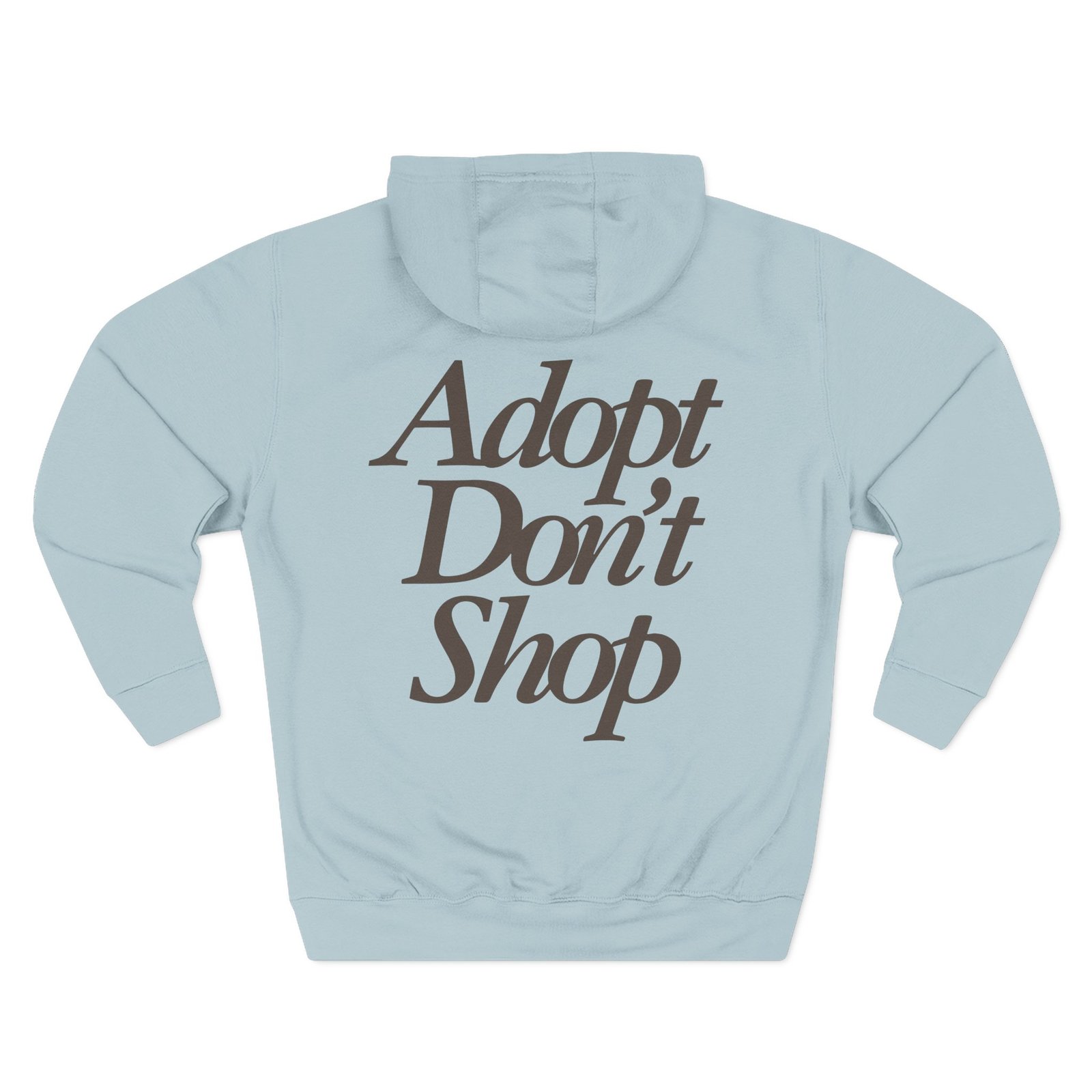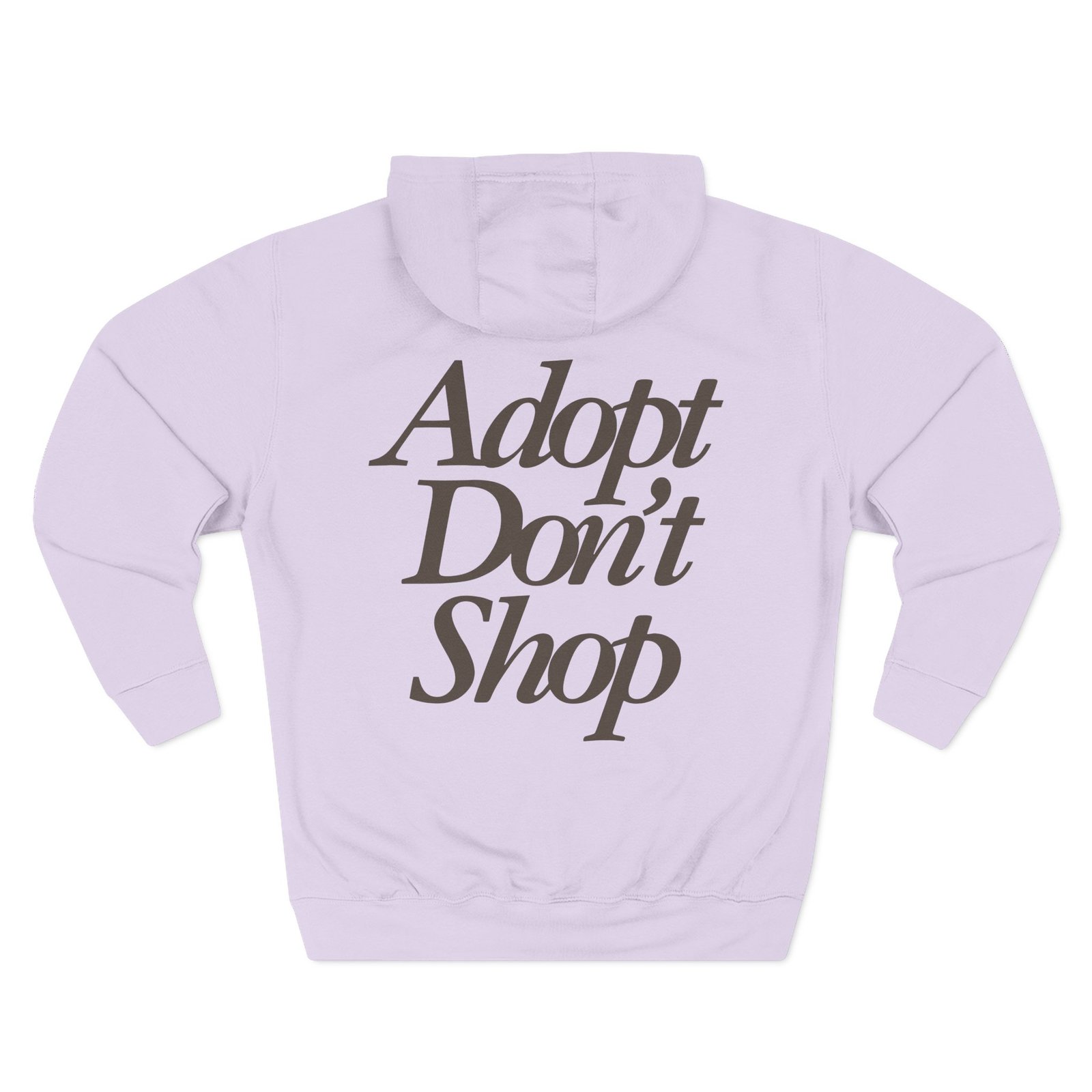 Beat the cold with this Miss Peaches Adopt Don’t Shop premium pullover hoodie that’s just the right layer of warm and cozy. Made with three-panel fleece lining, this pullover is double stitched for durability and roomy. Pick one in your favorite color to match your style.