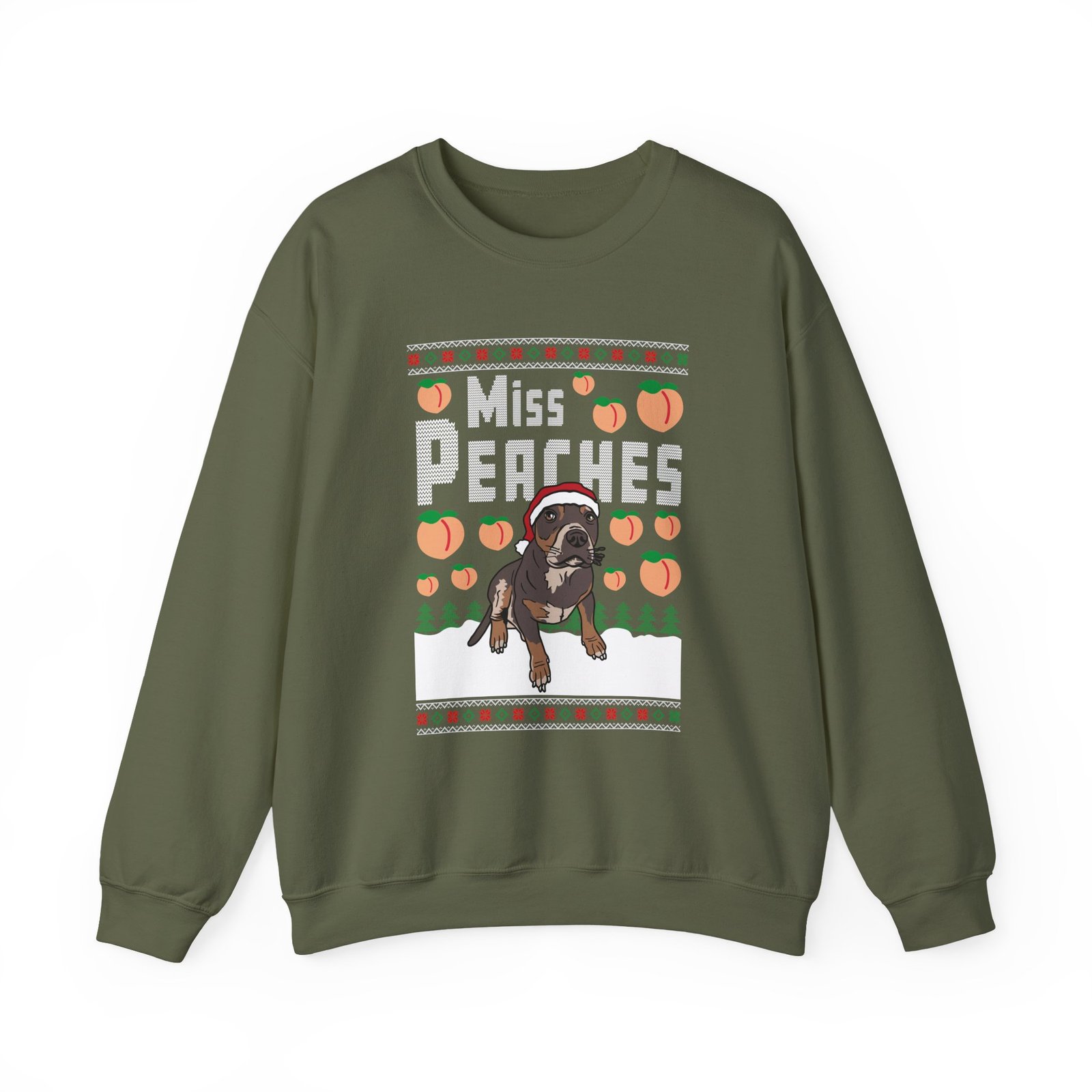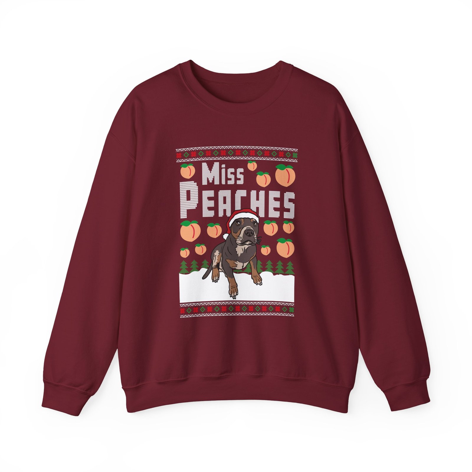 Ideal for any situation, a Miss Peaches Ugly Christmas unisex heavy blend crewneck sweatshirt is pure comfort. These garments are made from polyester and cotton. This combination helps designs come out looking fresh and beautiful. The collar is ribbed knit, so it retains its shape even after washing. There are no itchy side seams on these sweaters.