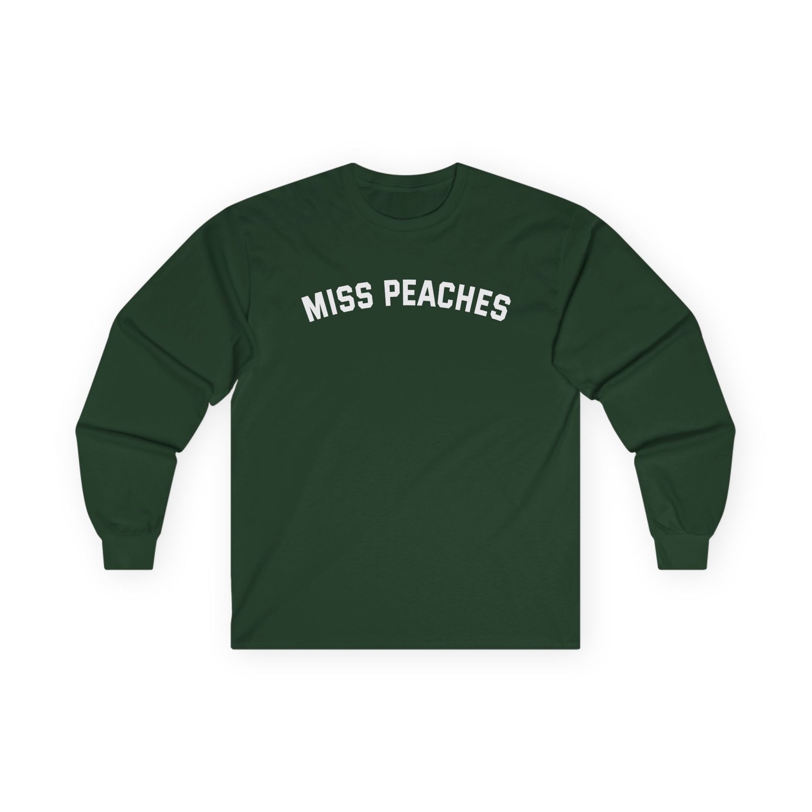 A bit more formal than a standard-issue t-shirt, the Miss Peaches ultra cotton long sleeve tee is a clear comfort winner. The sleeves also act as a nice frame. There are no side seams. The shoulders are taped for improved durability. This makes for a good fitting around the shoulders and neck. The cotton used for these shirts is environmentally friendly.