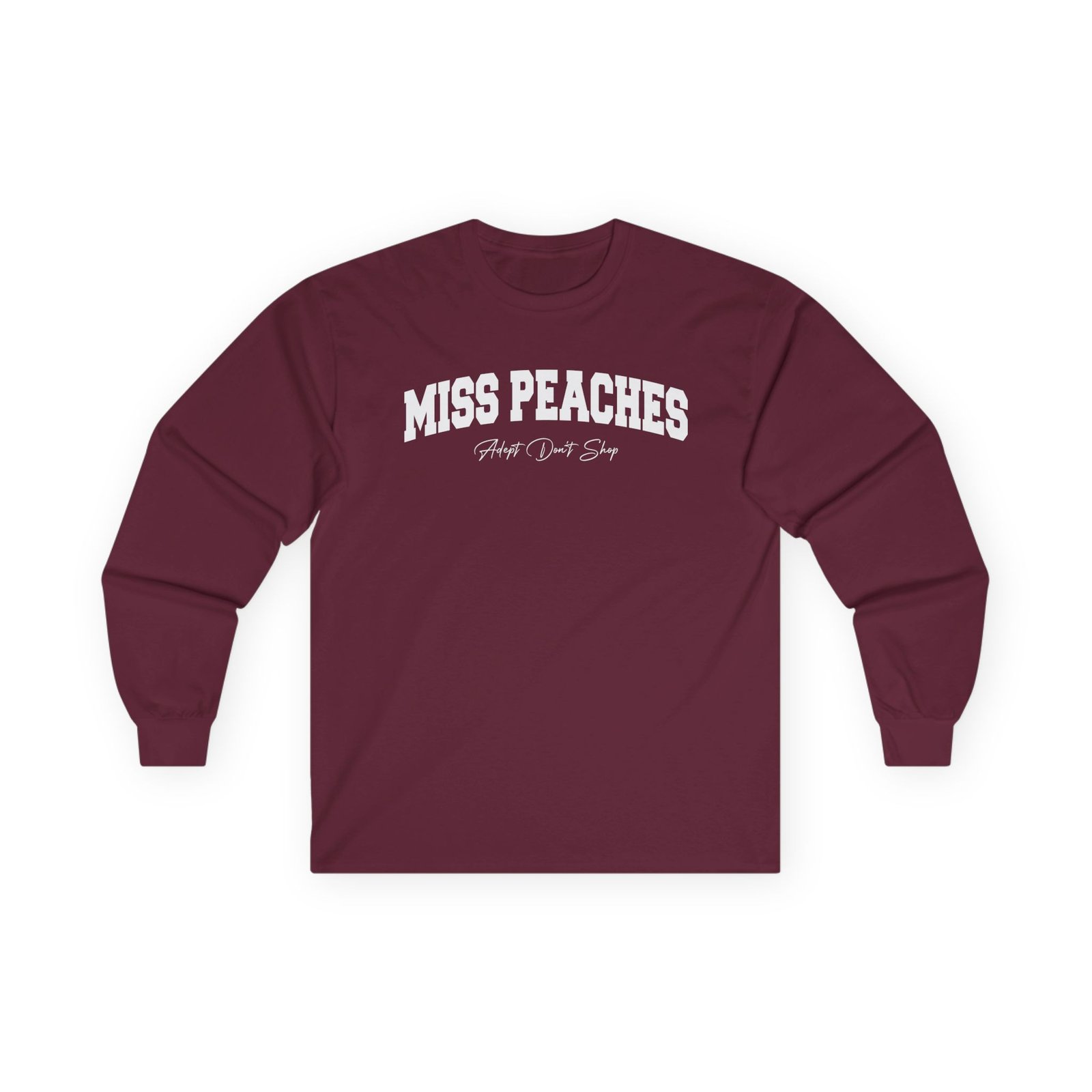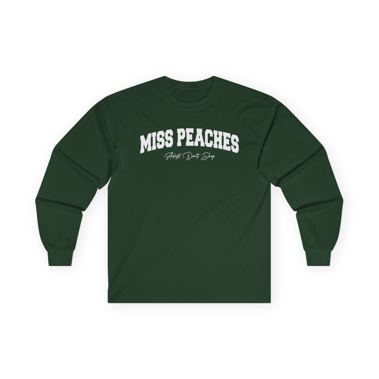 A bit more formal than a standard-issue t-shirt, the Miss Peaches ultra cotton long sleeve tee is a clear comfort winner. The sleeves also act as a nice frame. There are no side seams. The shoulders are taped for improved durability. This makes for a good fitting around the shoulders and neck. The cotton used for these shirts is environmentally friendly.
