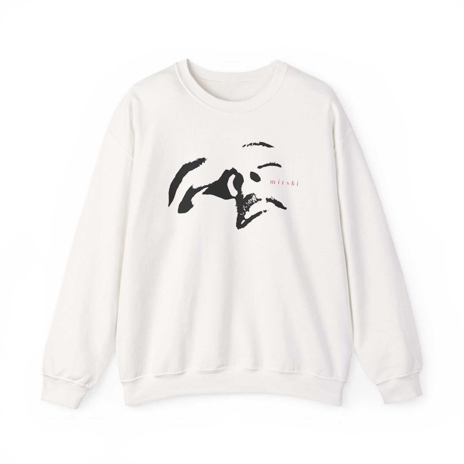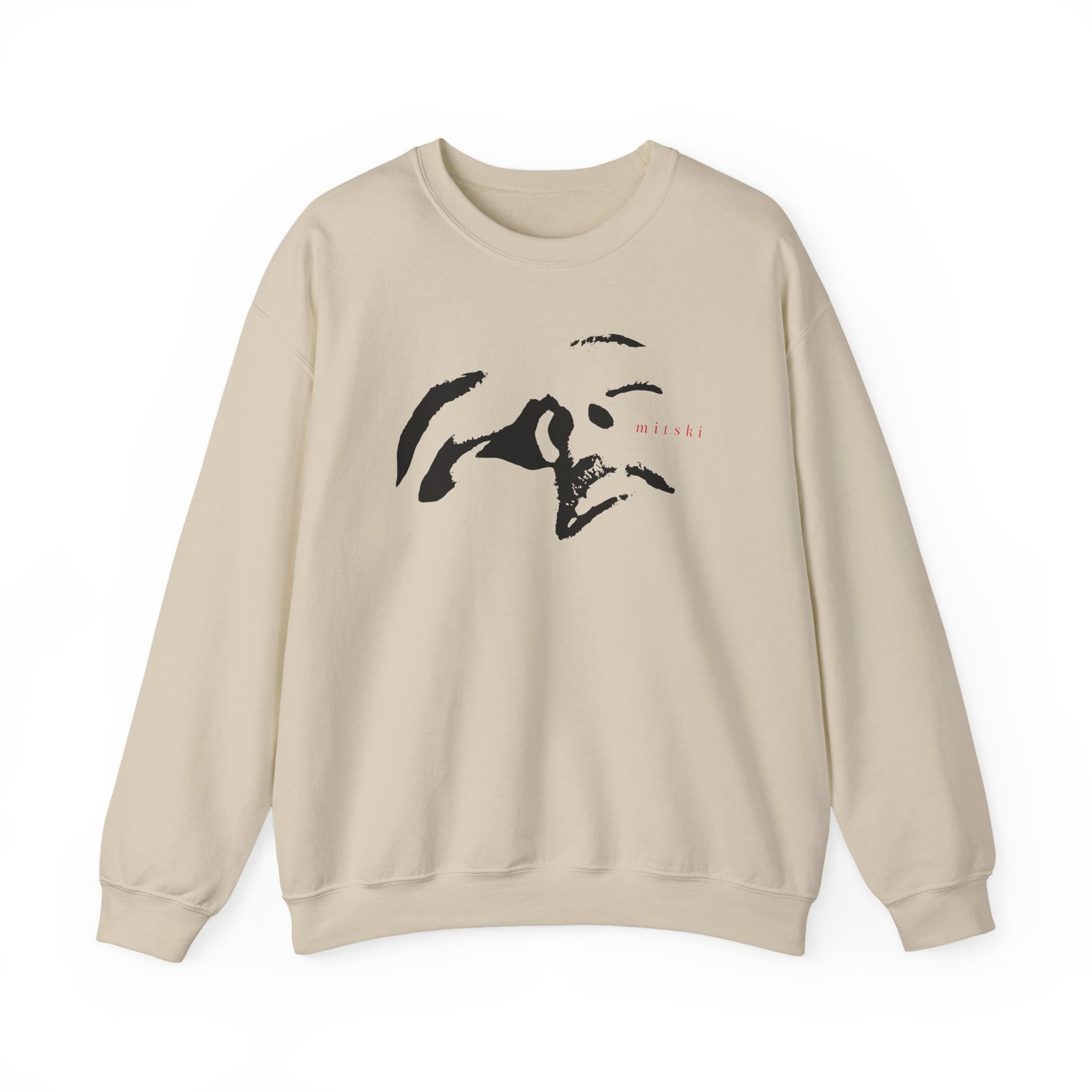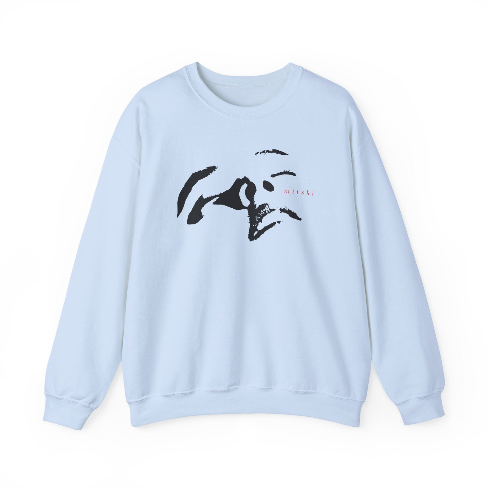 Ideal for any situation, a Mitski Face unisex heavy blend crewneck sweatshirt is pure comfort. These garments are made from polyester and cotton. This combination helps designs come out looking fresh and beautiful. The collar is ribbed knit, so it retains its shape even after washing. There are no itchy side seams on these sweaters.