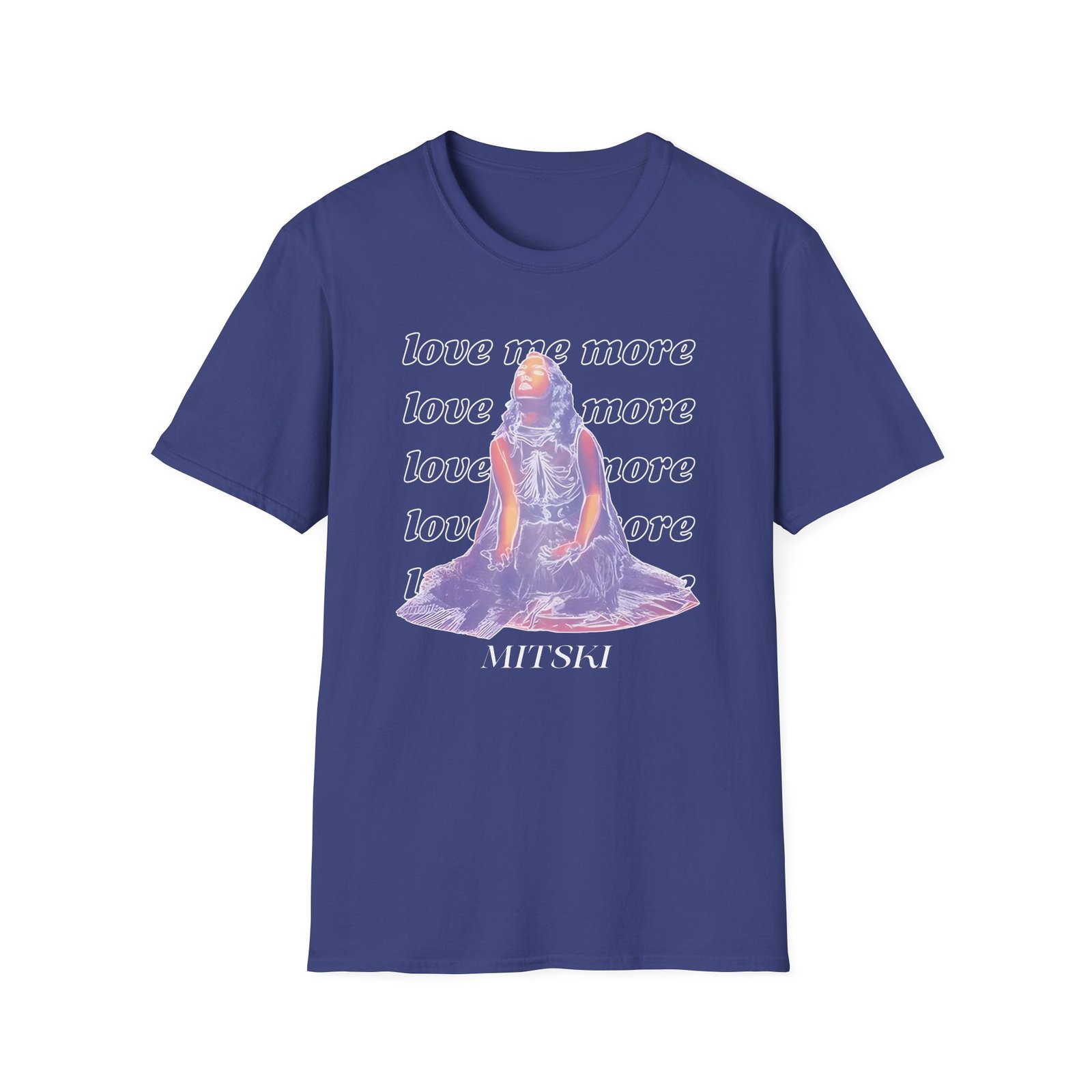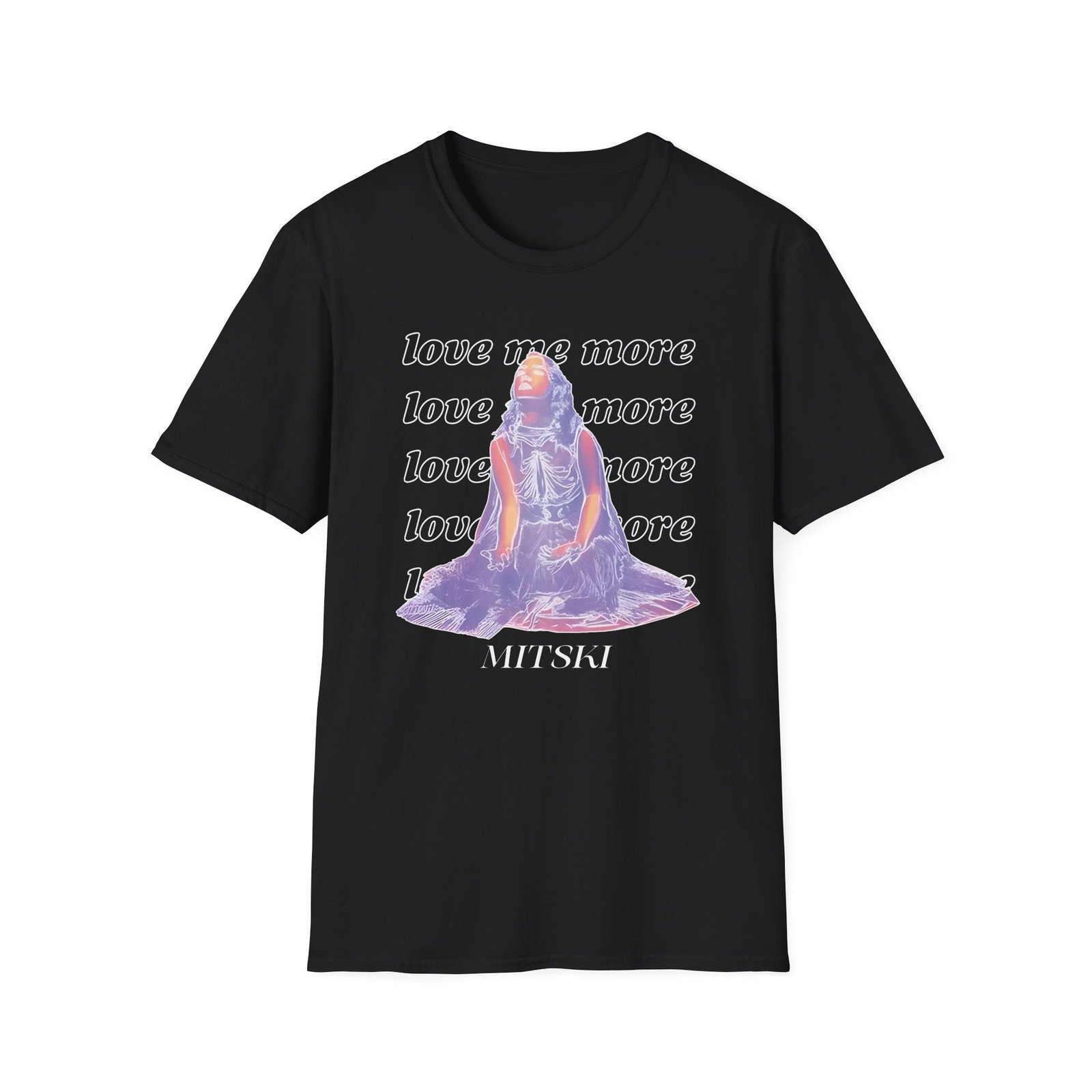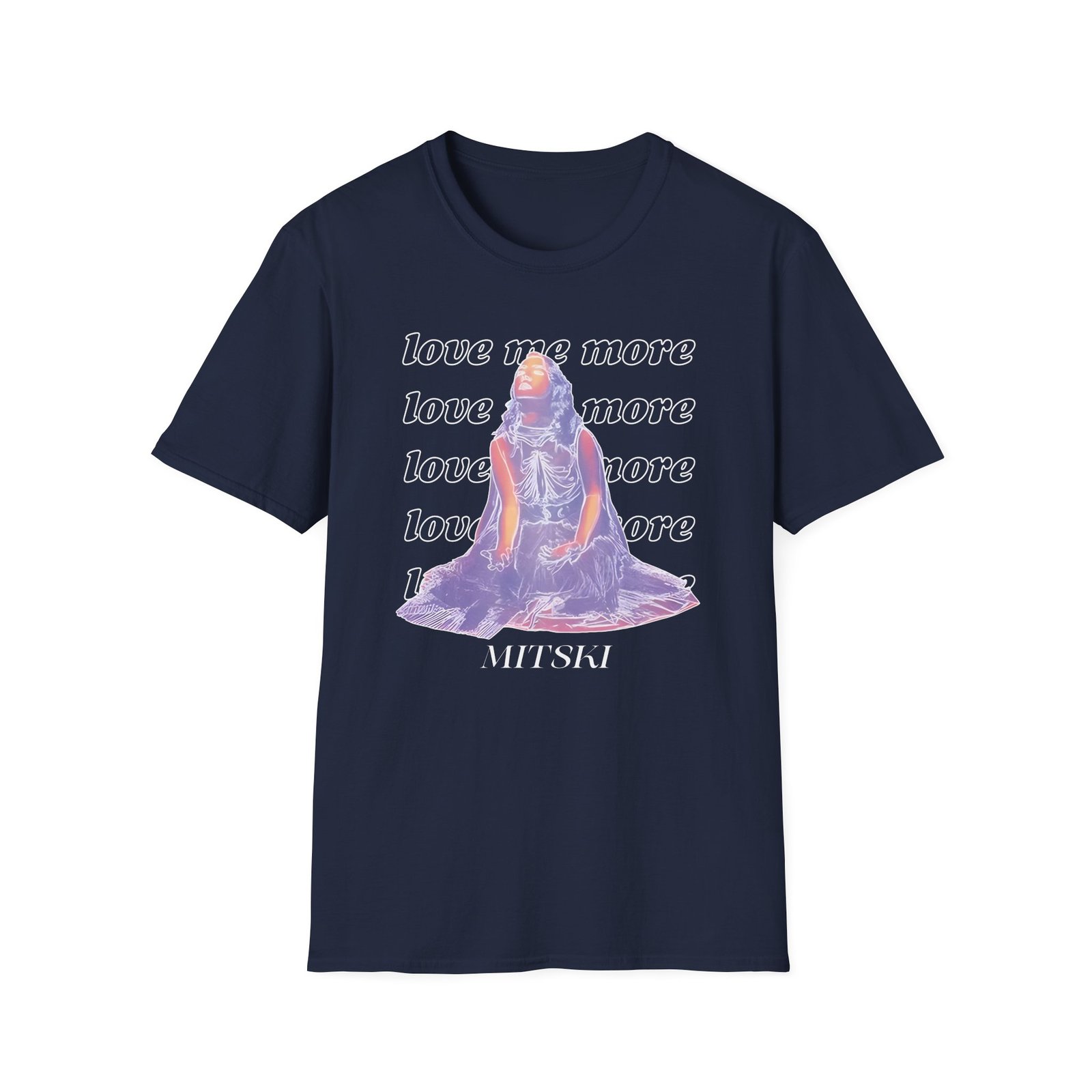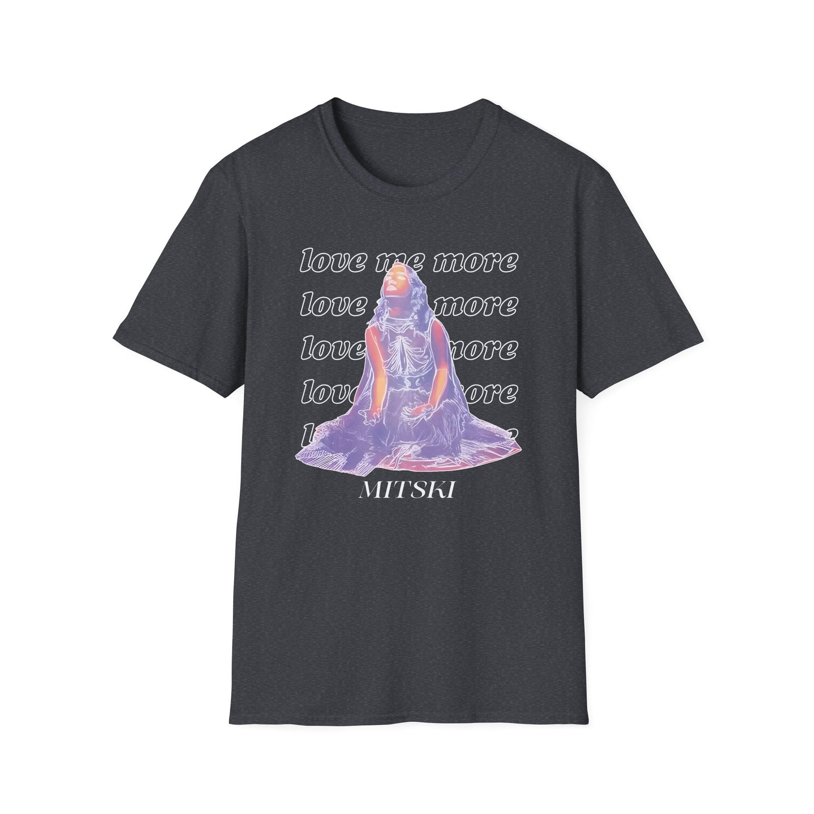 The Mitski Love Me More unisex soft-style t-shirt puts a new spin on casual comfort. Made from very soft materials, this tee is 100% cotton for solid colors. Heather colors and sports grey include polyester. The shoulders have twill tape for improved durability. There are no side seams. The collar is made with ribbed knitting to prevent curling damage.