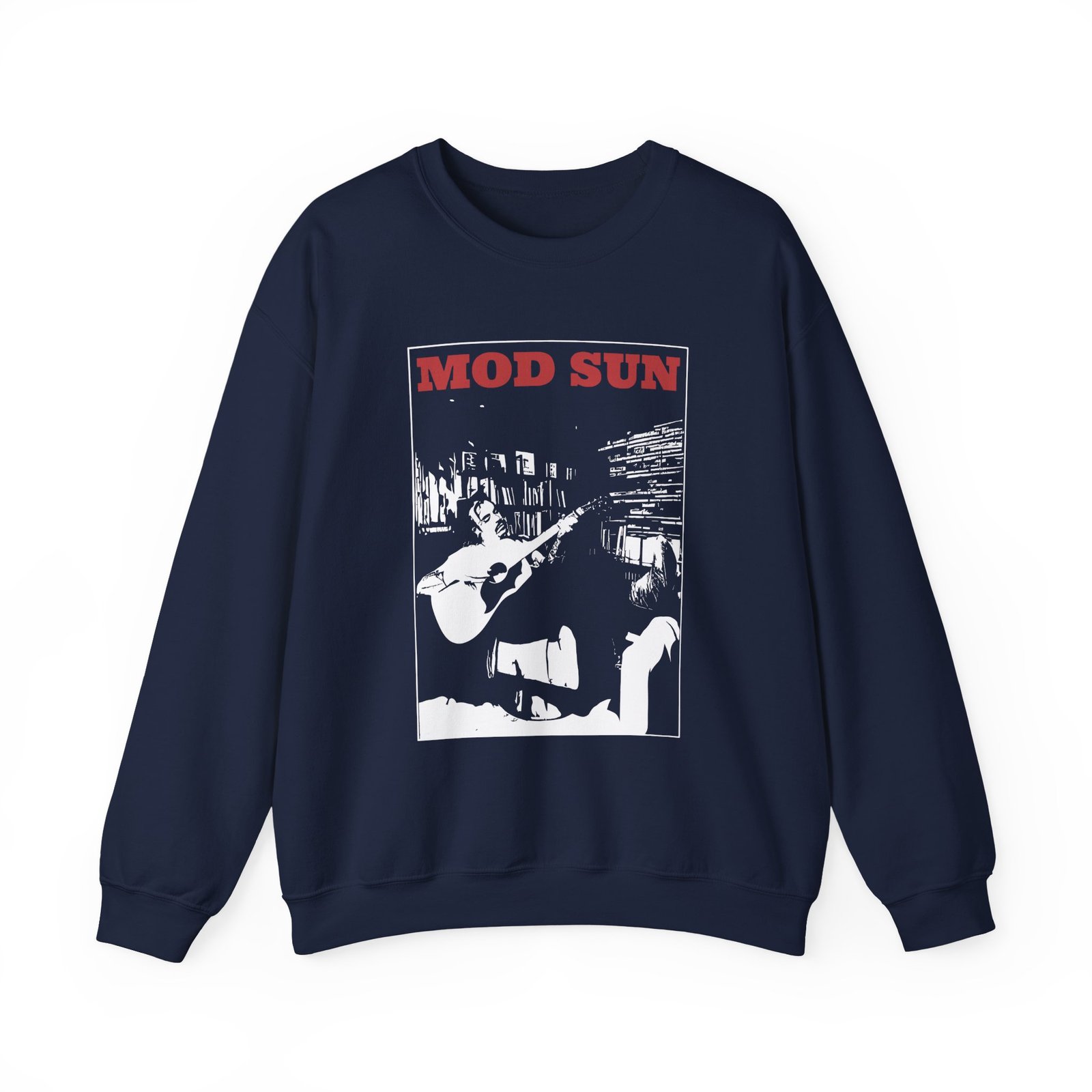 Ideal for any situation, a Mod Sun Studio Photo unisex heavy blend crewneck sweatshirt is pure comfort. These garments are made from polyester and cotton. This combination helps designs come out looking fresh and beautiful. The collar is ribbed knit, so it retains its shape even after washing. There are no itchy side seams on these sweaters.