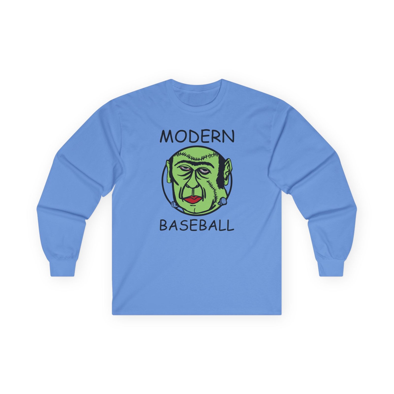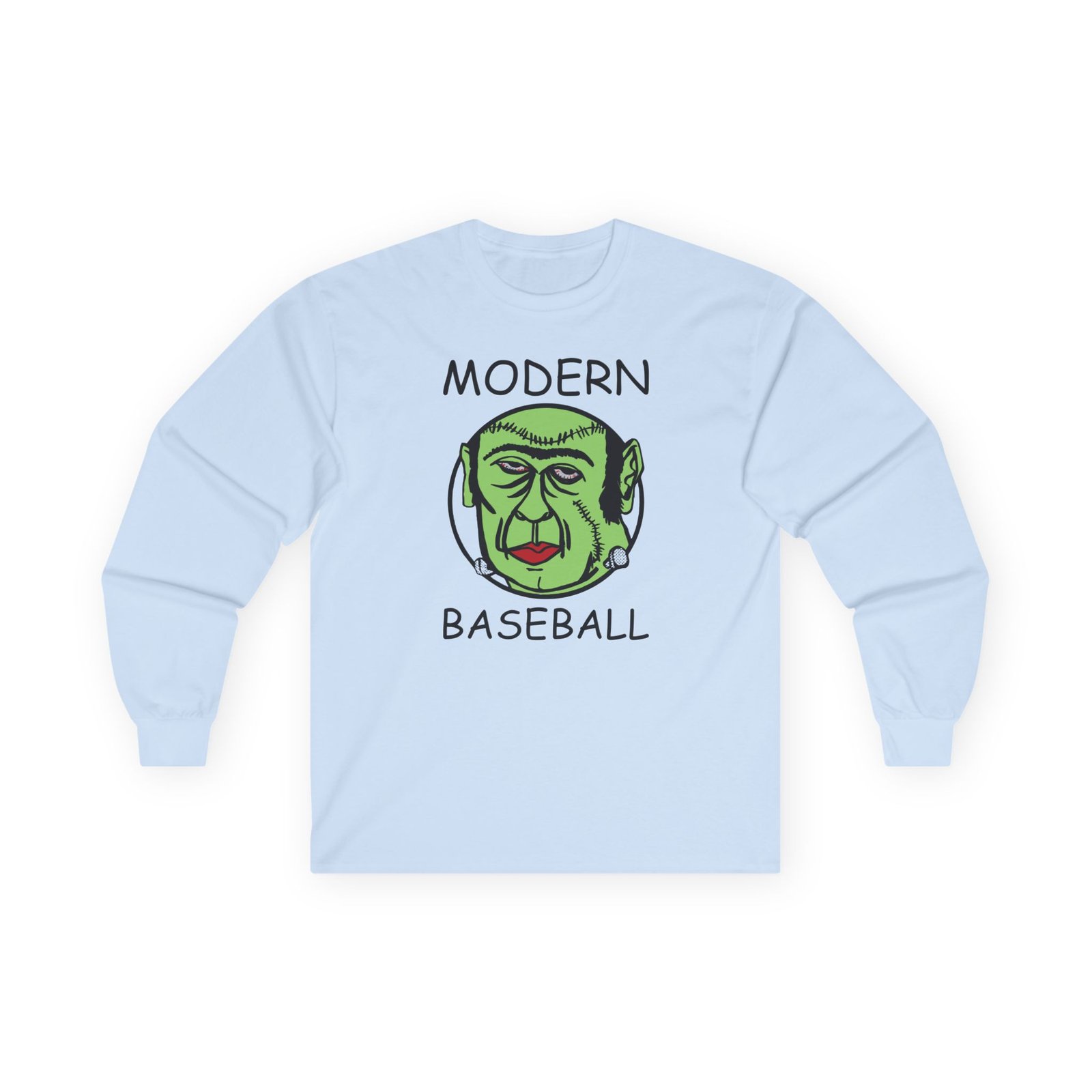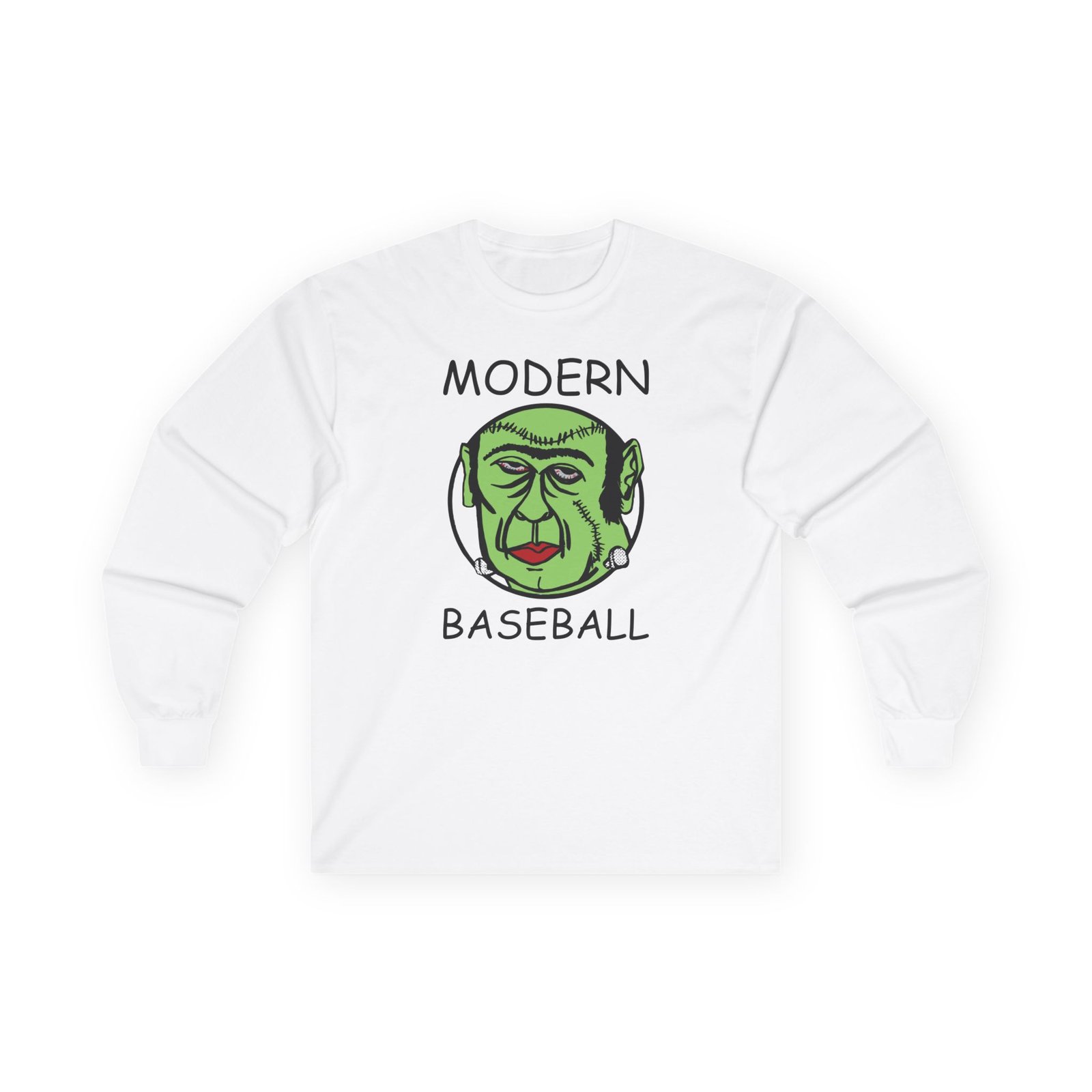 A bit more formal than a standard-issue t-shirt, the Modern Baseball Frankenstein ultra cotton long sleeve tee is a clear comfort winner. The sleeves also act as a nice frame. There are no side seams. The shoulders are taped for improved durability. This makes for a good fitting around the shoulders and neck. The cotton used for these shirts is environmentally friendly.