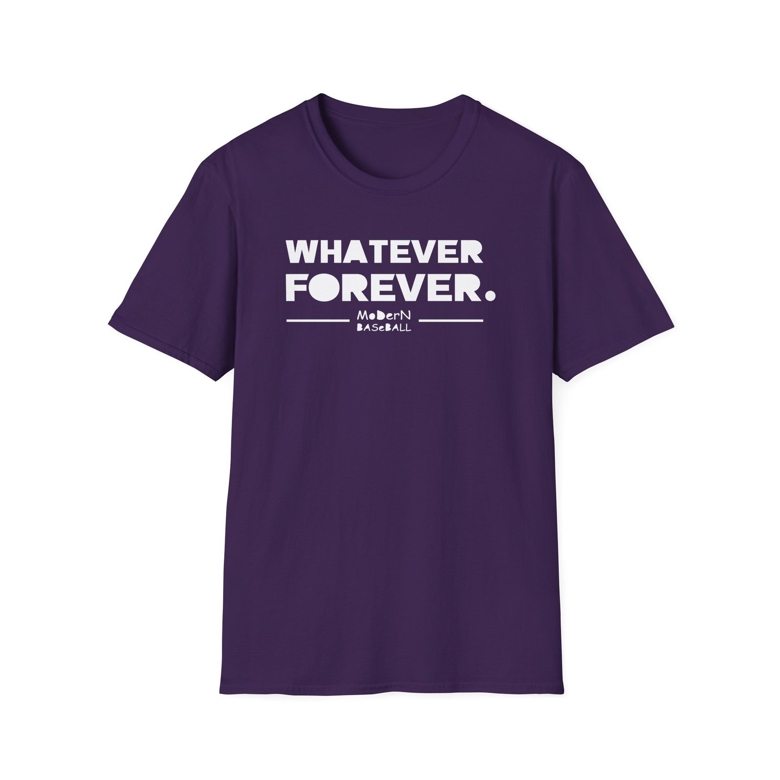 The Modern Baseball Whatever Forever unisex soft-style t-shirt puts a new spin on casual comfort. Made from very soft materials, this tee is 100% cotton for solid colors. Heather colors and sports grey include polyester. The shoulders have twill tape for improved durability. There are no side seams. The collar is made with ribbed knitting to prevent curling damage.