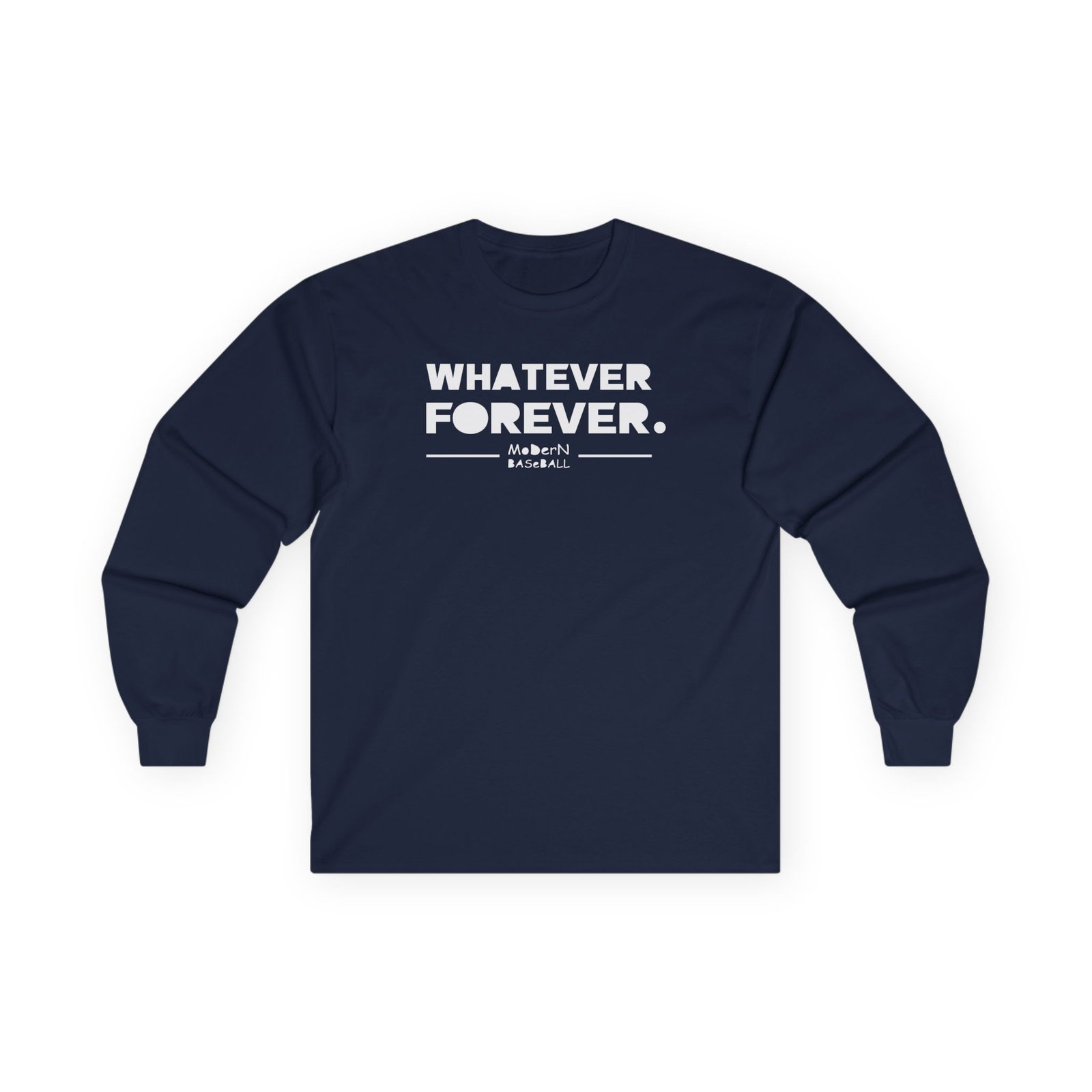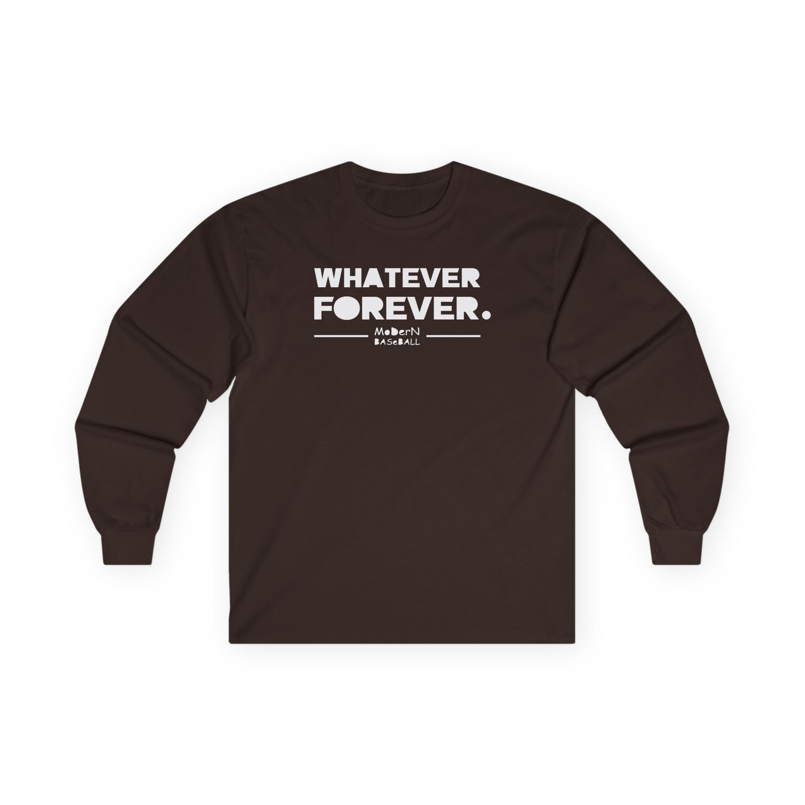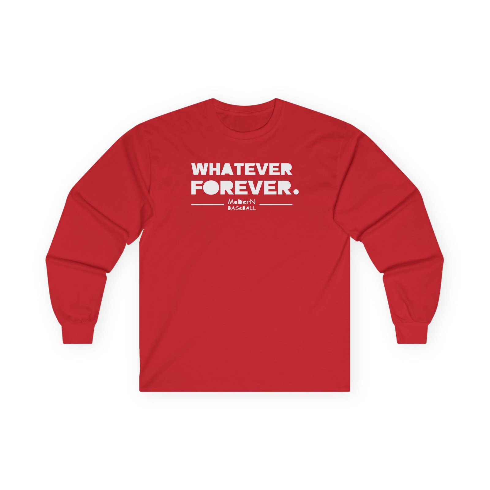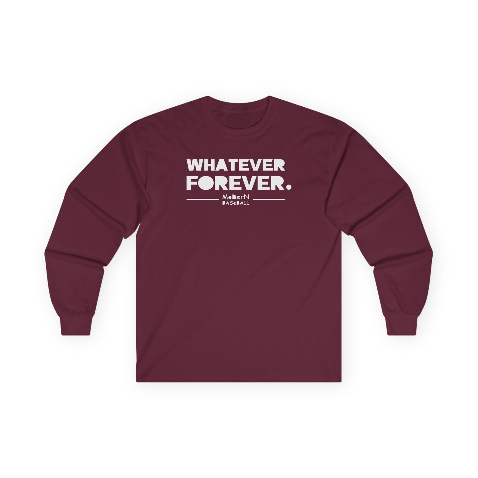 A bit more formal than a standard-issue t-shirt, the Modern Baseball Whatever Forever ultra cotton long sleeve tee is a clear comfort winner. The sleeves also act as a nice frame. There are no side seams. The shoulders are taped for improved durability. This makes for a good fitting around the shoulders and neck. The cotton used for these shirts is environmentally friendly.