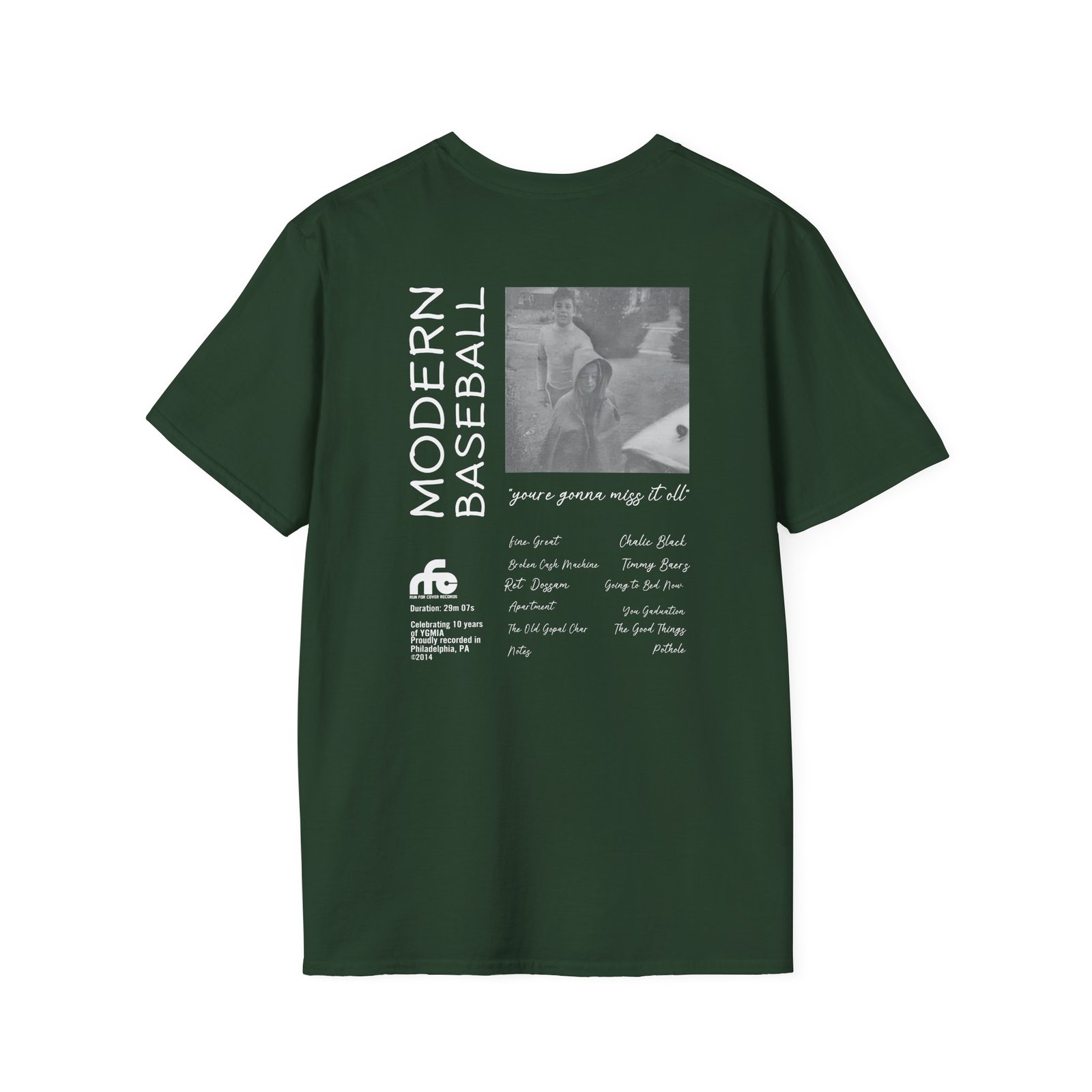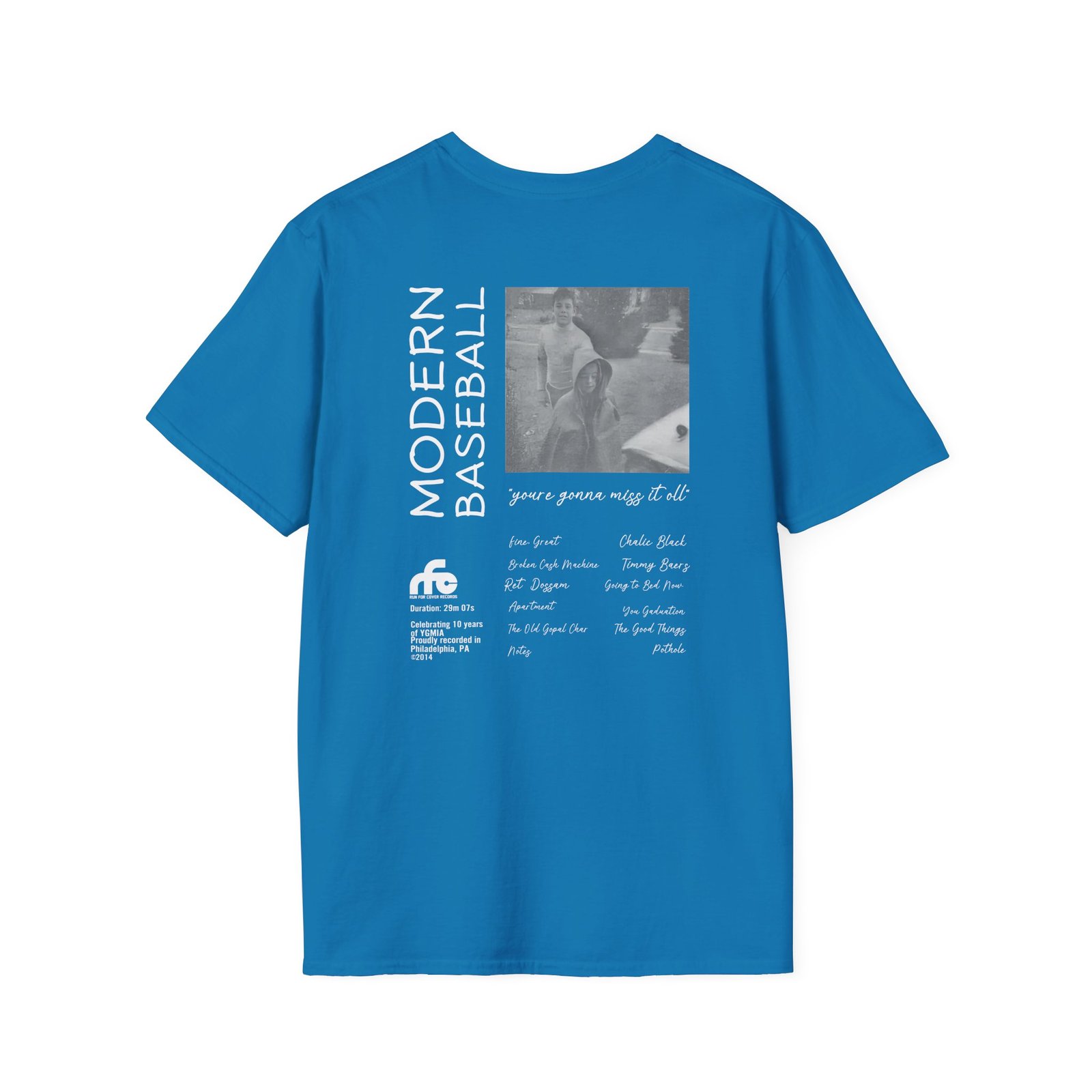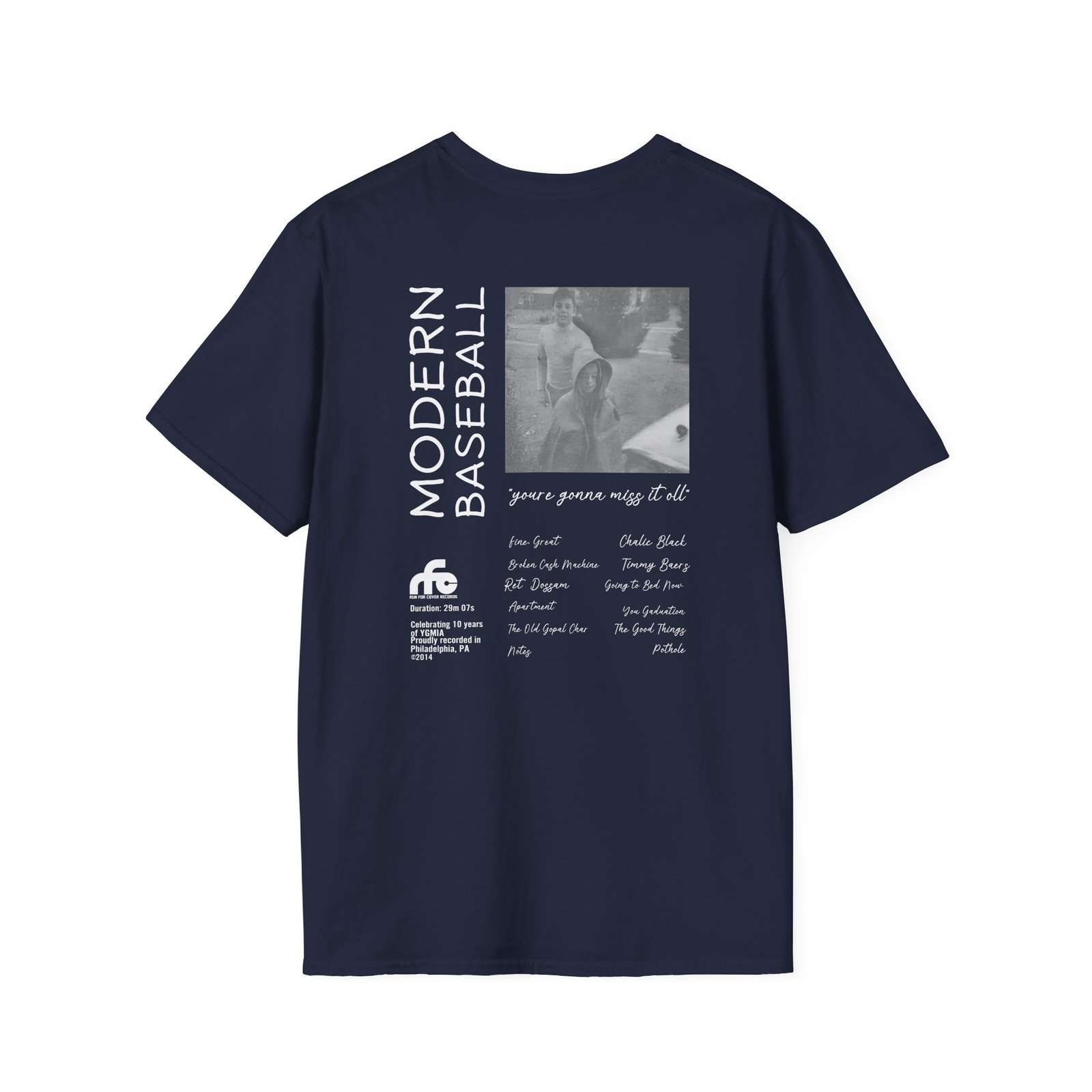 The Modern Baseball You're Gonna Miss It All unisex soft-style t-shirt puts a new spin on casual comfort. Made from very soft materials, this tee is 100% cotton for solid colors. Heather colors and sports grey include polyester. The shoulders have twill tape for improved durability. There are no side seams. The collar is made with ribbed knitting to prevent curling damage.