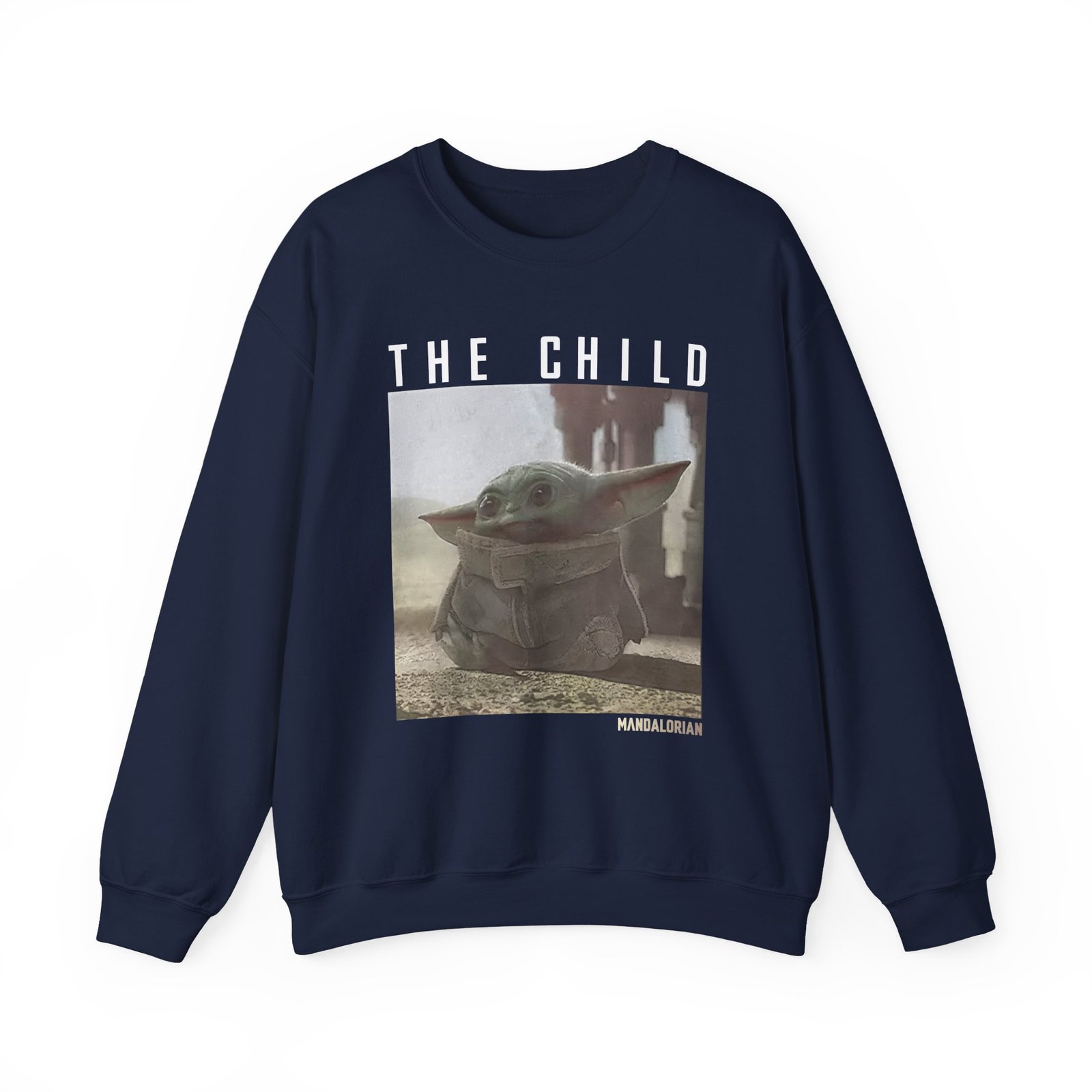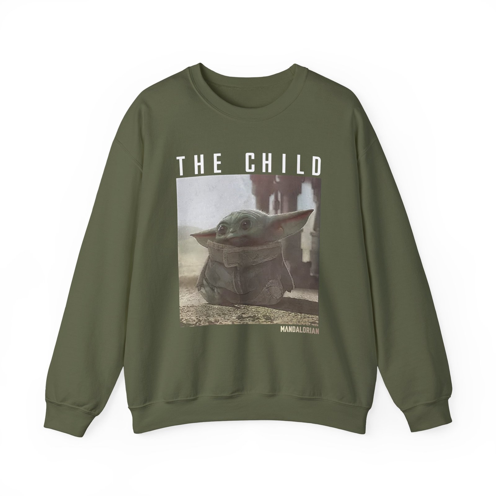 Ideal for any situation, a Moistcr1tikal The Child Mandalorian unisex heavy blend crewneck sweatshirt is pure comfort. These garments are made from polyester and cotton. This combination helps designs come out looking fresh and beautiful. The collar is ribbed knit, so it retains its shape even after washing. There are no itchy side seams on these sweaters.