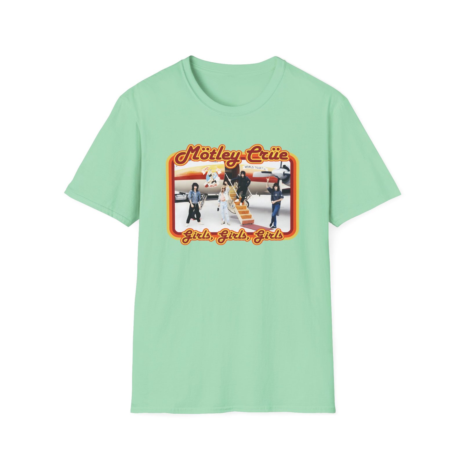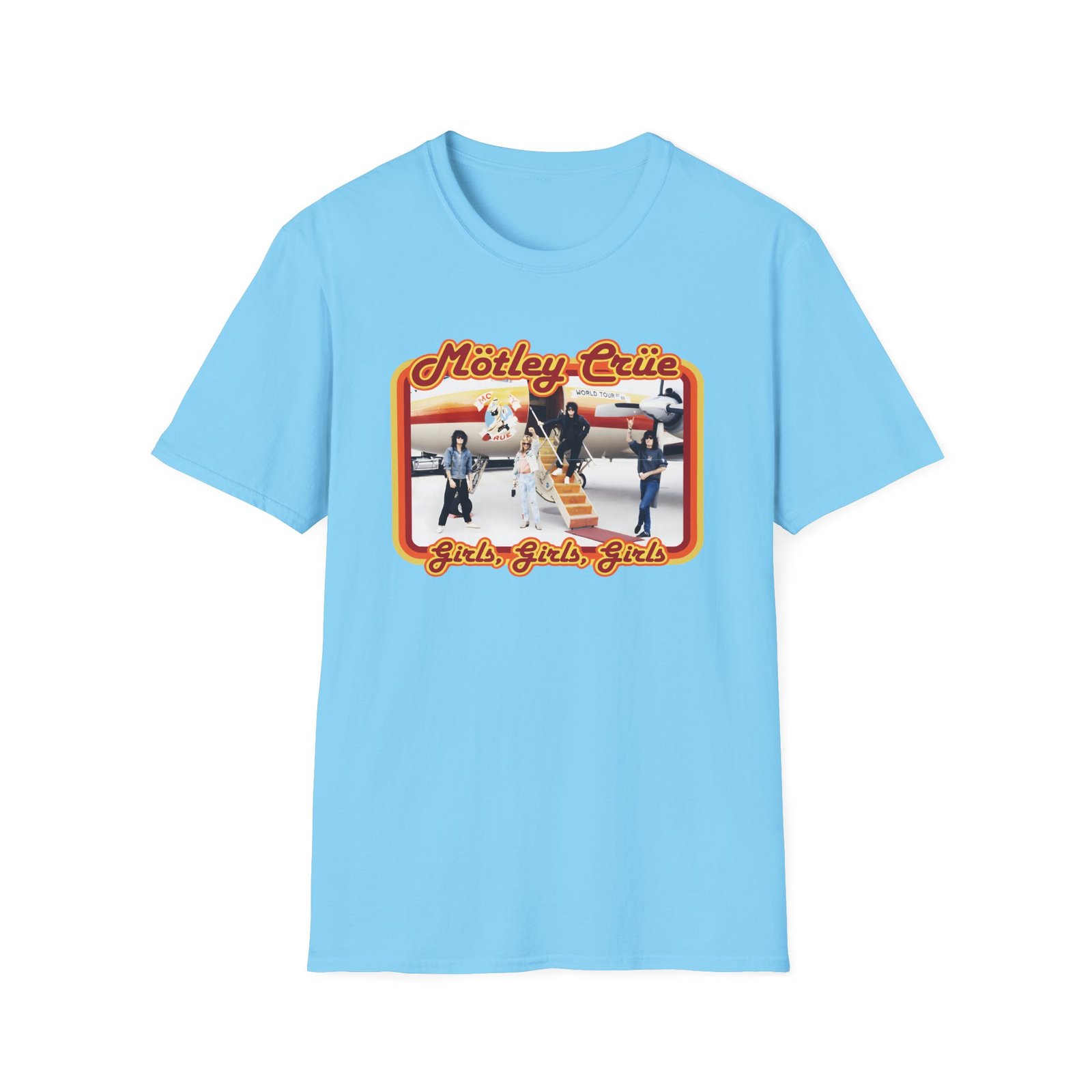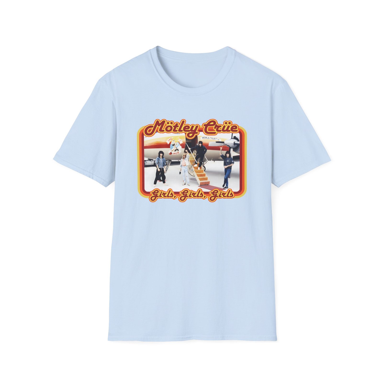 The Motley Crue Jet unisex soft-style t-shirt puts a new spin on casual comfort. Made from very soft materials, this tee is 100% cotton for solid colors. Heather colors and sports grey include polyester. The shoulders have twill tape for improved durability. There are no side seams. The collar is made with ribbed knitting to prevent curling damage.