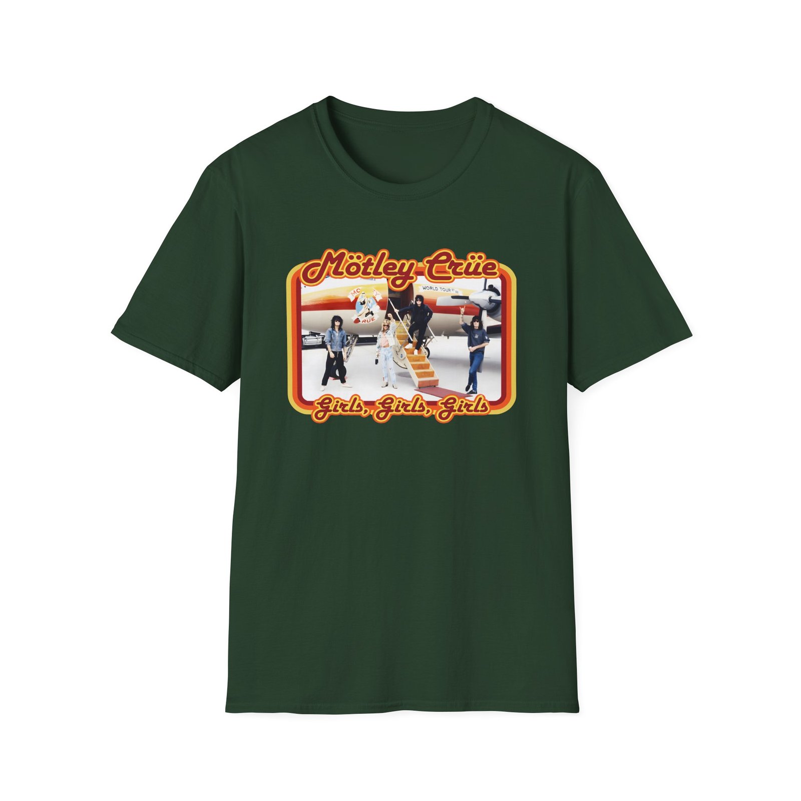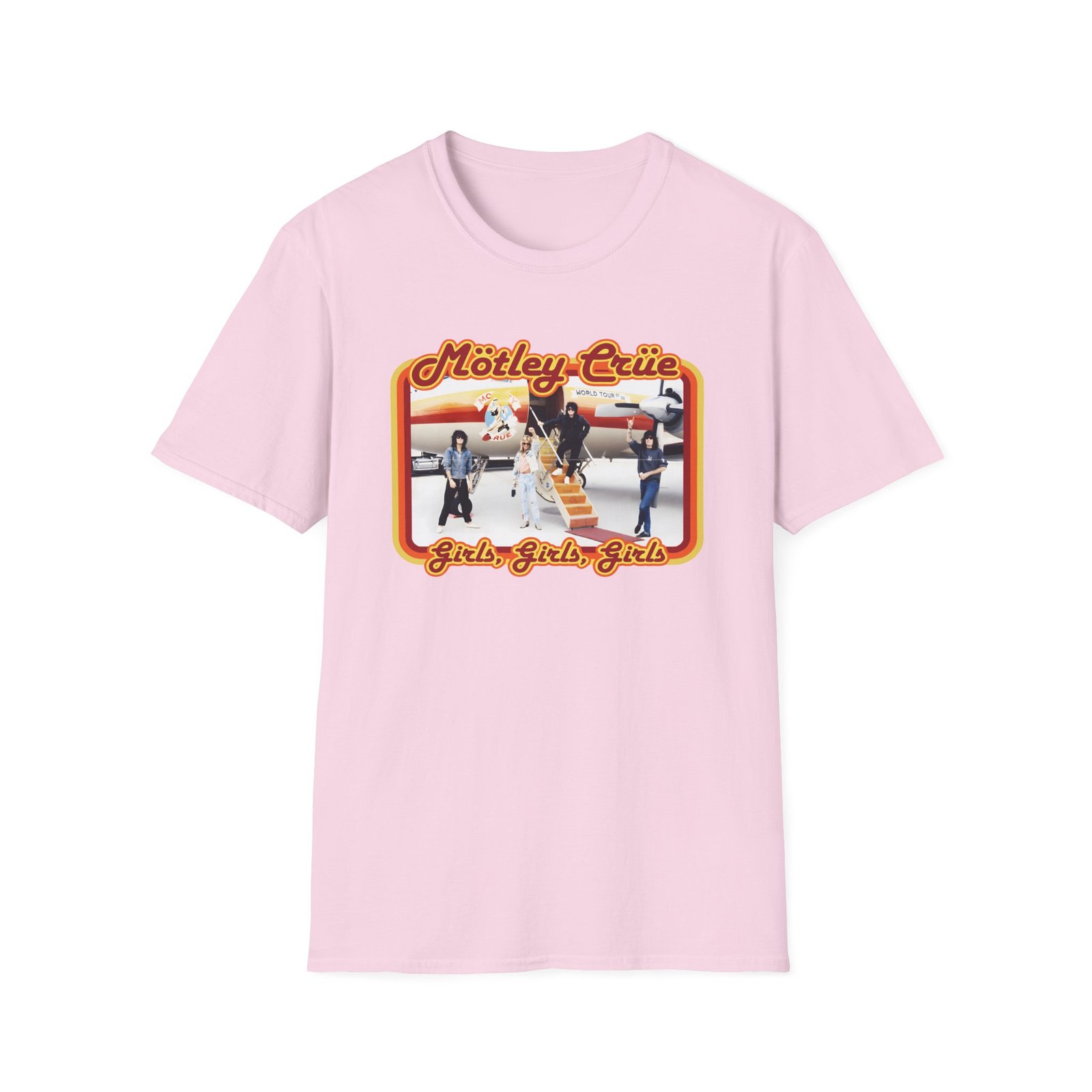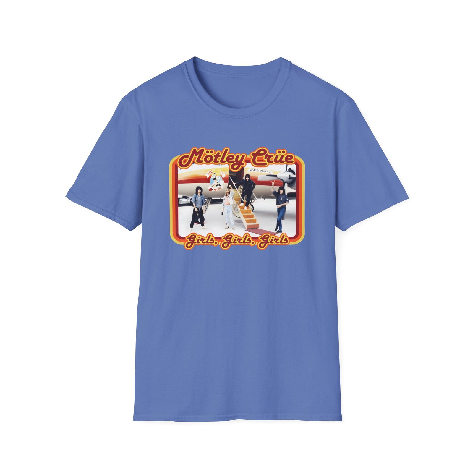 The Motley Crue Jet unisex soft-style t-shirt puts a new spin on casual comfort. Made from very soft materials, this tee is 100% cotton for solid colors. Heather colors and sports grey include polyester. The shoulders have twill tape for improved durability. There are no side seams. The collar is made with ribbed knitting to prevent curling damage.