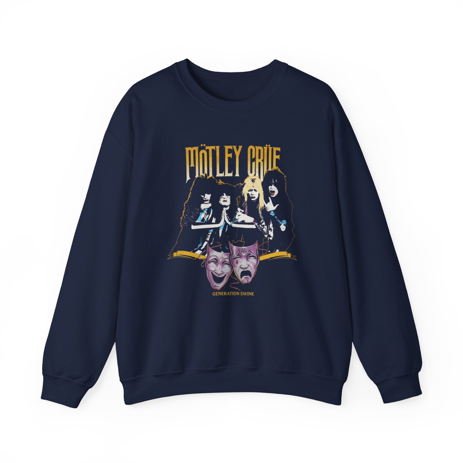 Ideal for any situation, a Motley Crue Theatre unisex heavy blend crewneck sweatshirt is pure comfort. These garments are made from polyester and cotton. This combination helps designs come out looking fresh and beautiful. The collar is ribbed knit, so it retains its shape even after washing. There are no itchy side seams on these sweaters.