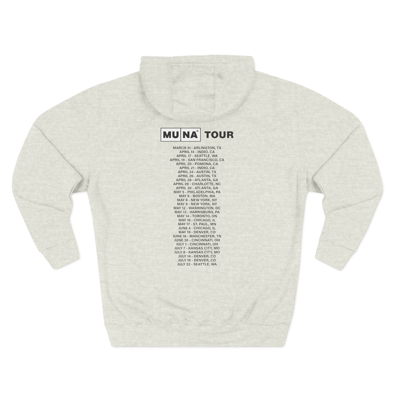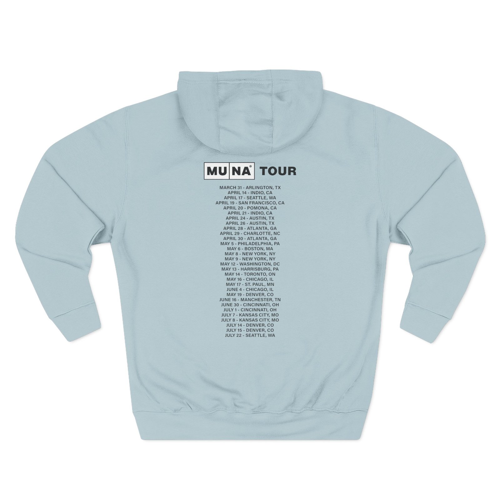 Beat the cold with this Muna Life's So Fun Tour 2023 premium pullover hoodie that’s just the right layer of warm and cozy. Made with three-panel fleece lining, this pullover is double stitched for durability and roomy. Pick one in your favorite color to match your style.