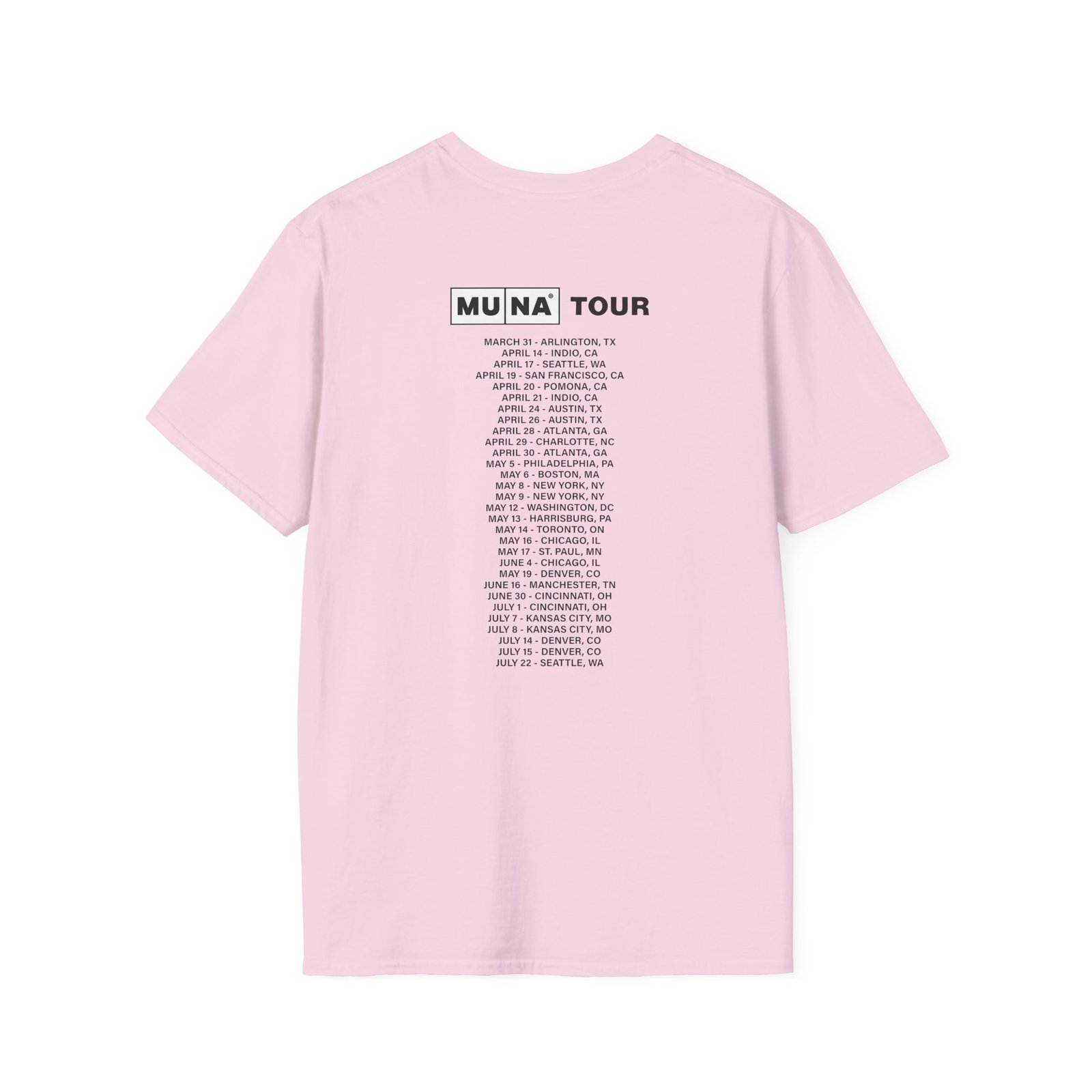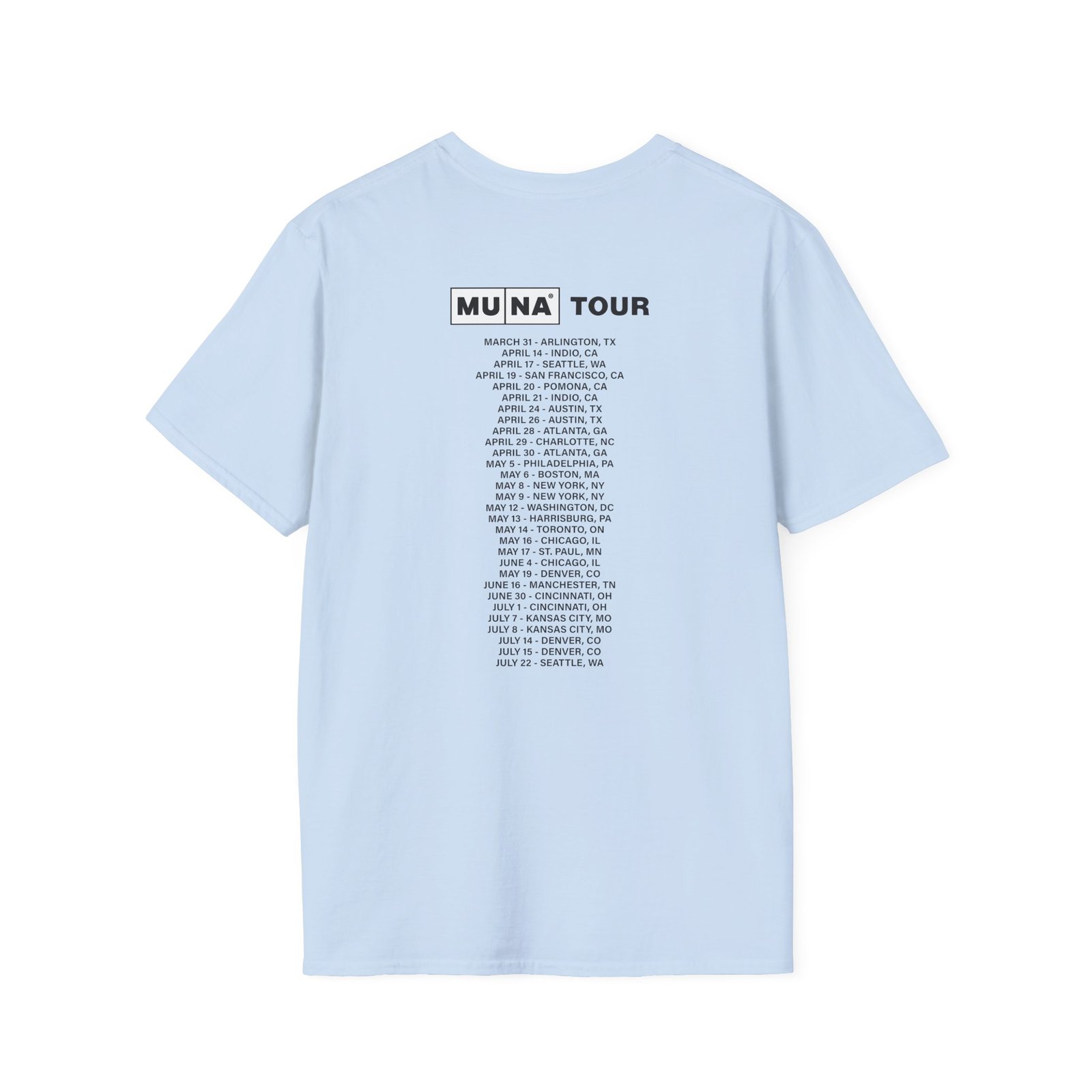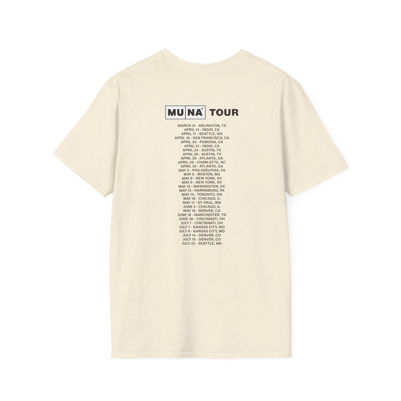 The Muna Life's So Fun Tour 2023 unisex soft-style t-shirt puts a new spin on casual comfort. Made from very soft materials, this tee is 100% cotton for solid colors. Heather colors and sports grey include polyester. The shoulders have twill tape for improved durability. There are no side seams. The collar is made with ribbed knitting to prevent curling damage.