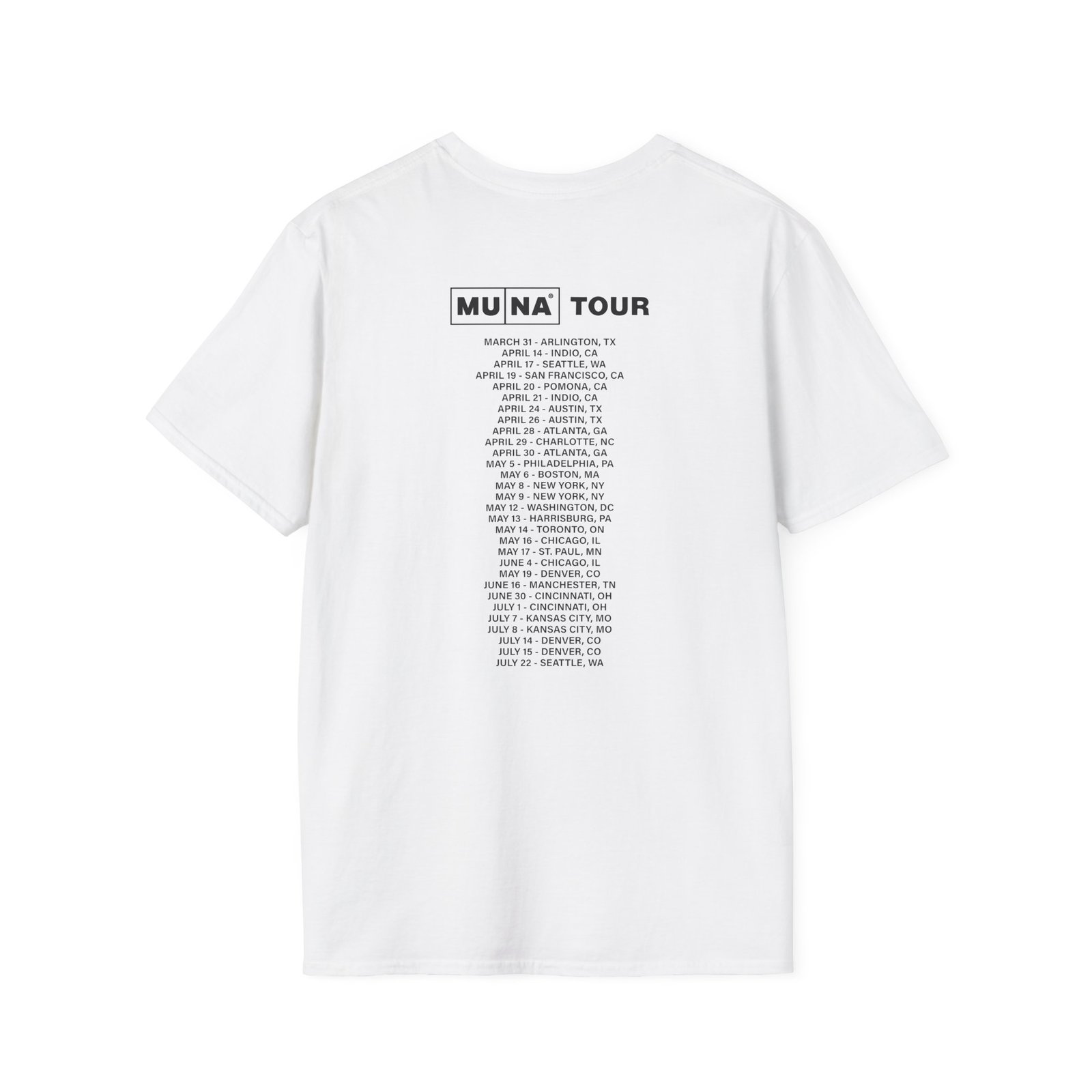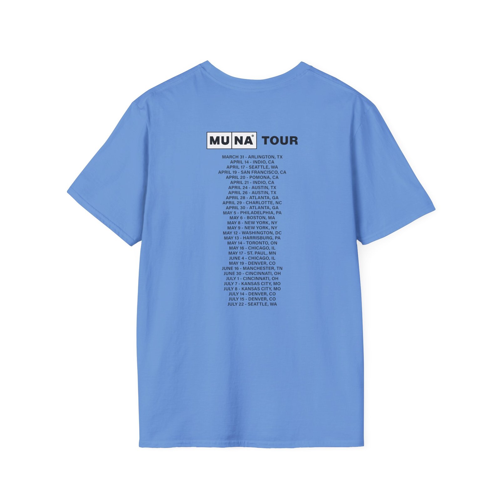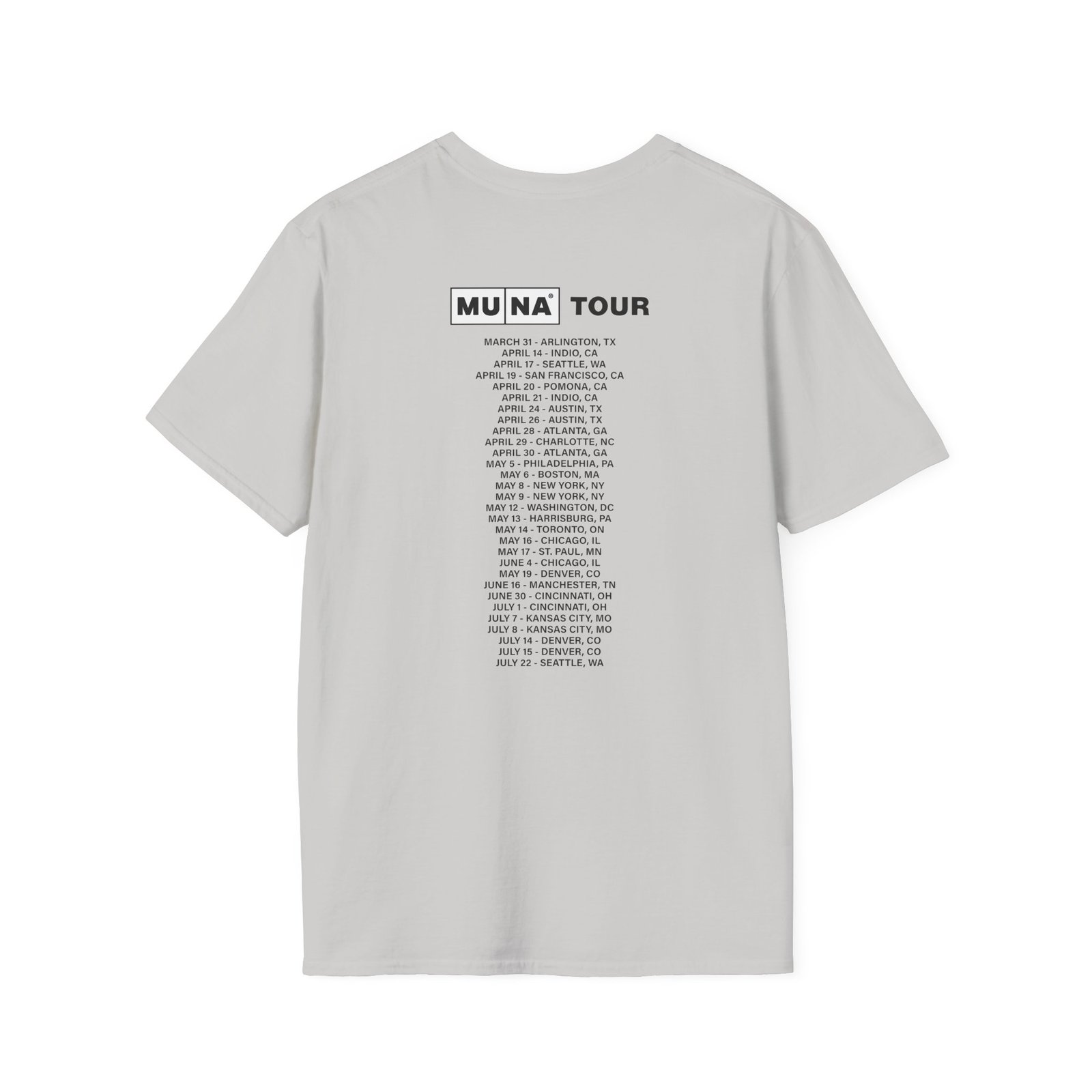 The Muna Life's So Fun Tour 2023 unisex soft-style t-shirt puts a new spin on casual comfort. Made from very soft materials, this tee is 100% cotton for solid colors. Heather colors and sports grey include polyester. The shoulders have twill tape for improved durability. There are no side seams. The collar is made with ribbed knitting to prevent curling damage.