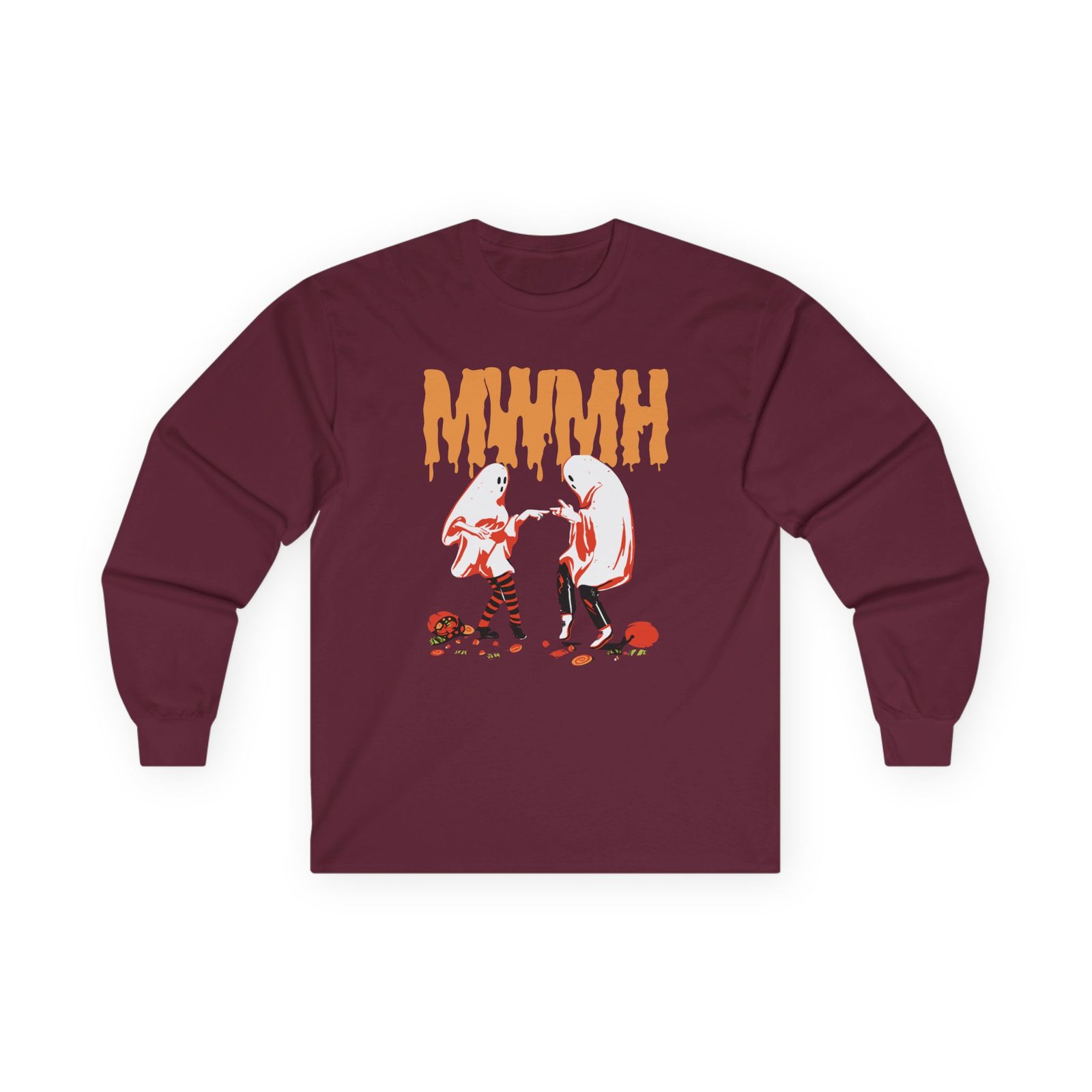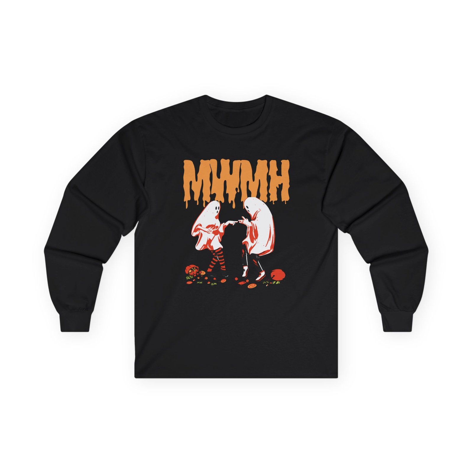 A bit more formal than a standard-issue t-shirt, the Murder With My Husband Spooky Dance ultra cotton long sleeve tee is a clear comfort winner. The sleeves also act as a nice frame. There are no side seams. The shoulders are taped for improved durability. This makes for a good fitting around the shoulders and neck. The cotton used for these shirts is environmentally friendly.