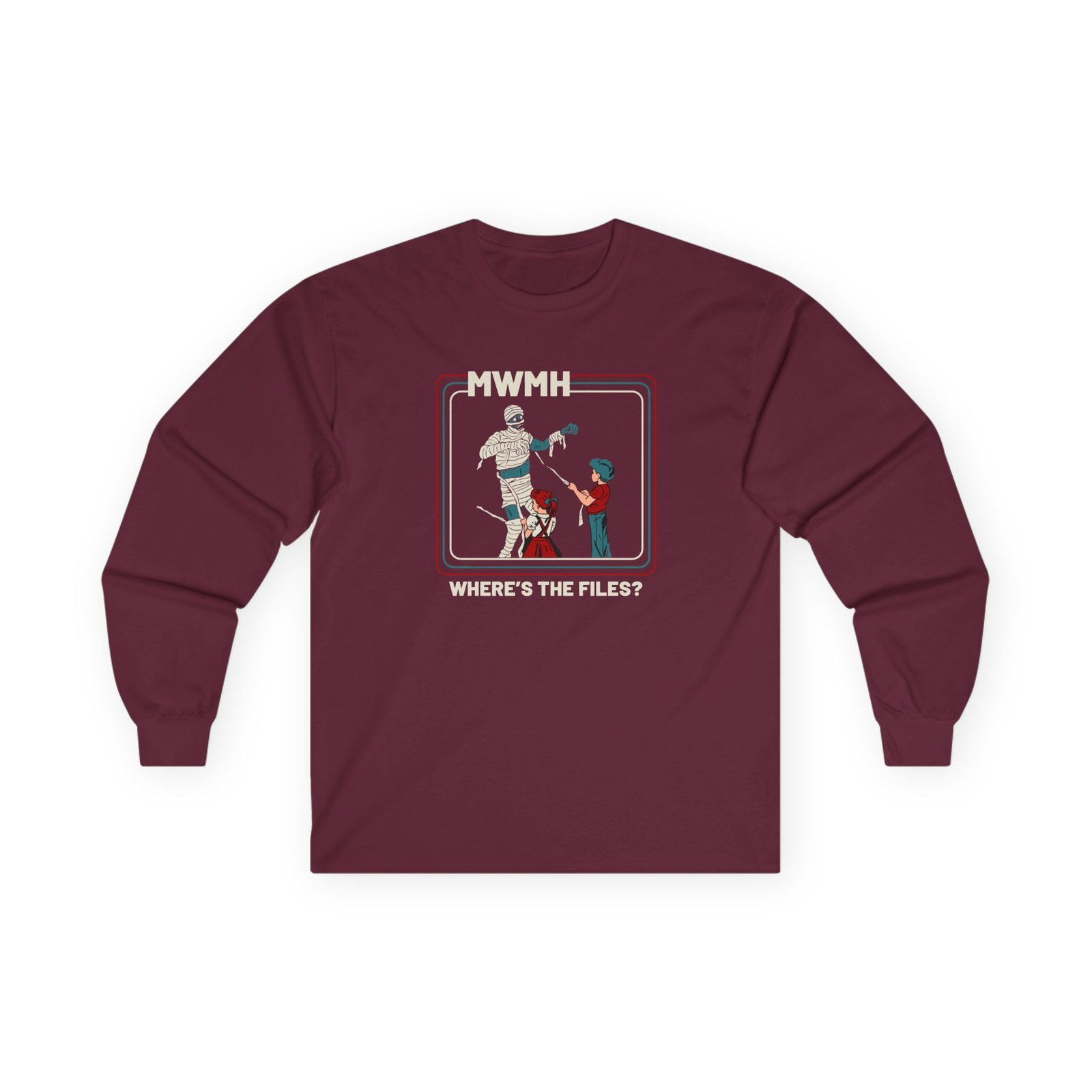 A bit more formal than a standard-issue t-shirt, the Murder With My Husband Where's the Files ultra cotton long sleeve tee is a clear comfort winner. The sleeves also act as a nice frame. There are no side seams. The shoulders are taped for improved durability. This makes for a good fitting around the shoulders and neck. The cotton used for these shirts is environmentally friendly.
