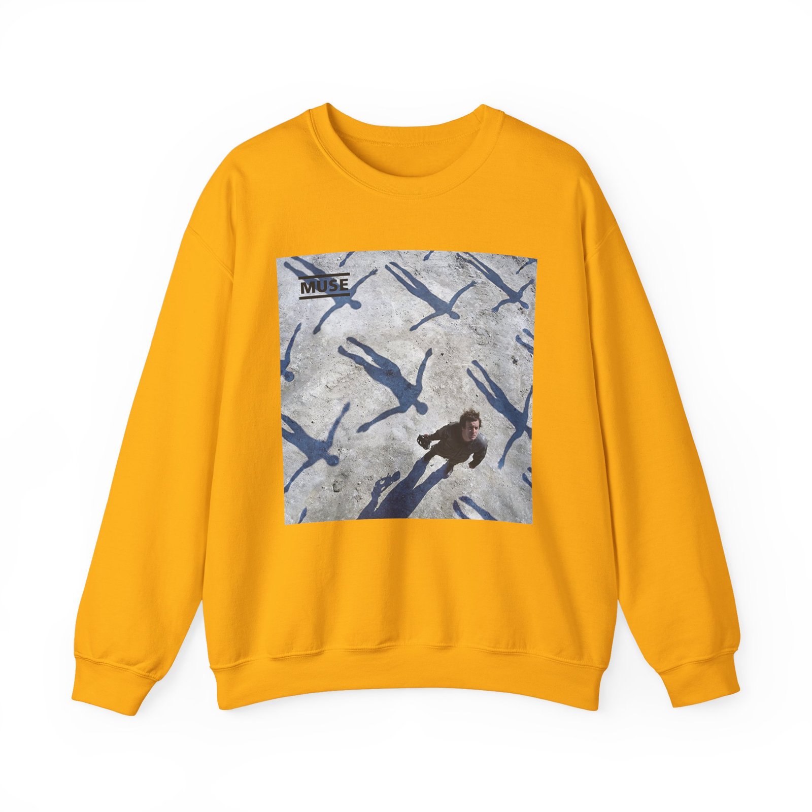Ideal for any situation, a Muse Absolution unisex heavy blend crewneck sweatshirt is pure comfort. These garments are made from polyester and cotton. This combination helps designs come out looking fresh and beautiful. The collar is ribbed knit, so it retains its shape even after washing. There are no itchy side seams on these sweaters.