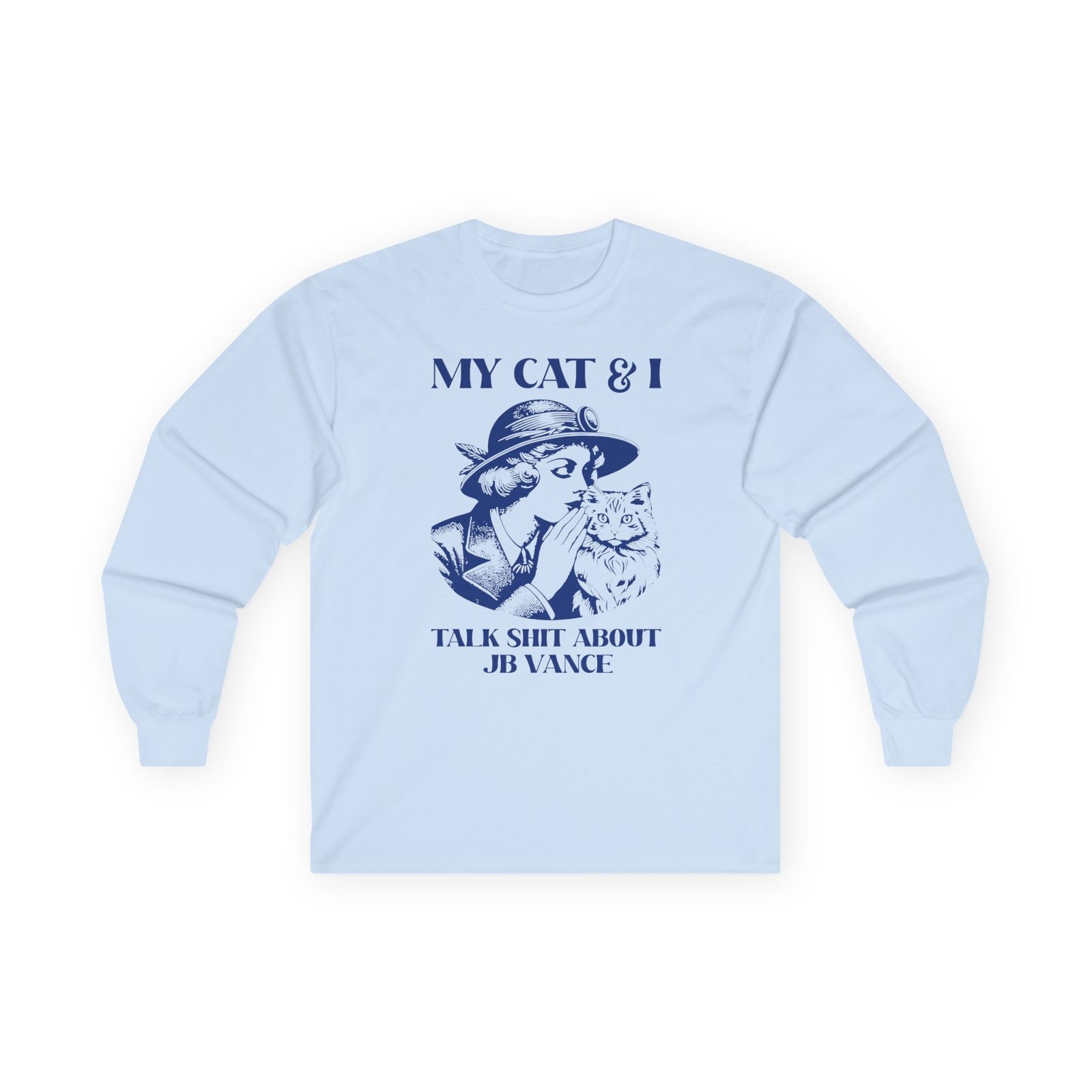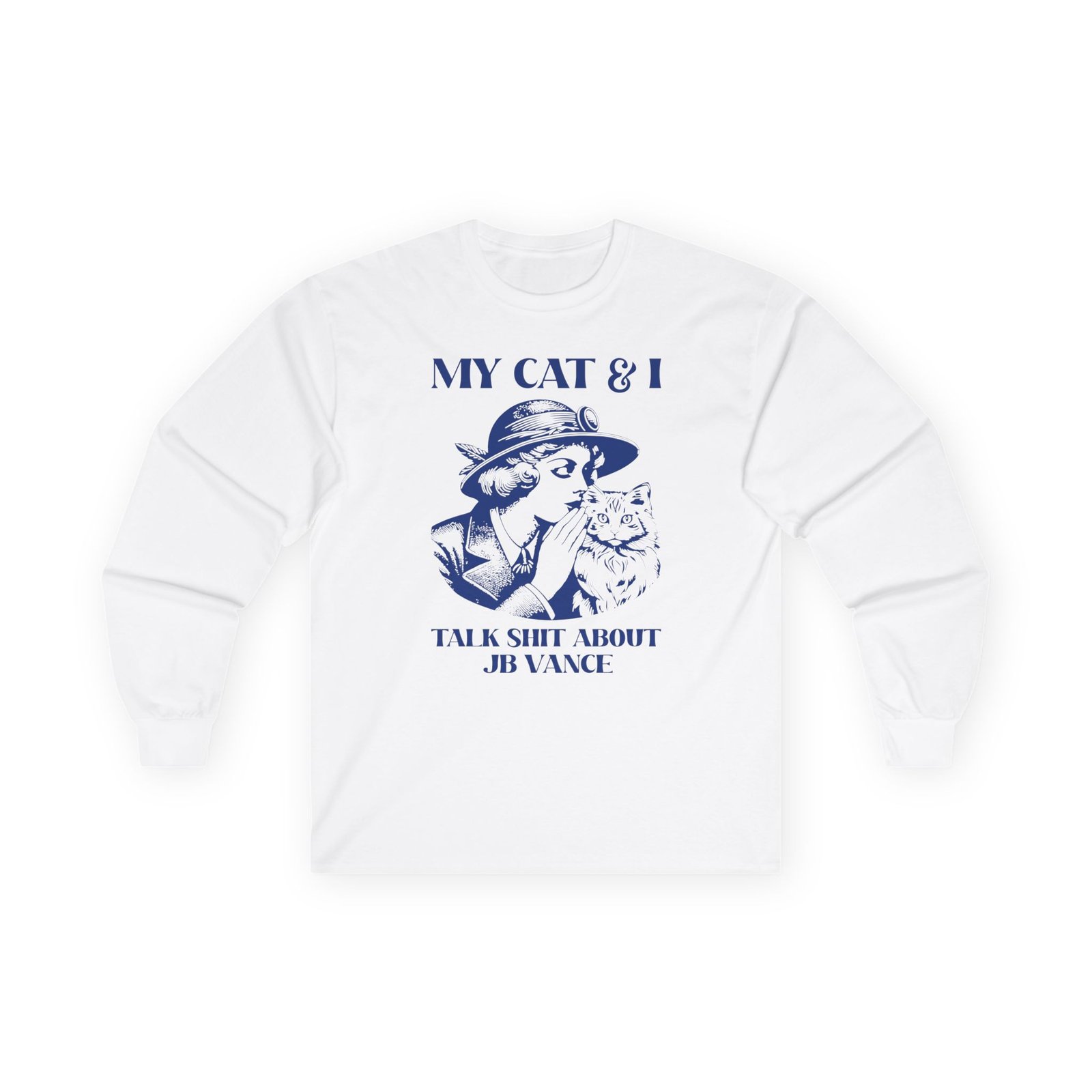 A bit more formal than a standard-issue t-shirt, the My Cat and I Talk Shit About Jd Vance ultra cotton long sleeve tee is a clear comfort winner. The sleeves also act as a nice frame. There are no side seams. The shoulders are taped for improved durability. This makes for a good fitting around the shoulders and neck. The cotton used for these shirts is environmentally friendly.