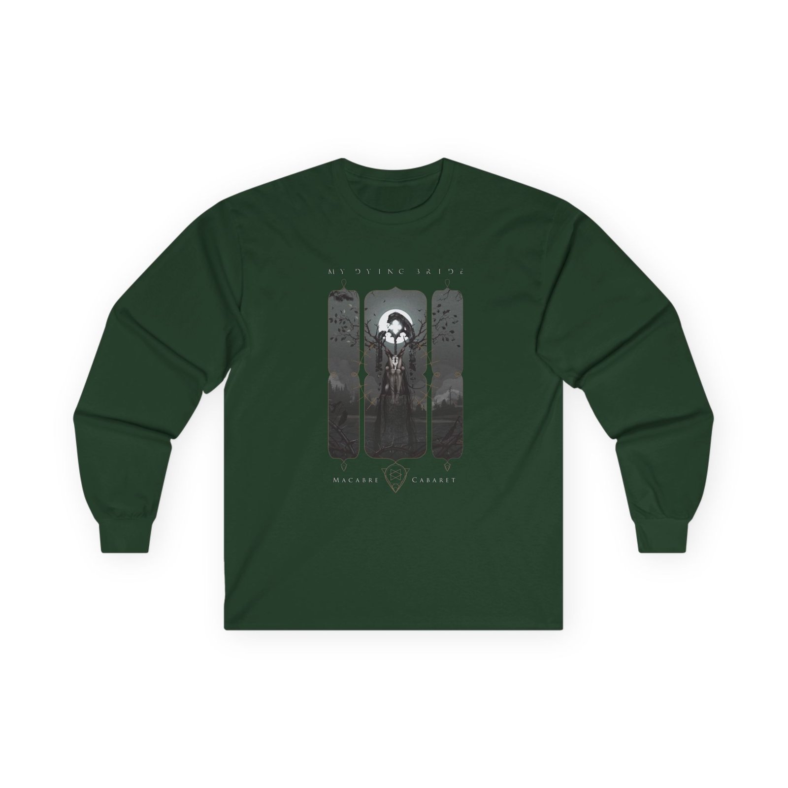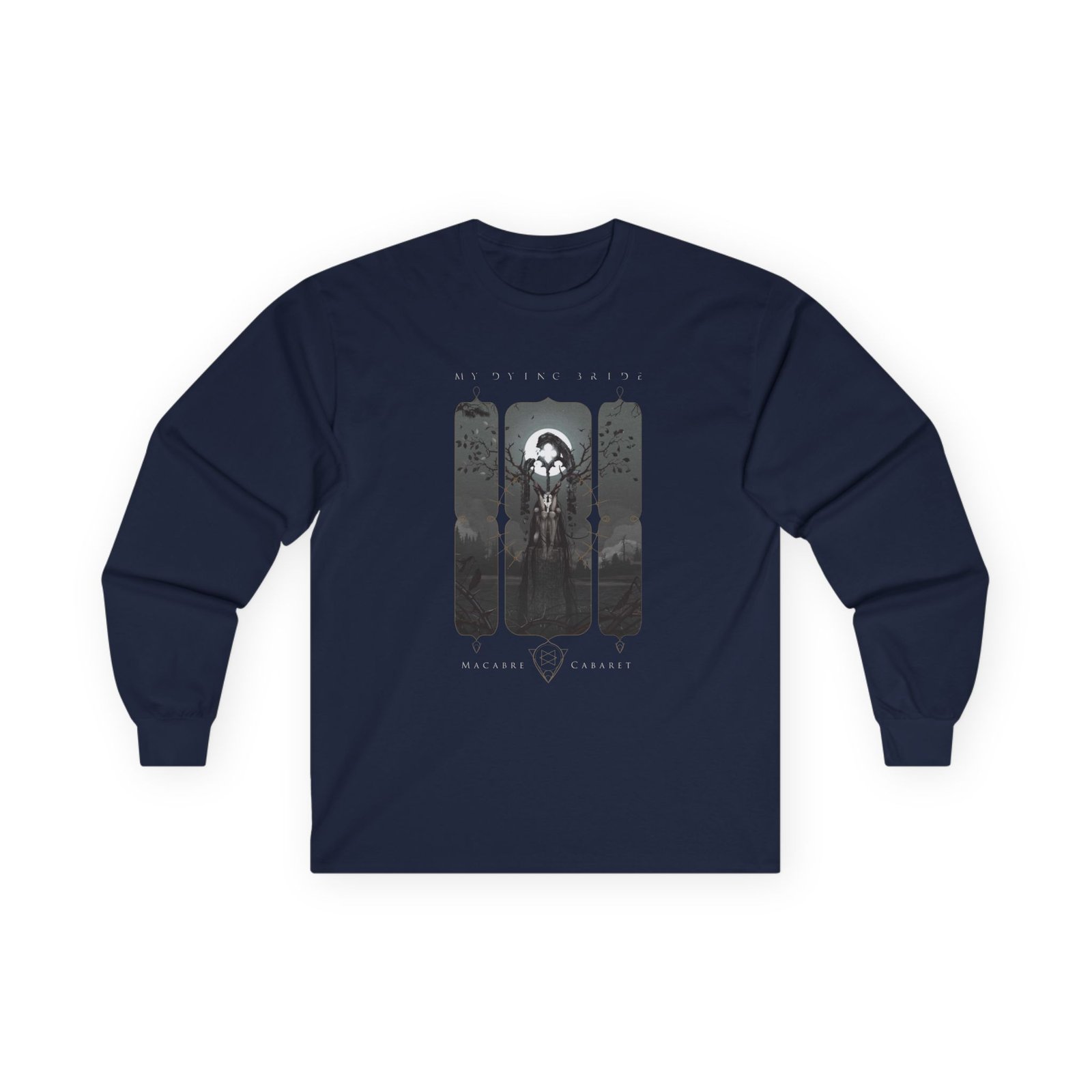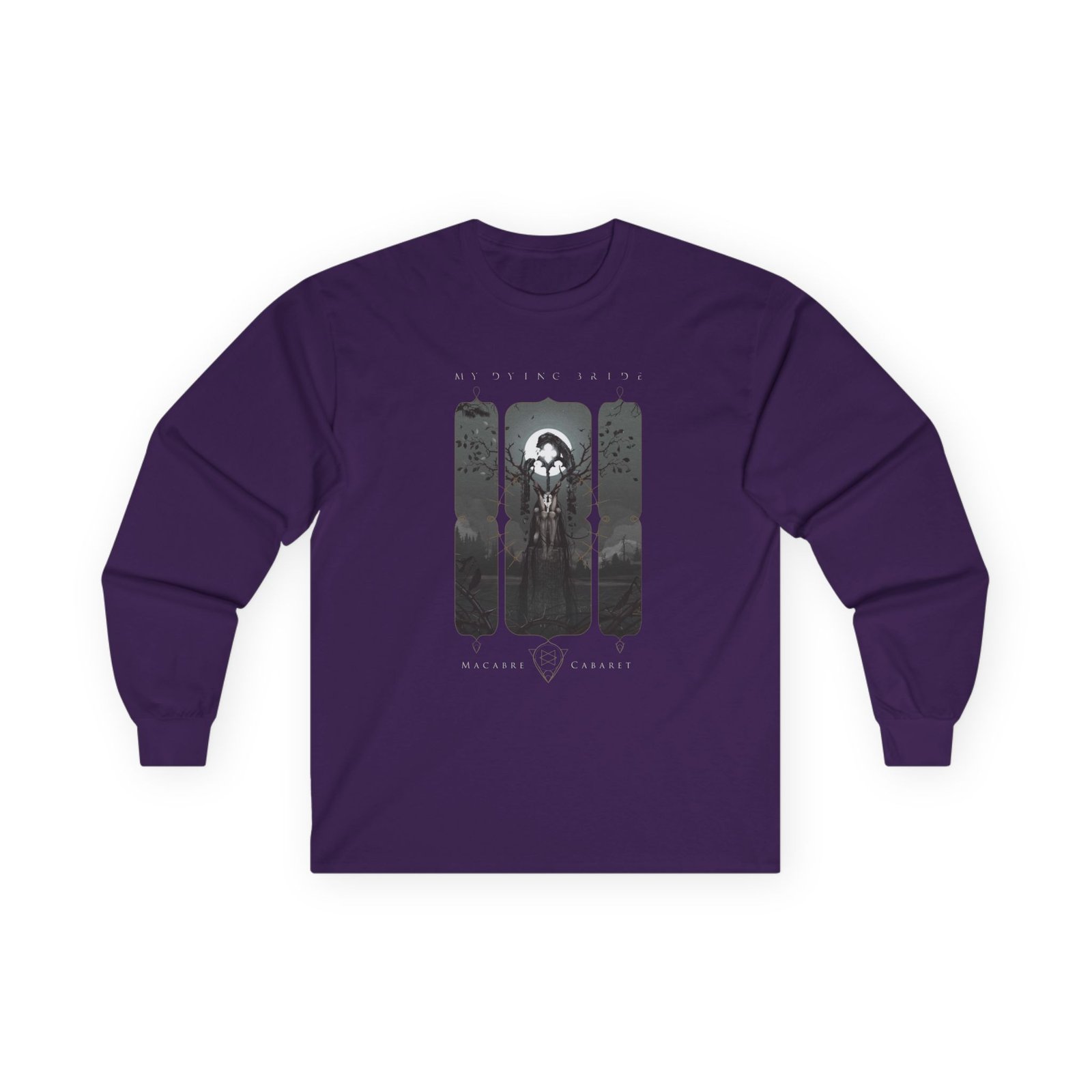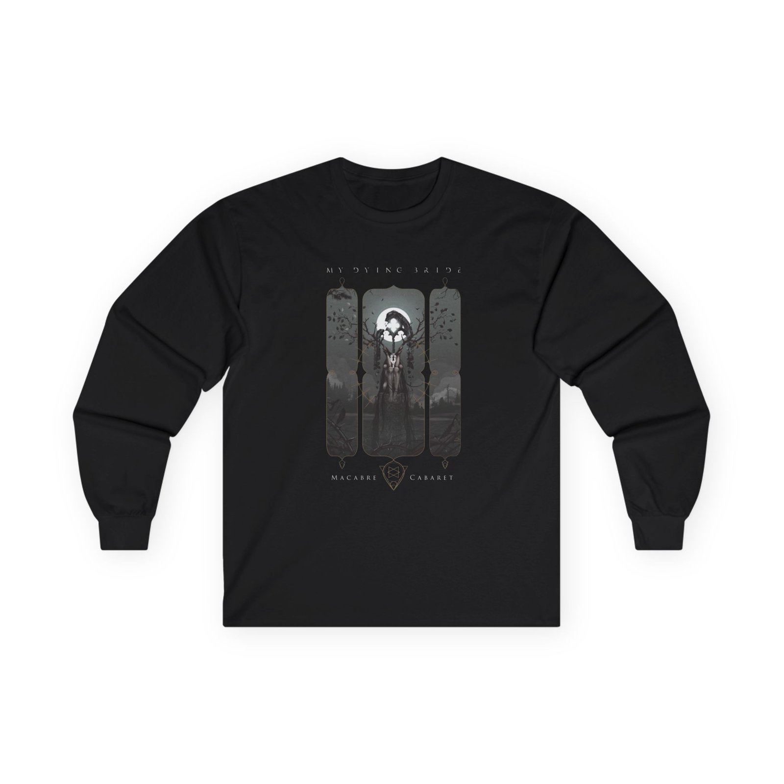 A bit more formal than a standard-issue t-shirt, the My Dying Bride Macabre Cabaret ultra cotton long sleeve tee is a clear comfort winner. The sleeves also act as a nice frame. There are no side seams. The shoulders are taped for improved durability. This makes for a good fitting around the shoulders and neck. The cotton used for these shirts is environmentally friendly.