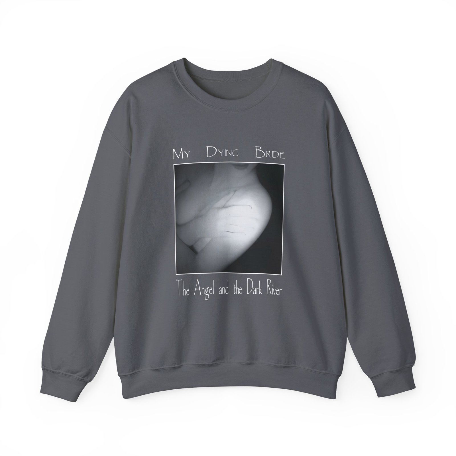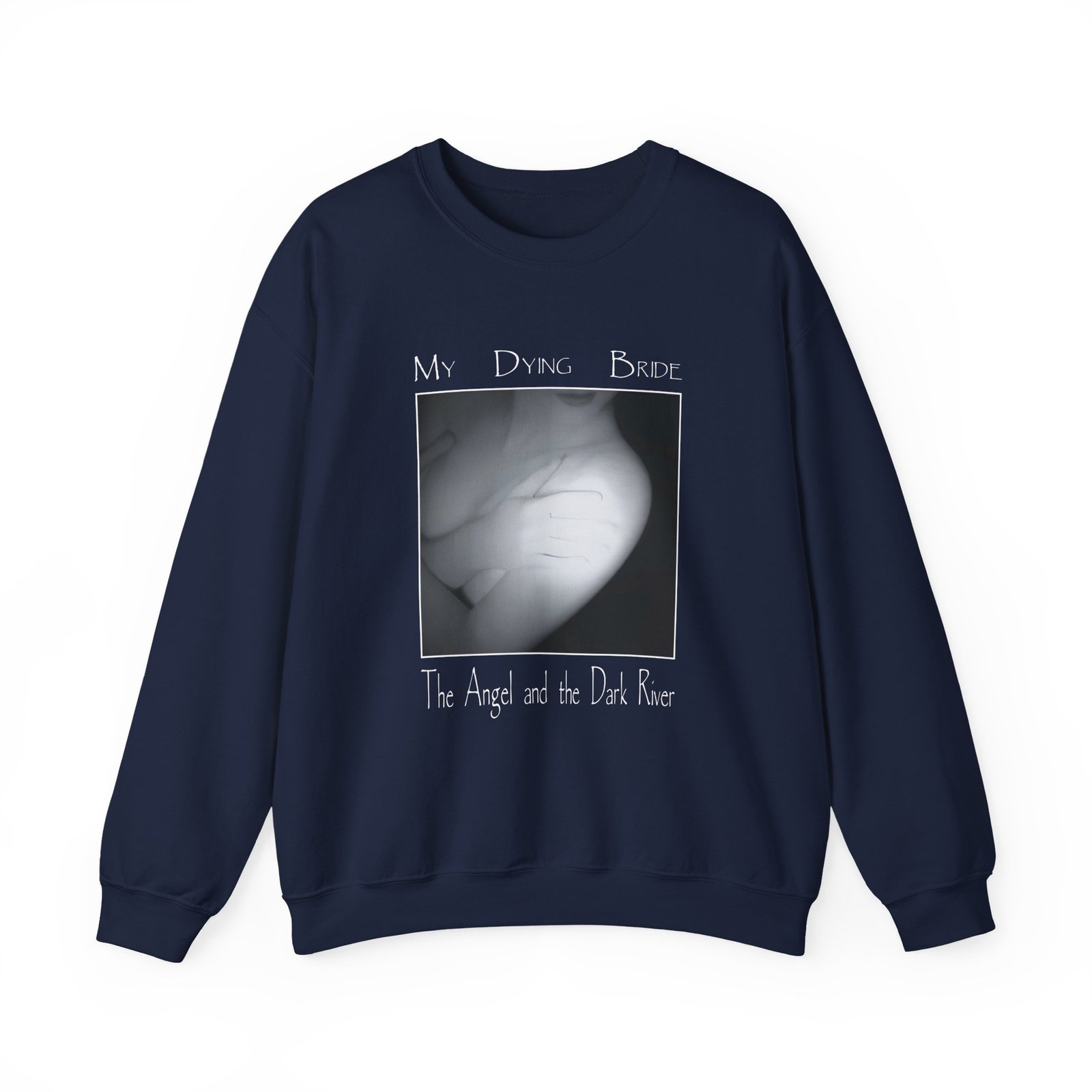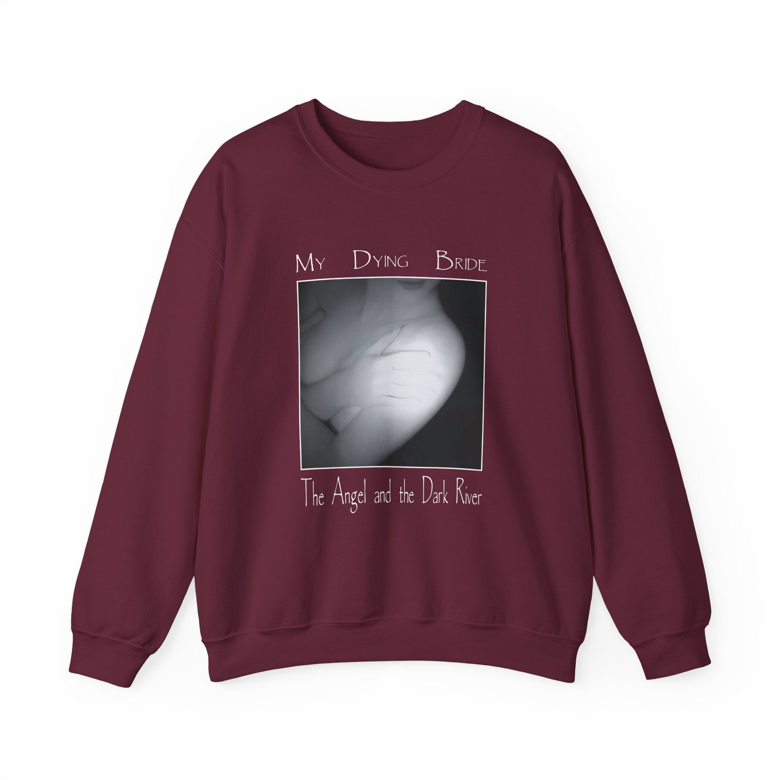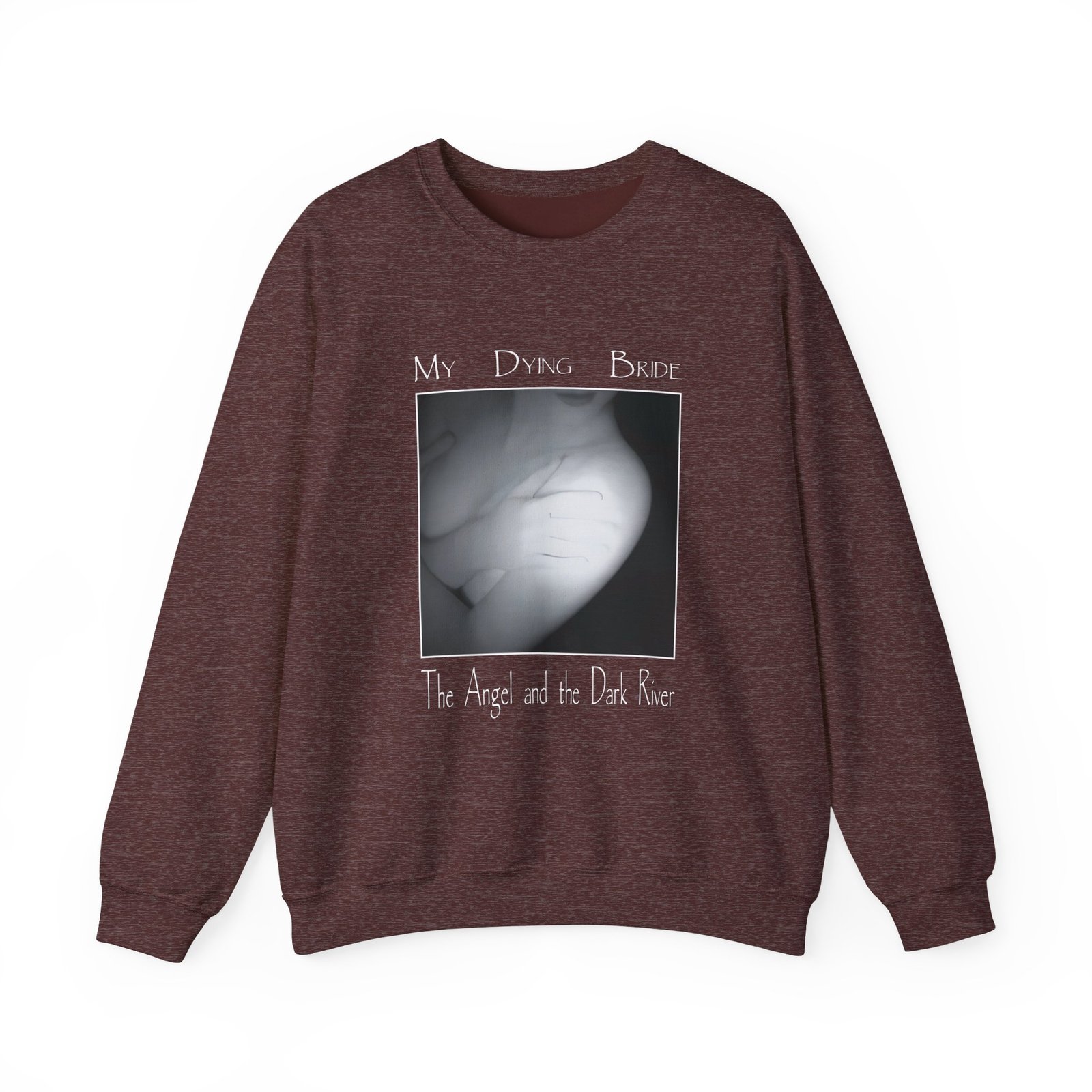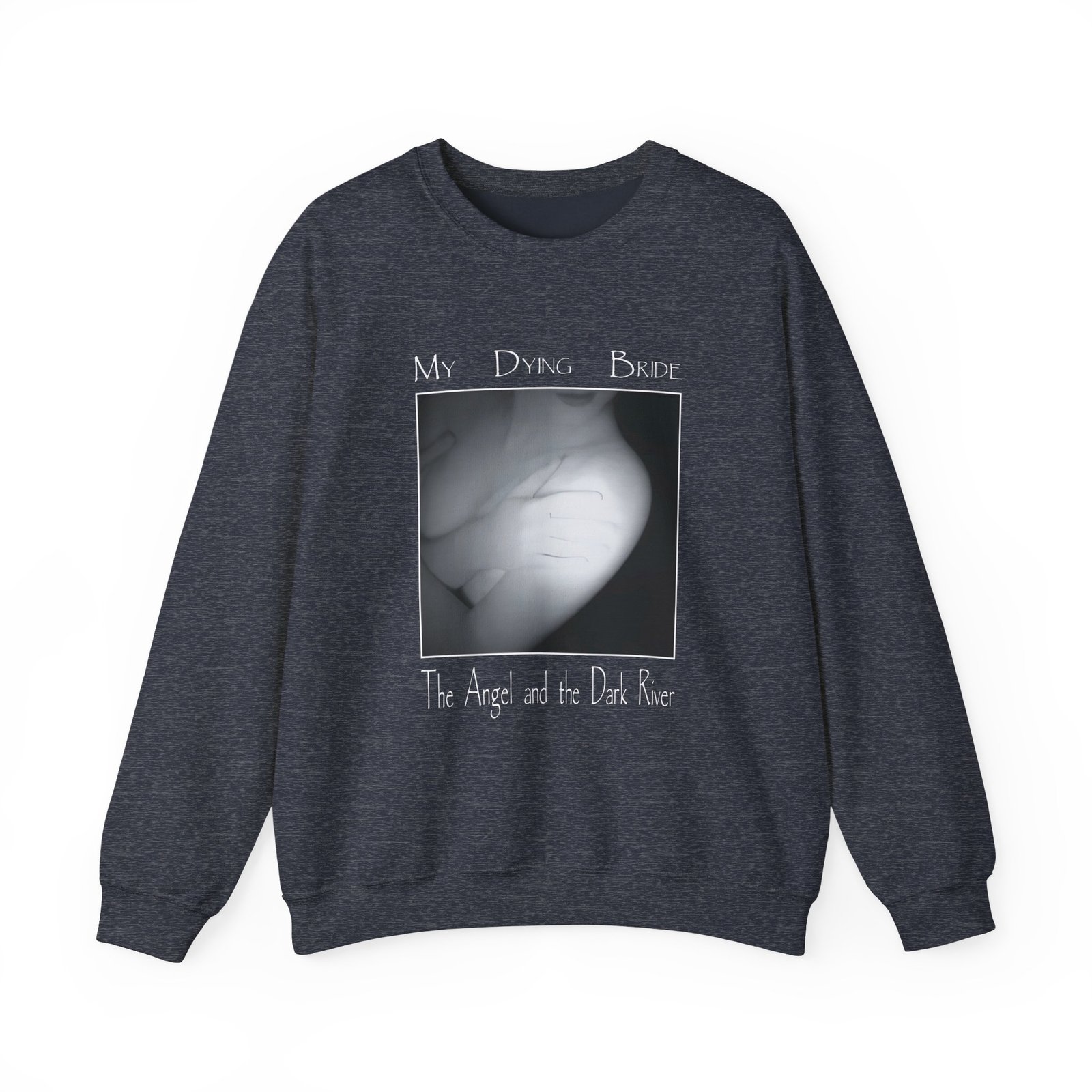 Ideal for any situation, a My Dying Bride the Angel and the Dark River unisex heavy blend crewneck sweatshirt is pure comfort. These garments are made from polyester and cotton. This combination helps designs come out looking fresh and beautiful. The collar is ribbed knit, so it retains its shape even after washing. There are no itchy side seams on these sweaters.
