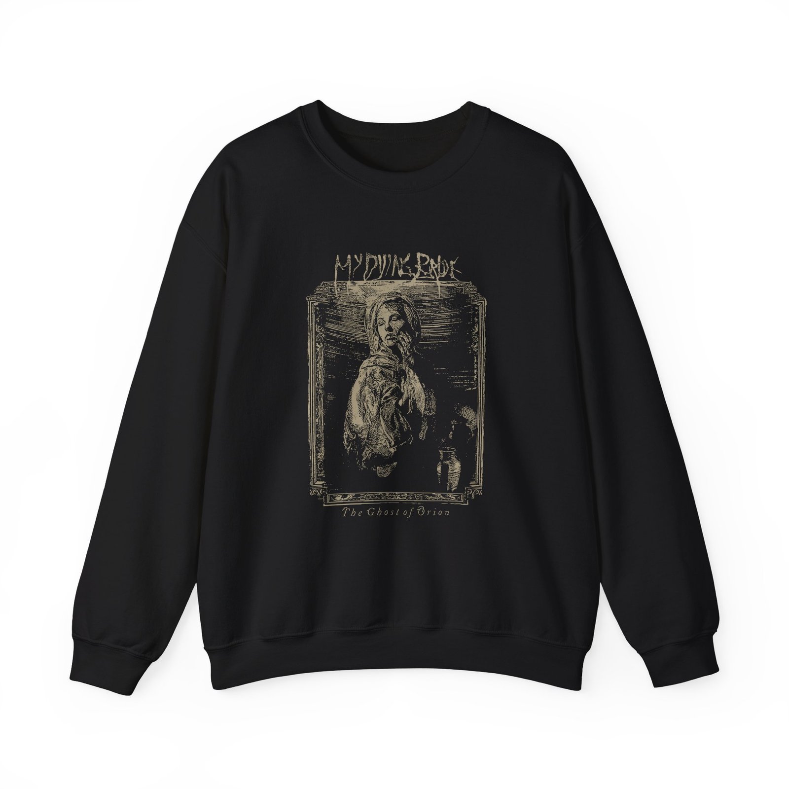 Ideal for any situation, a My Dying Bride the Ghost of Orion Woodcut unisex heavy blend crewneck sweatshirt is pure comfort. These garments are made from polyester and cotton. This combination helps designs come out looking fresh and beautiful. The collar is ribbed knit, so it retains its shape even after washing. There are no itchy side seams on these sweaters.
