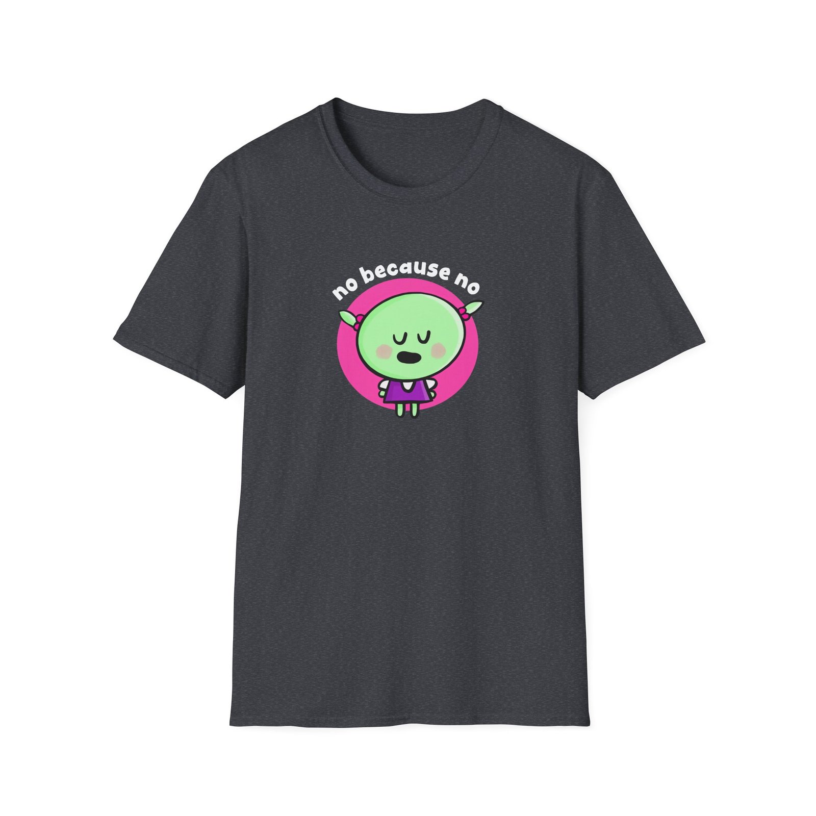 The Nanalan No Because No unisex soft-style t-shirt puts a new spin on casual comfort. Made from very soft materials, this tee is 100% cotton for solid colors. Heather colors and sports grey include polyester. The shoulders have twill tape for improved durability. There are no side seams. The collar is made with ribbed knitting to prevent curling damage.